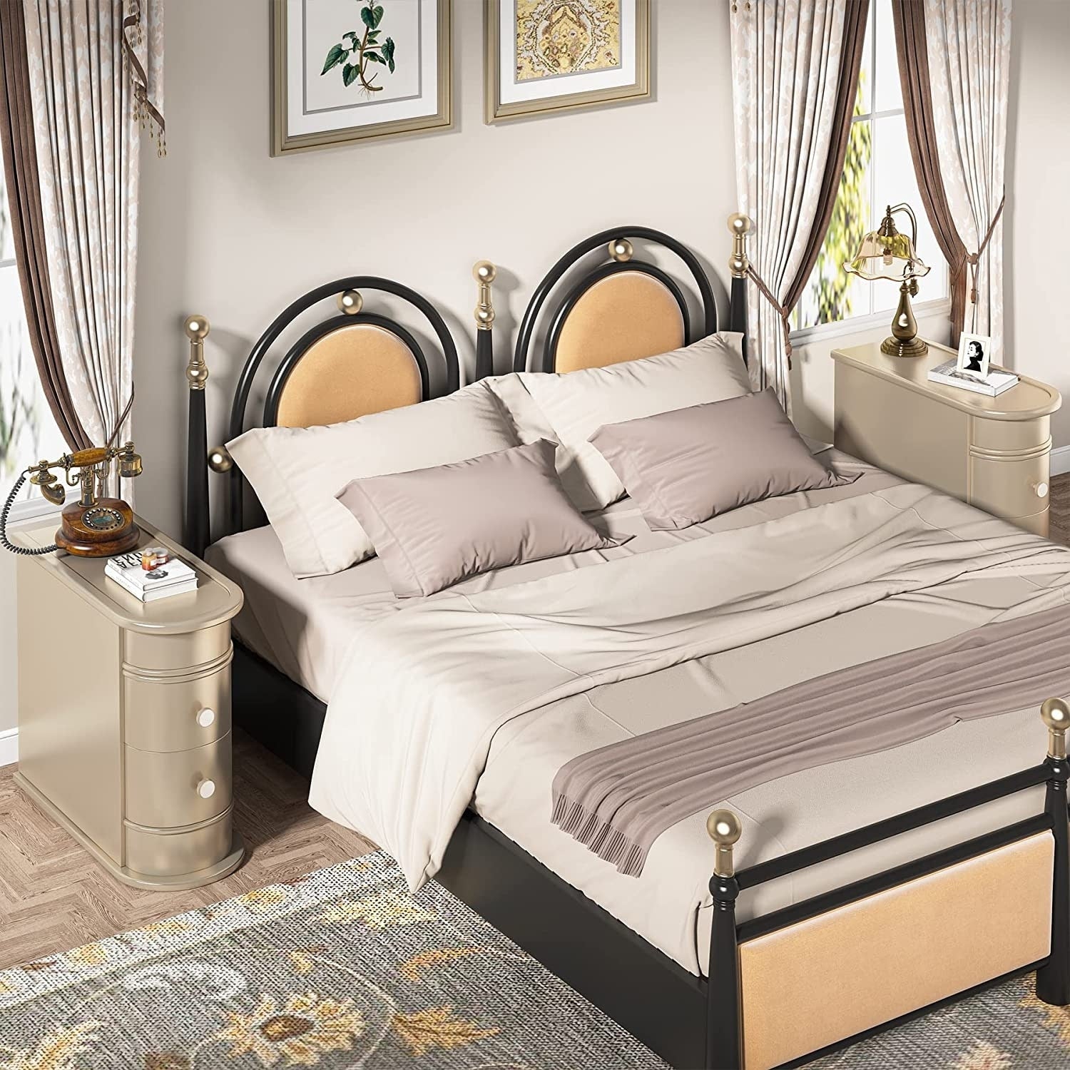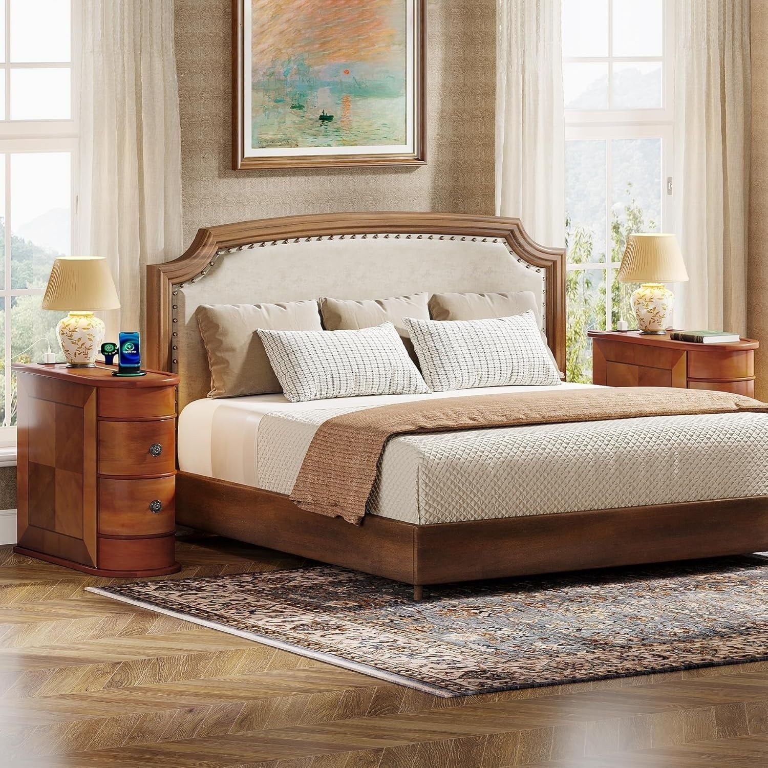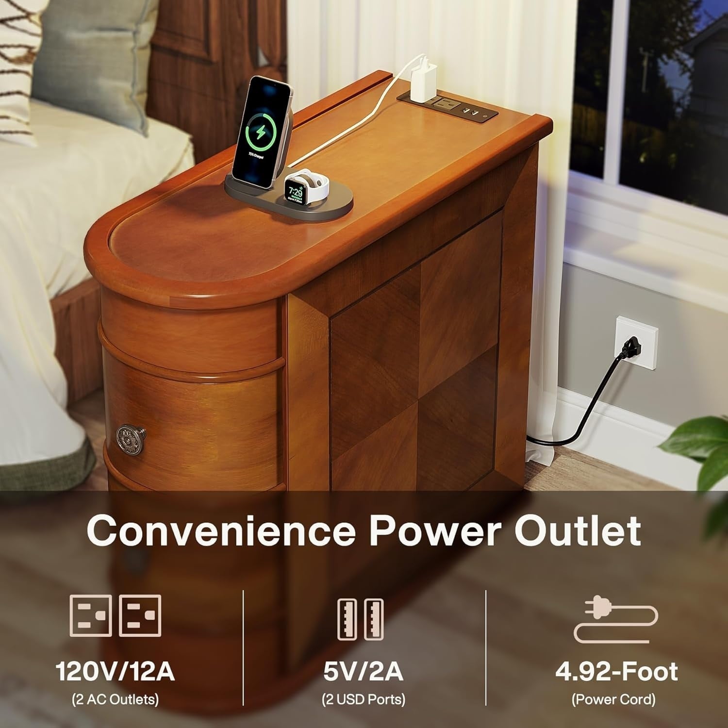 Solid Wood Chairside End Table, Two-Drawer...