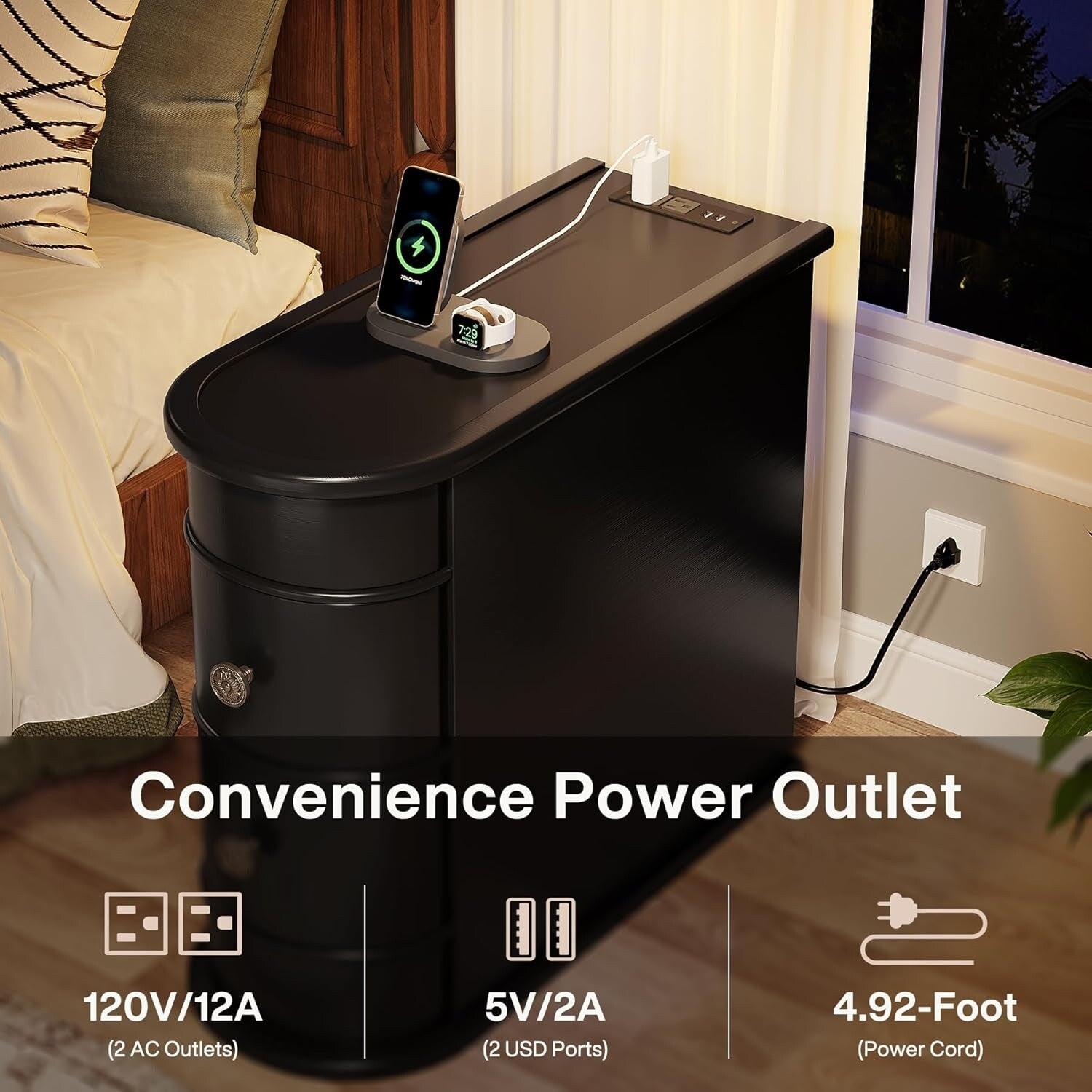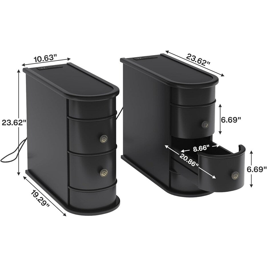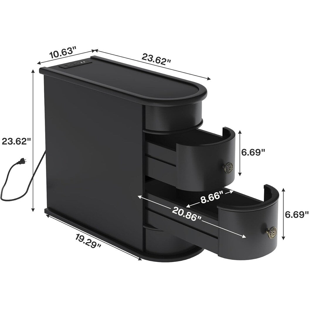 Solid Wood Chairside End Table, Two-Drawer Narrow Side...