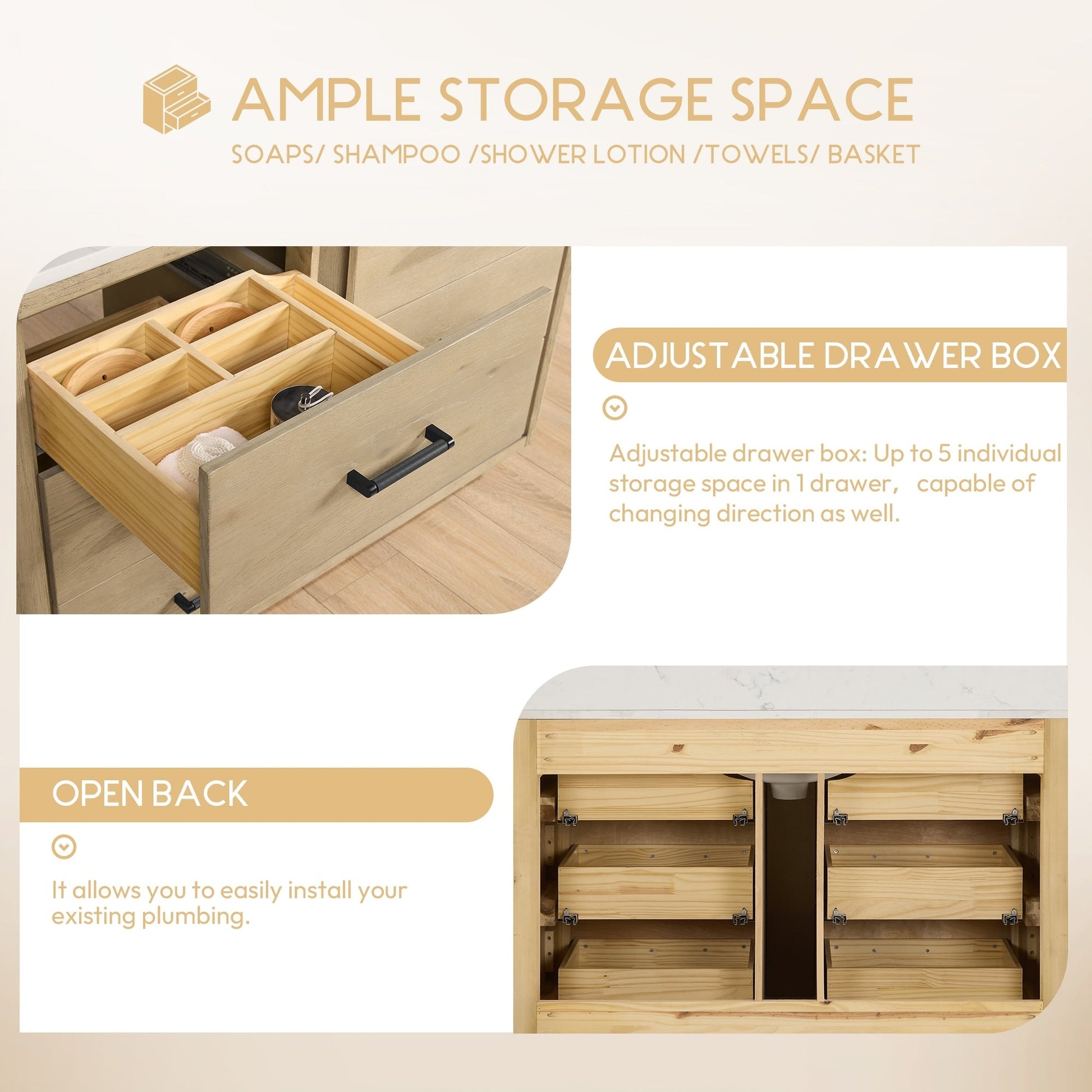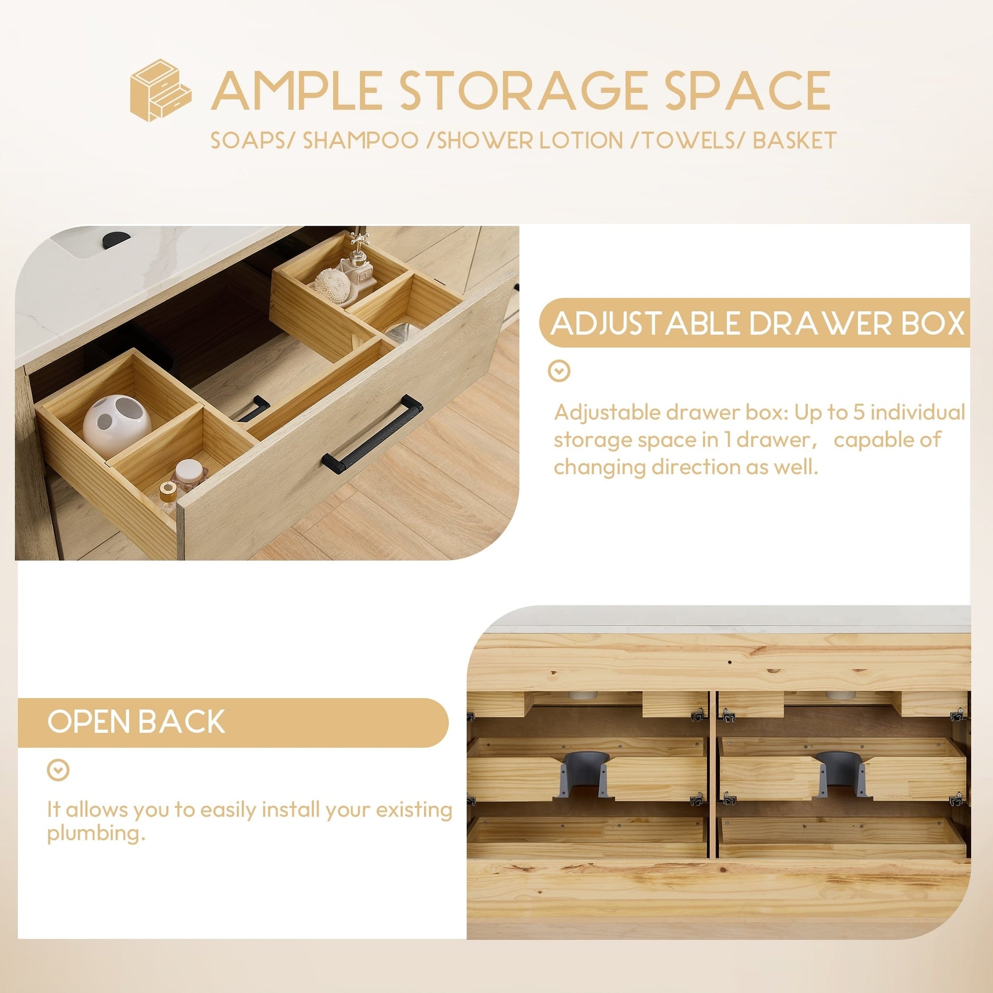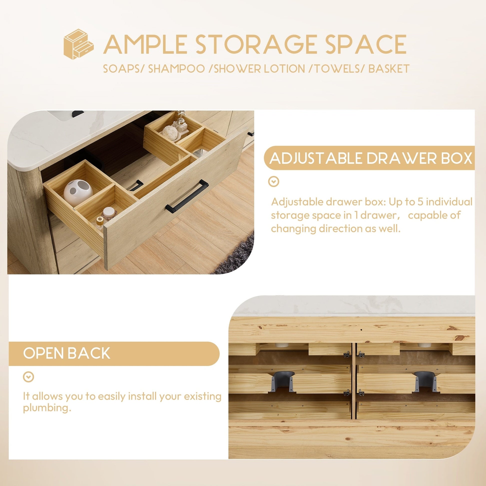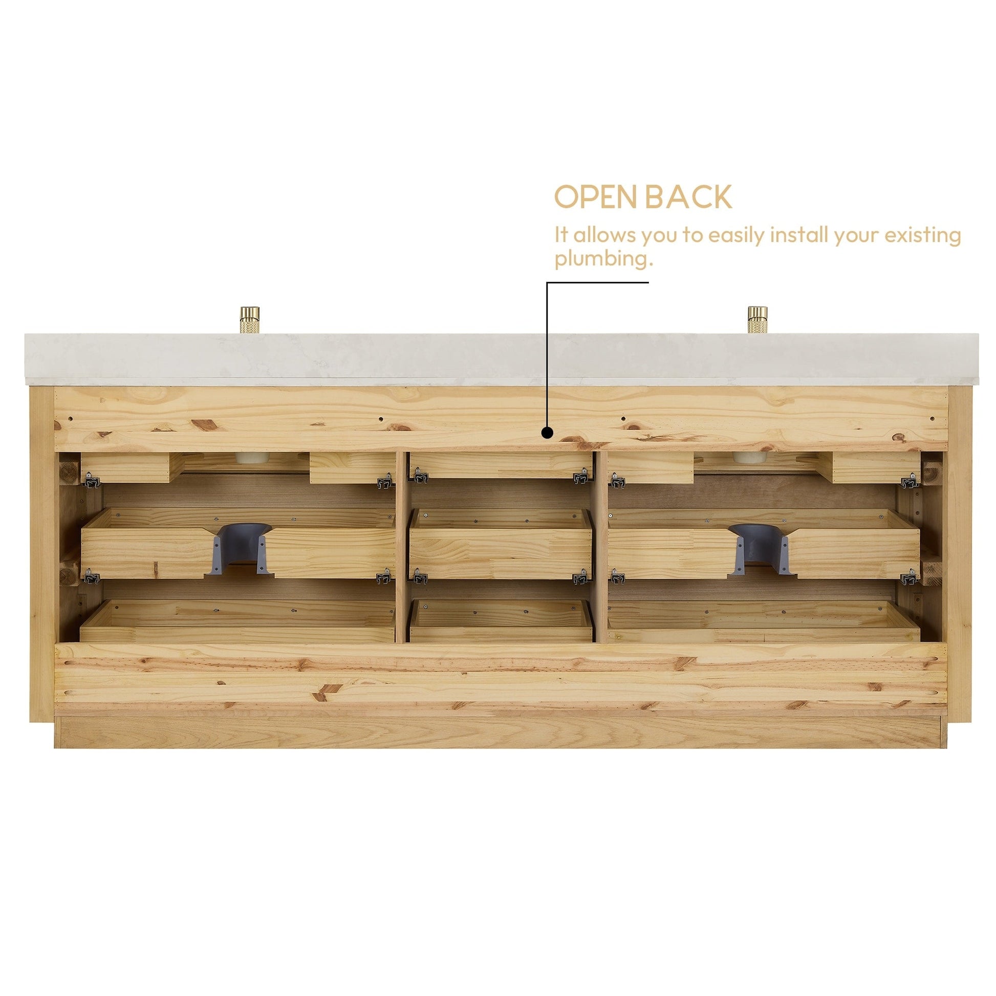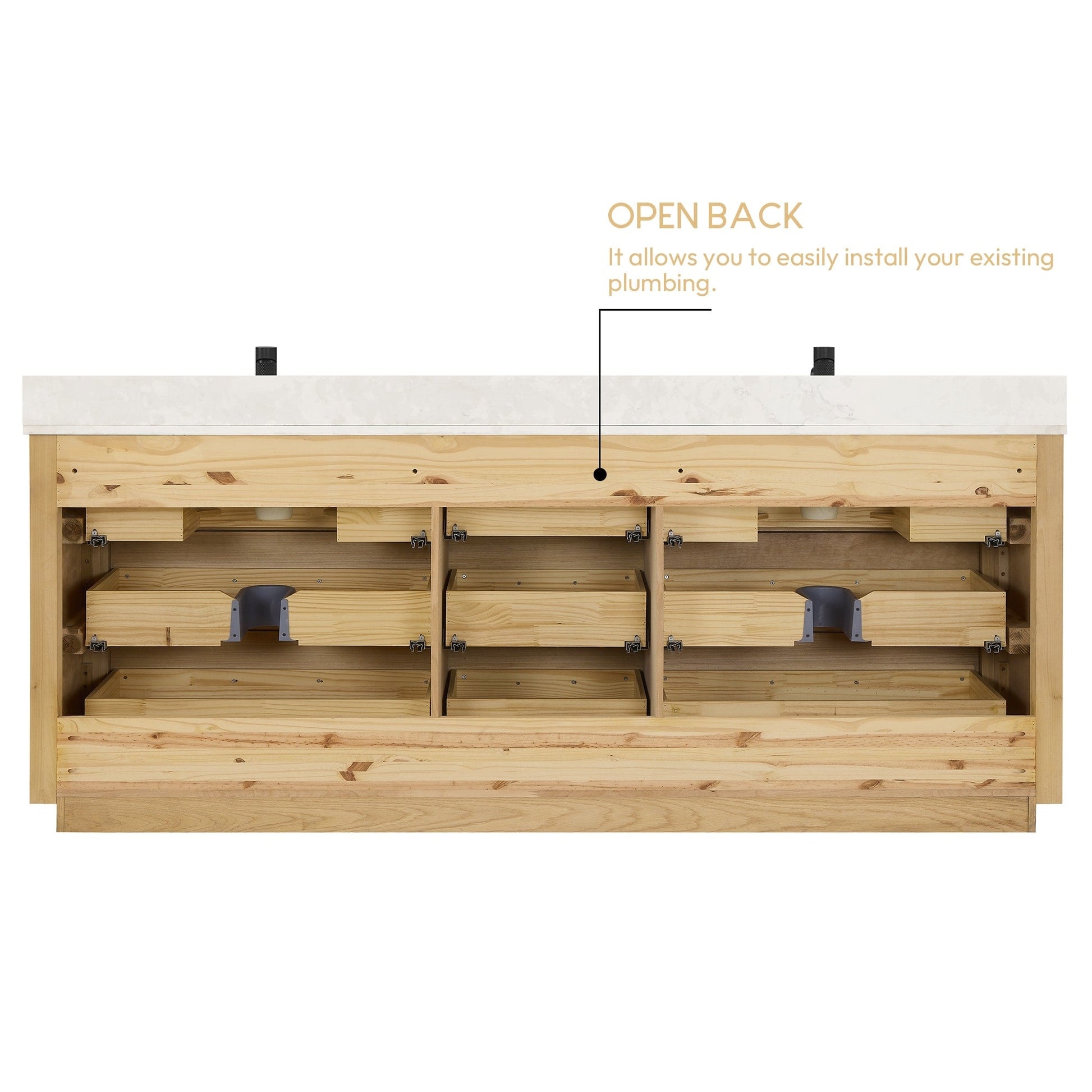Installation Required: Freestanding bathroom vanity comes fully assembled for your convenience (no back panel).Designed for easy, no-hassle plumbing and faucet installation.