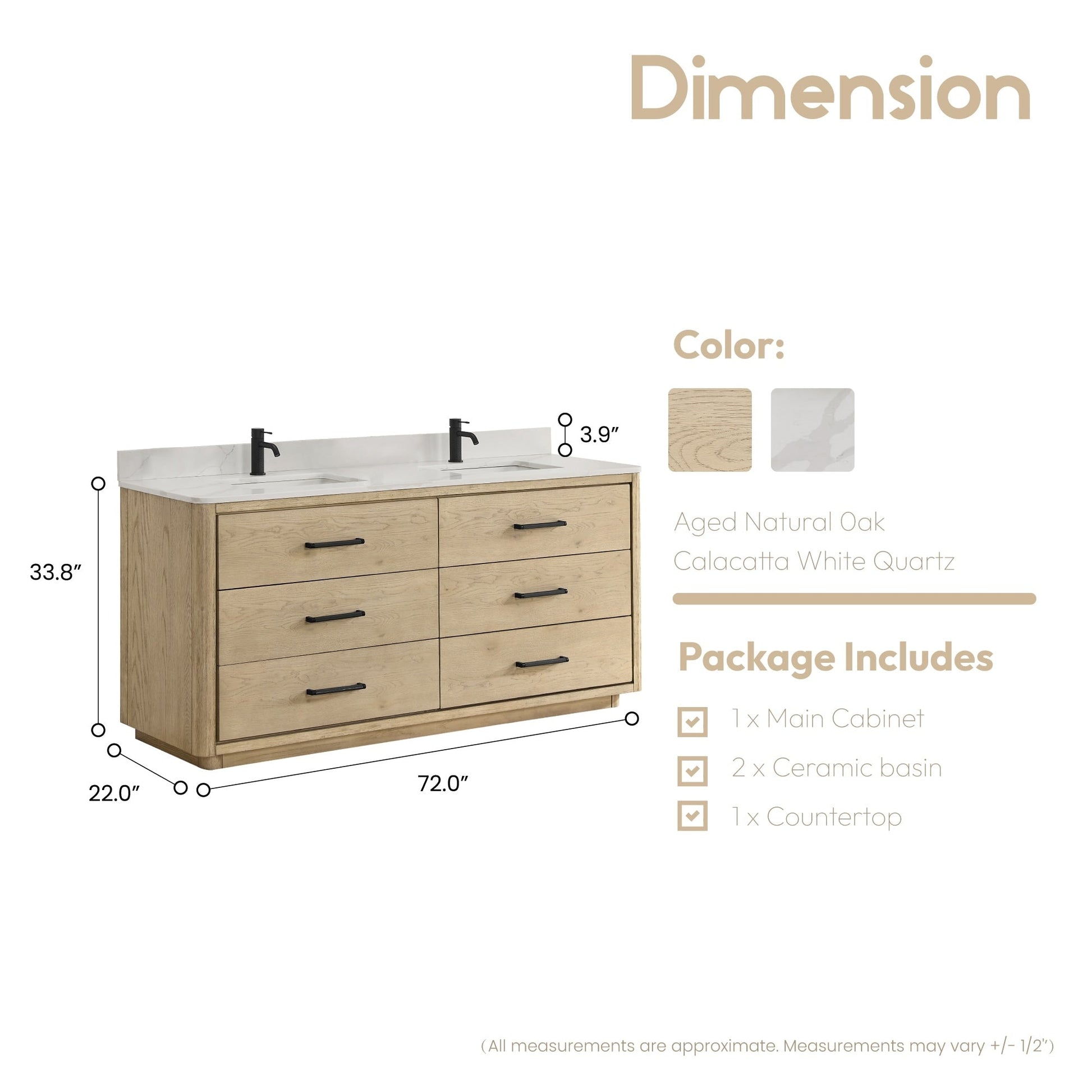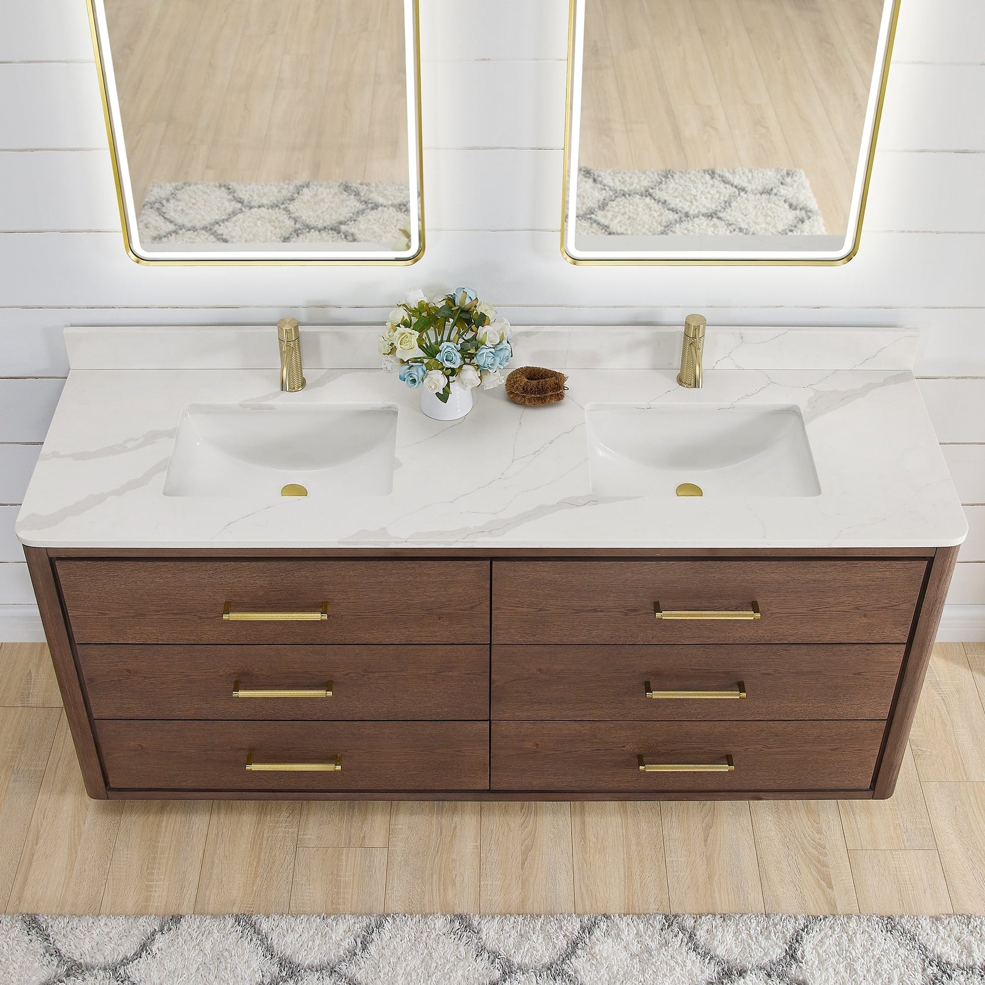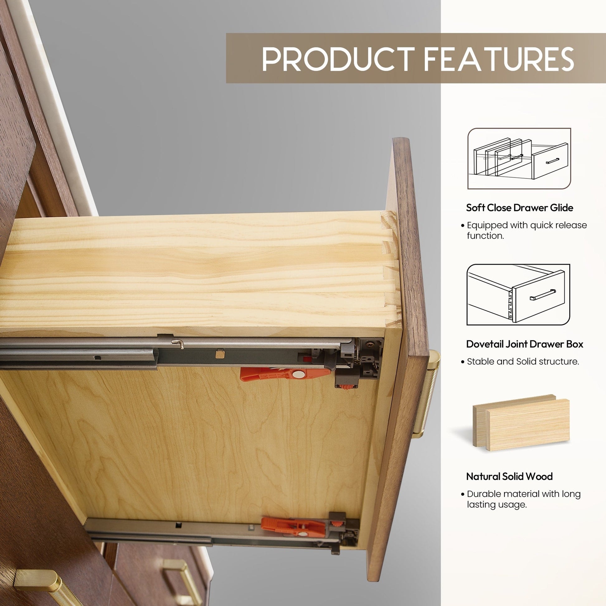72 Inch - Six sturdy, soft-closing dovetail drawers feature built-in partitions for easy access to all your toiletries.