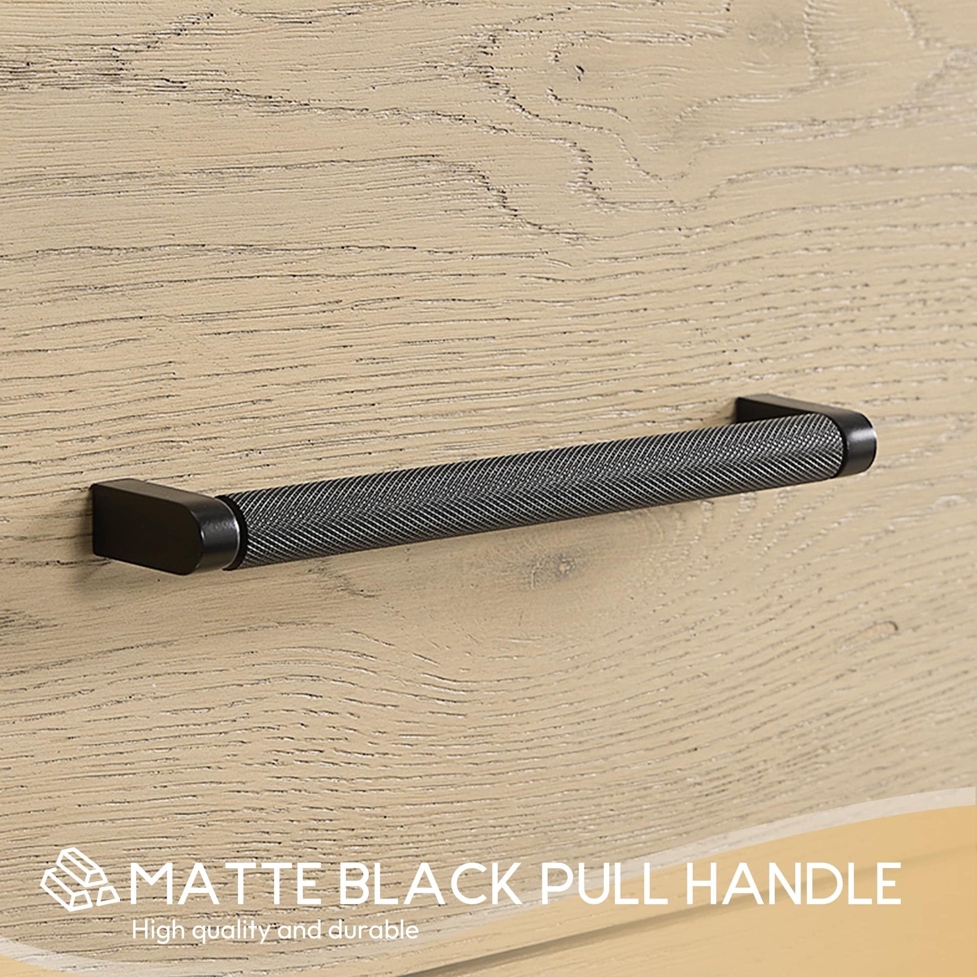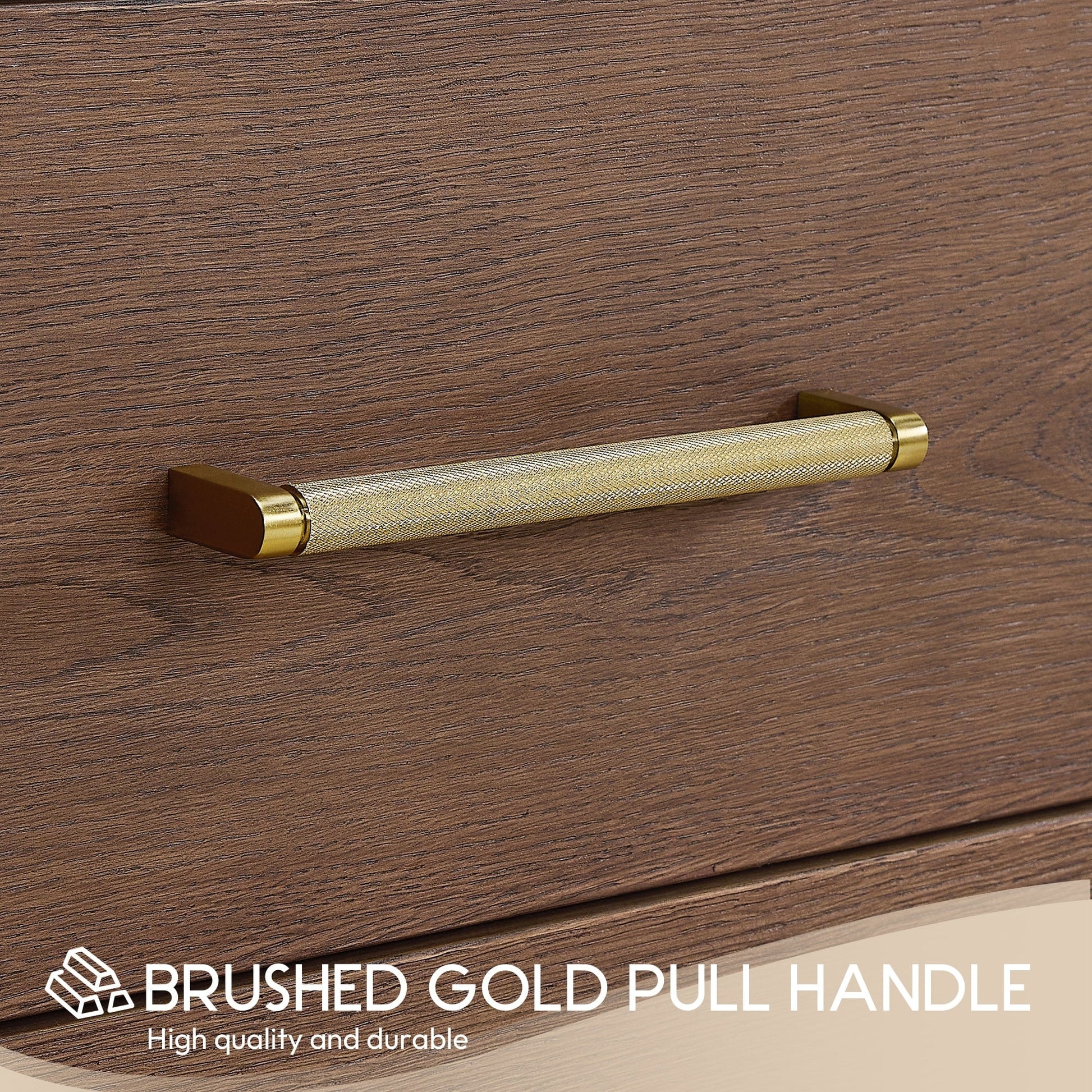 Hardware: Brushed Gold or Matte Black finish hardware lends a touch of elegant style and contrast.Rugged zinc alloy knurled handle adds a dash of classic style and stunning contrast against the textured wood.
