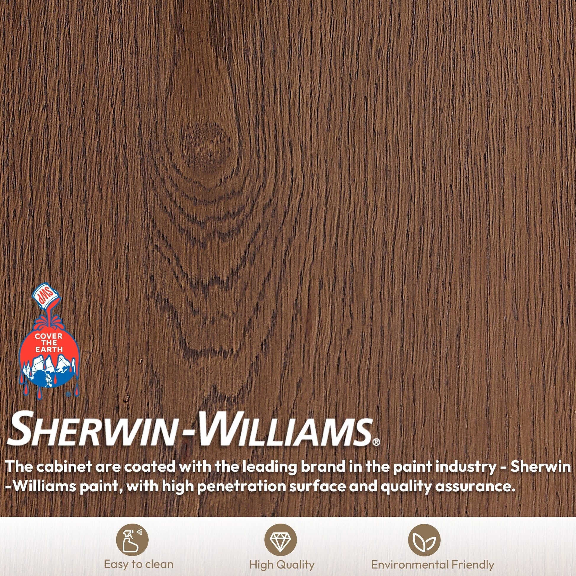 Finish(s) Option: Available in gorgeous Aged Dark Brown or Aged Natural Oak finish to complement your décor, using environmentally friendly Sherwin-Williams products.