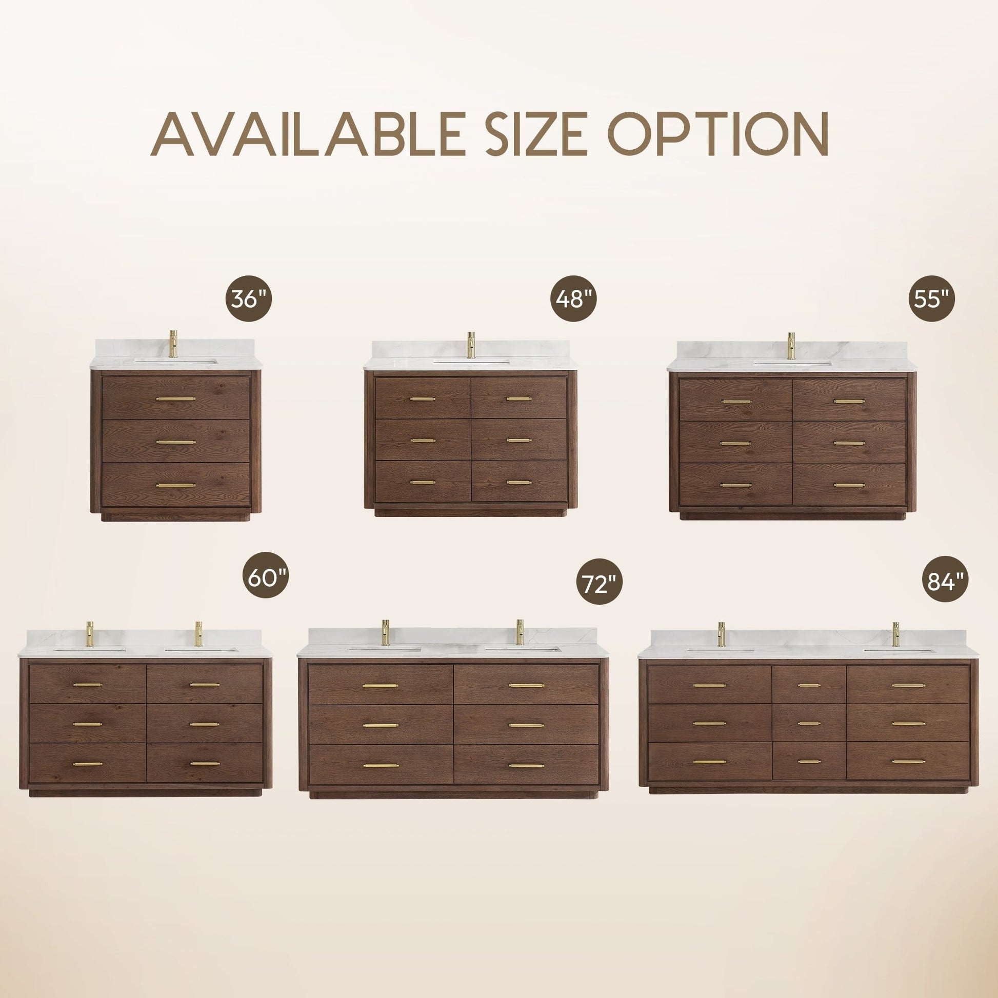 55 Inch - Six sturdy, soft-closing dovetail drawers feature built-in partitions for easy access to all your toiletries.