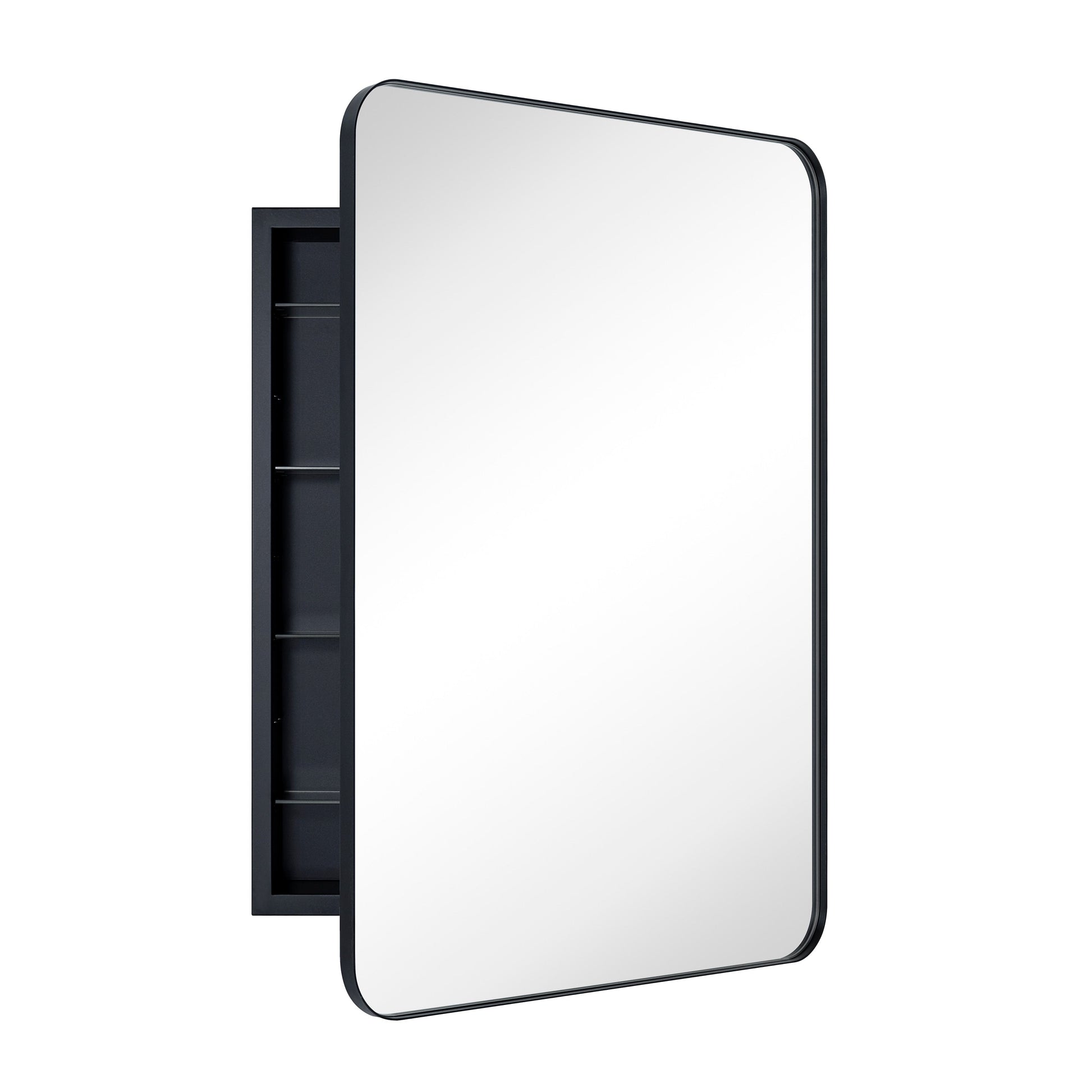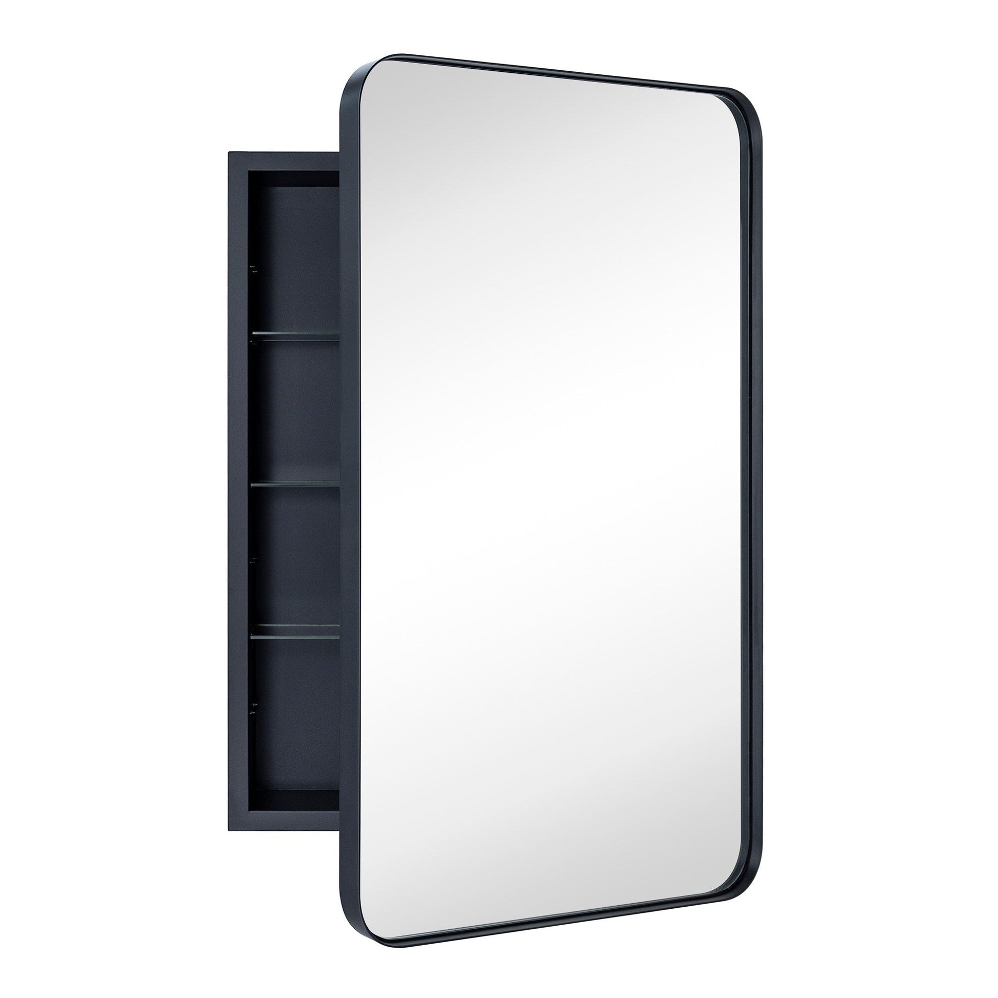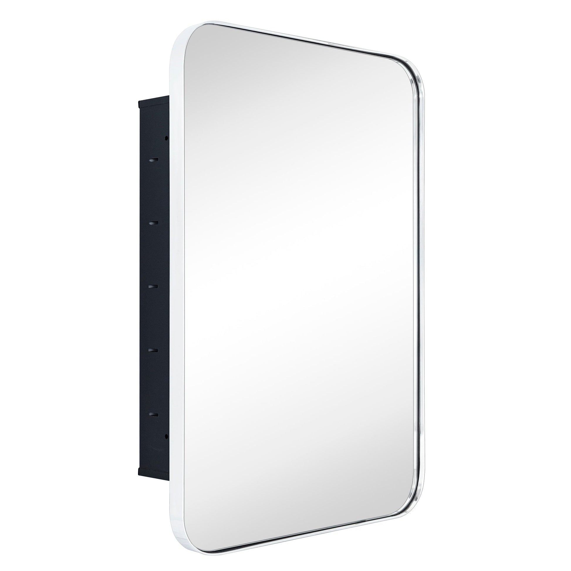 This stainless steel framed medicine cabinet is designed with a recessed mounted wall. Modern and contemporary styled to complement a variety of bathroom decor, this bathroom mirror with cabinet provides lots of space-enchanting reflections with a rounded rectangle of mirrored glass.