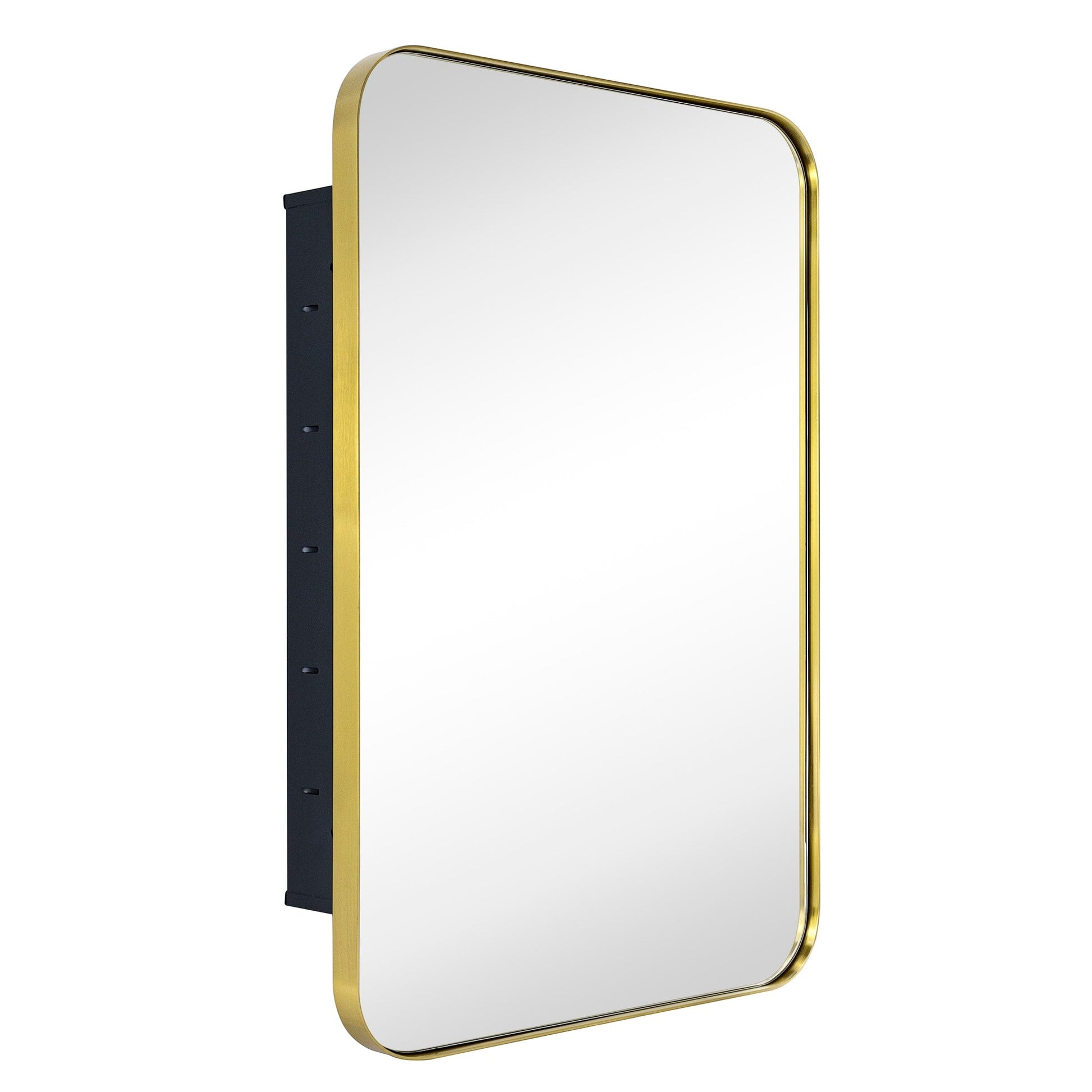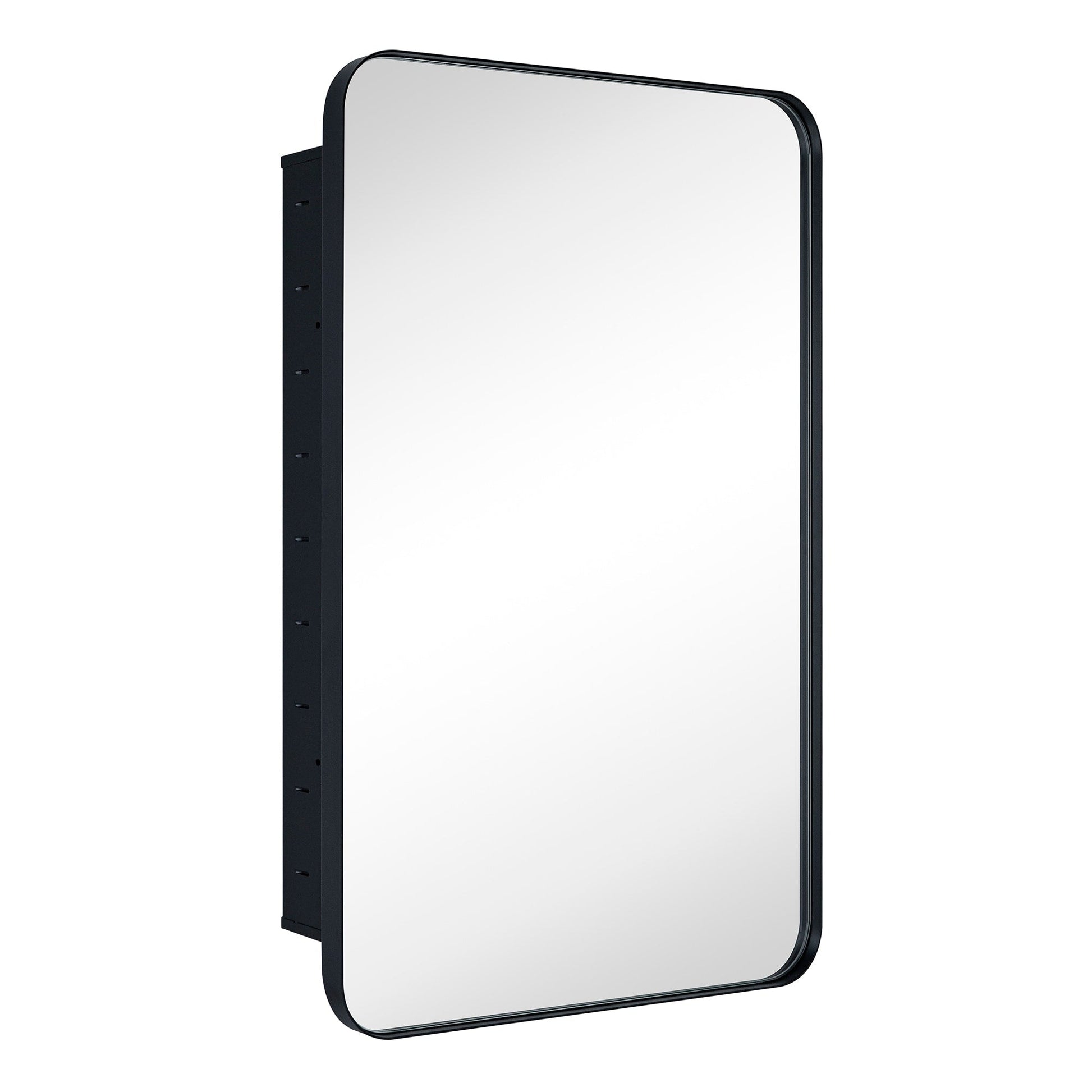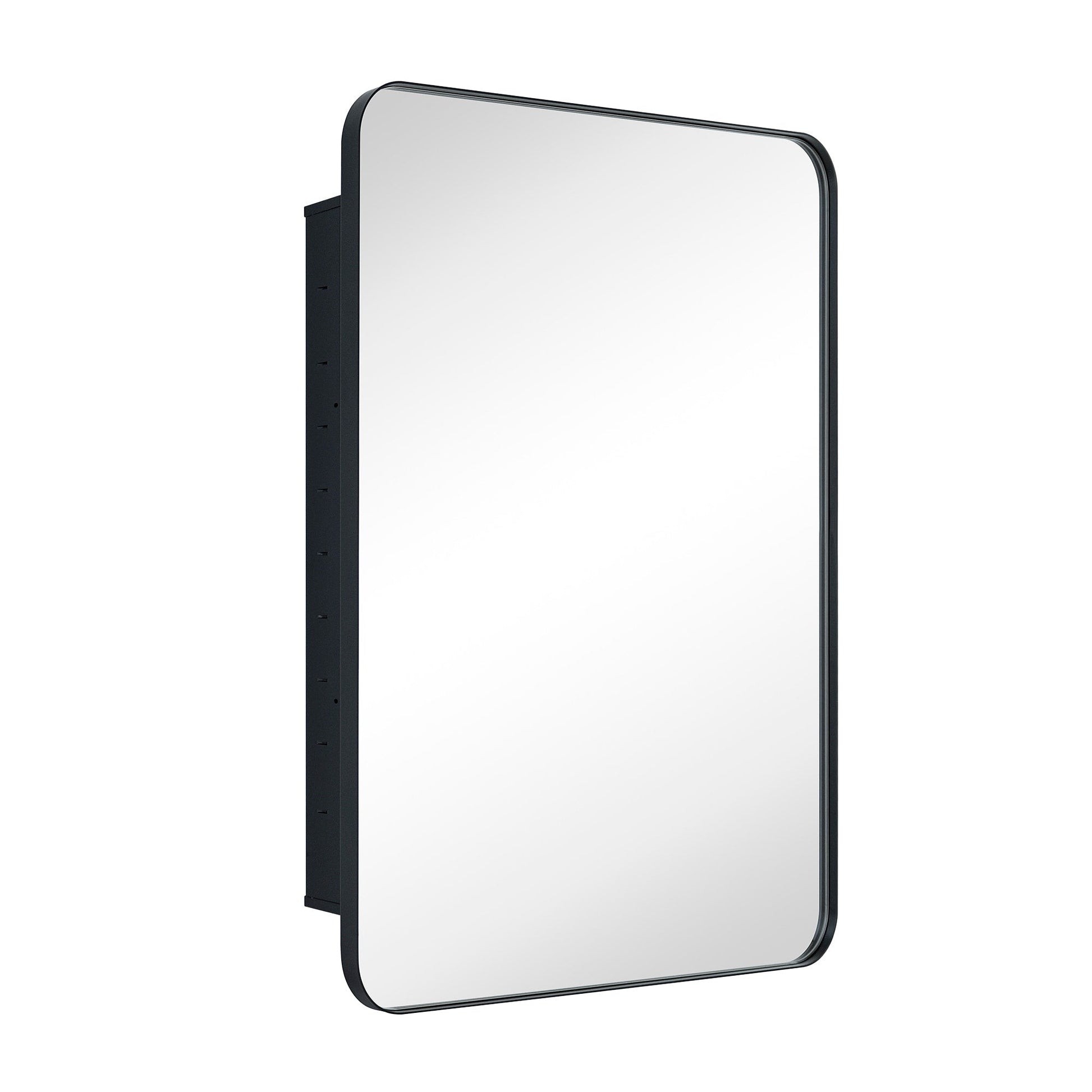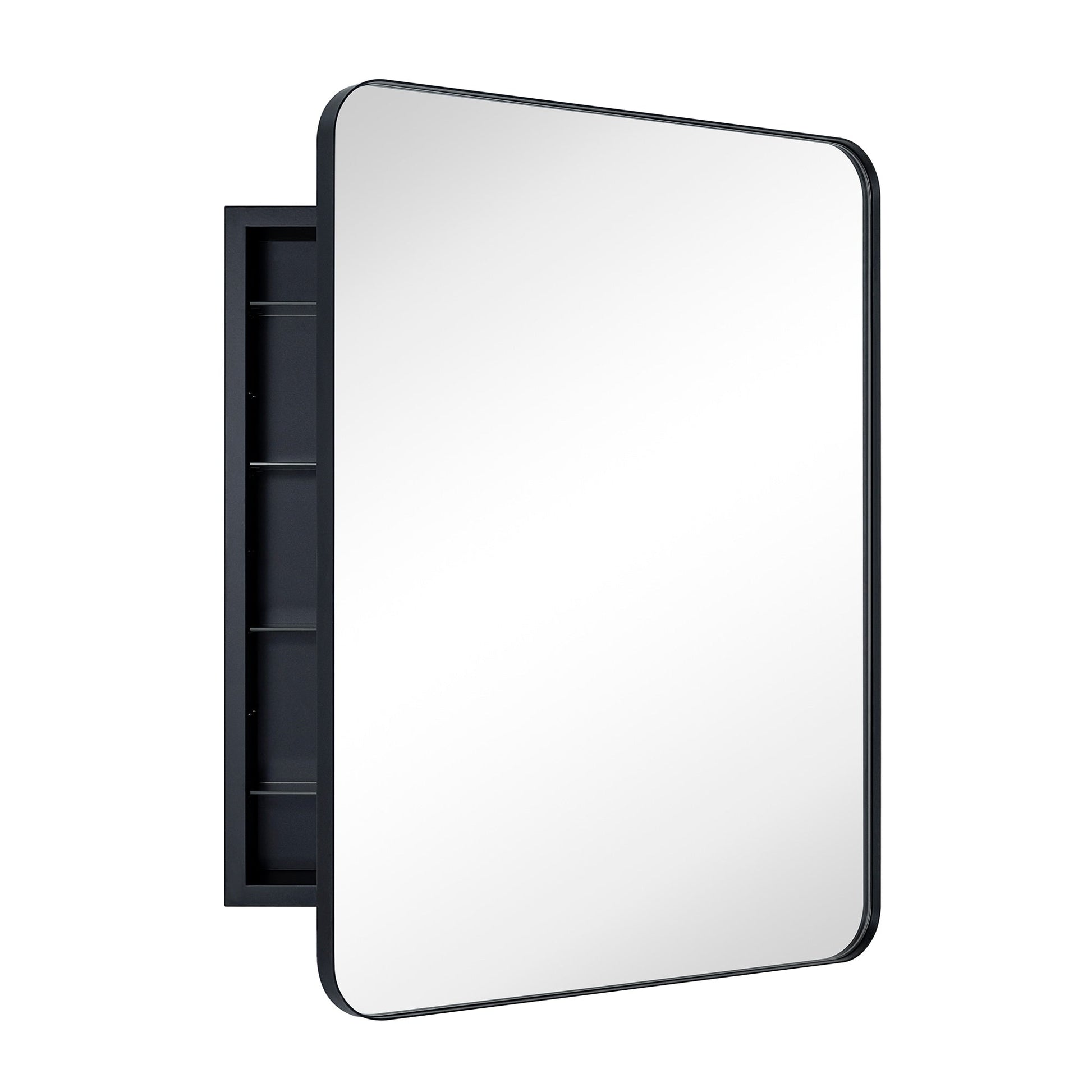 This stainless steel framed medicine cabinet is designed with a recessed mounted wall. Modern and contemporary styled to complement a variety of bathroom decor, this bathroom mirror with cabinet provides lots of space-enchanting reflections with a rounded rectangle of mirrored glass.