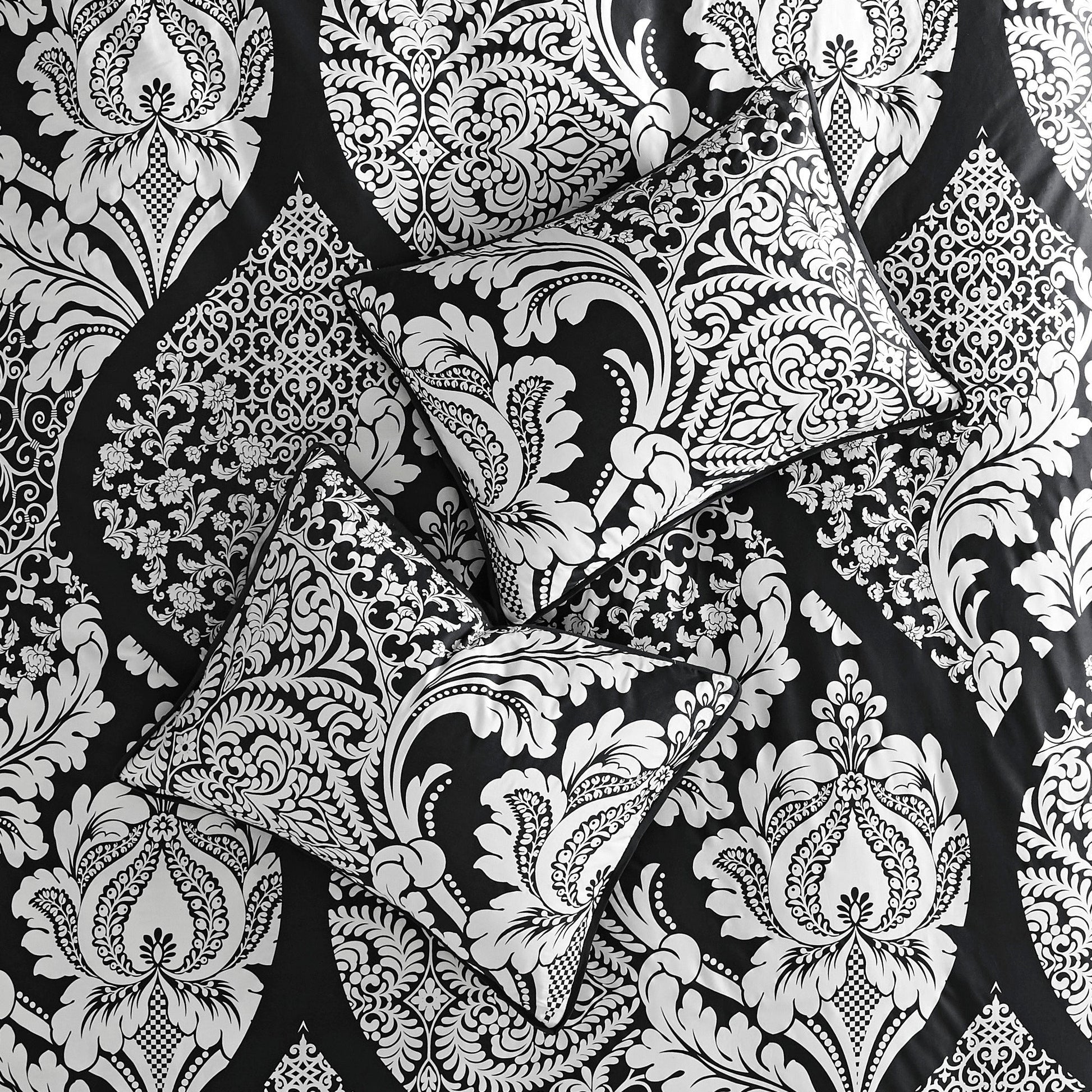 • Transitional style with intricate damask design in contrasting colors and solid color reverse