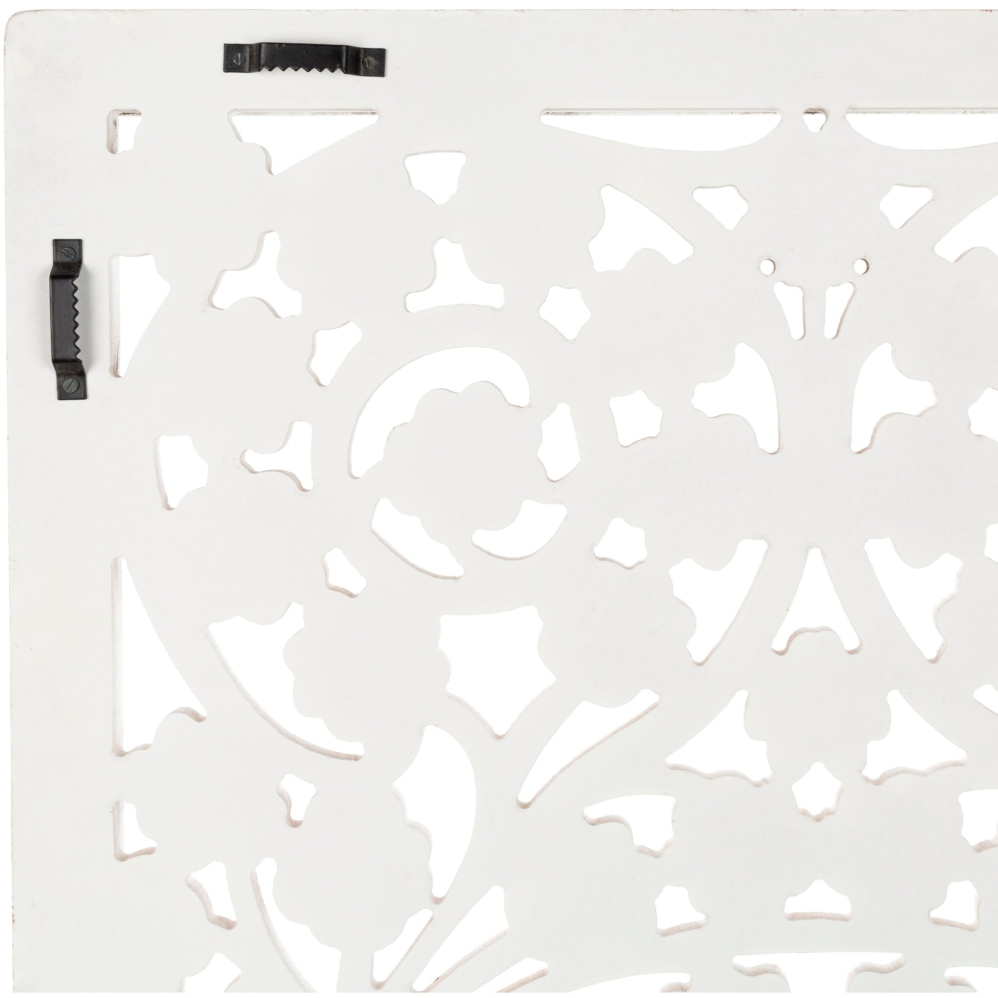 Bring a touch of the global feel into your home with this breathtakingly beautiful wall panel. Each panel is hand carved in elaborate detail and accented with the traditional art of mirror work from India. The distressed white finish adds a contemporary feel and a versatile touch.Apt for a feature space, this panel can be hung vertically or horizontally.