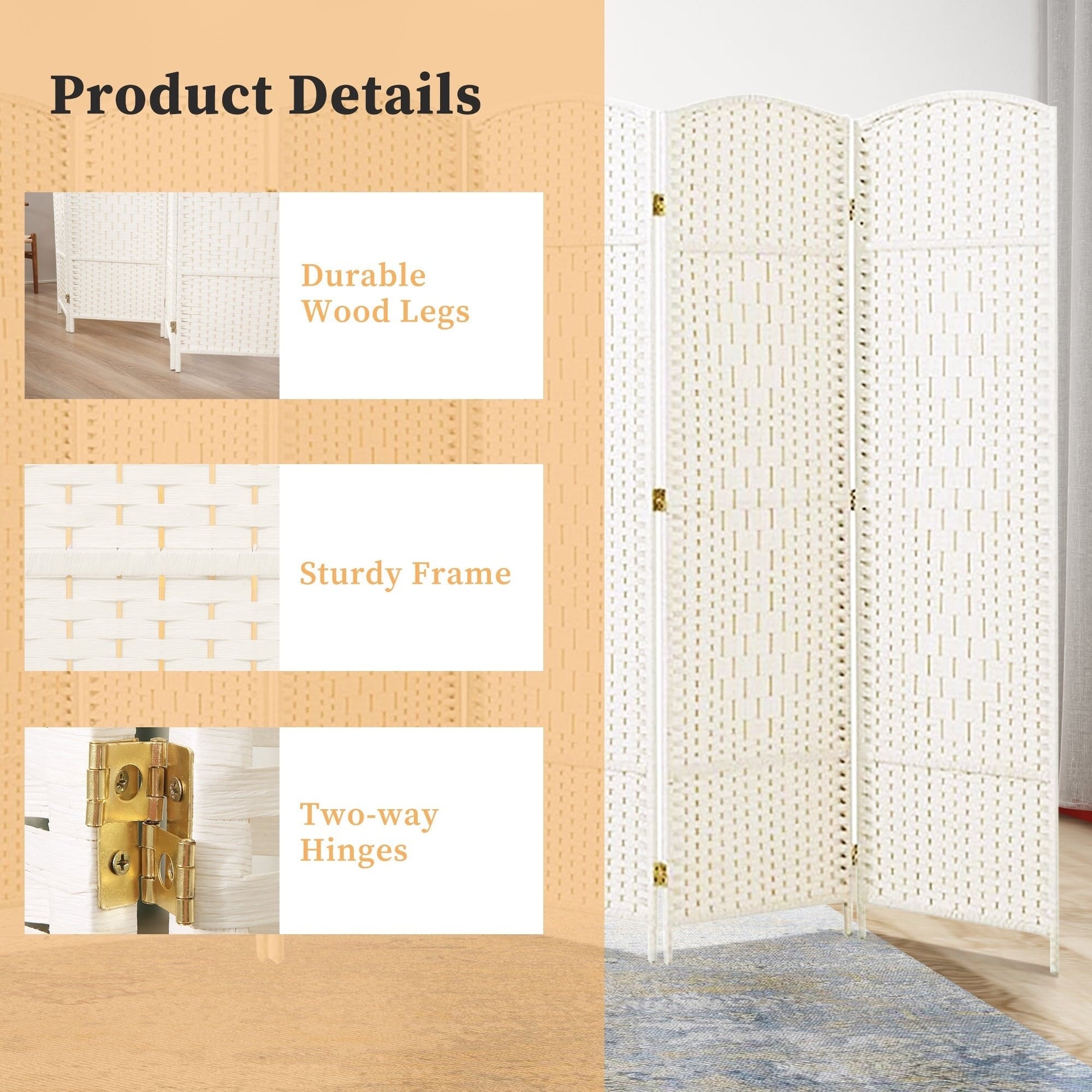 Room Divider 6 FT Tall Weave Fiber Freestanding Privacy Screen Folding Screen