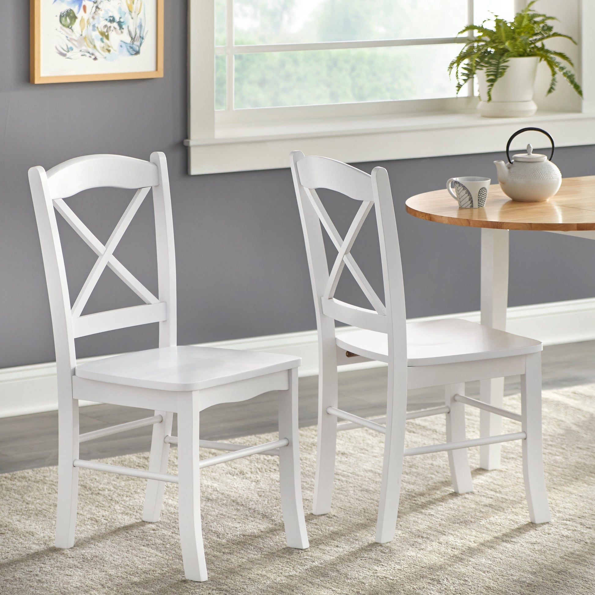 Upgrade your dining space with the charmingly modern Simple Living Country Cottage Dining Chairs. Constructed from solid rubberwood, these durable and sturdy crossback chairs with MDF seats resist warping and cracking. Choose from three finishes to complement any style of decor.Features: