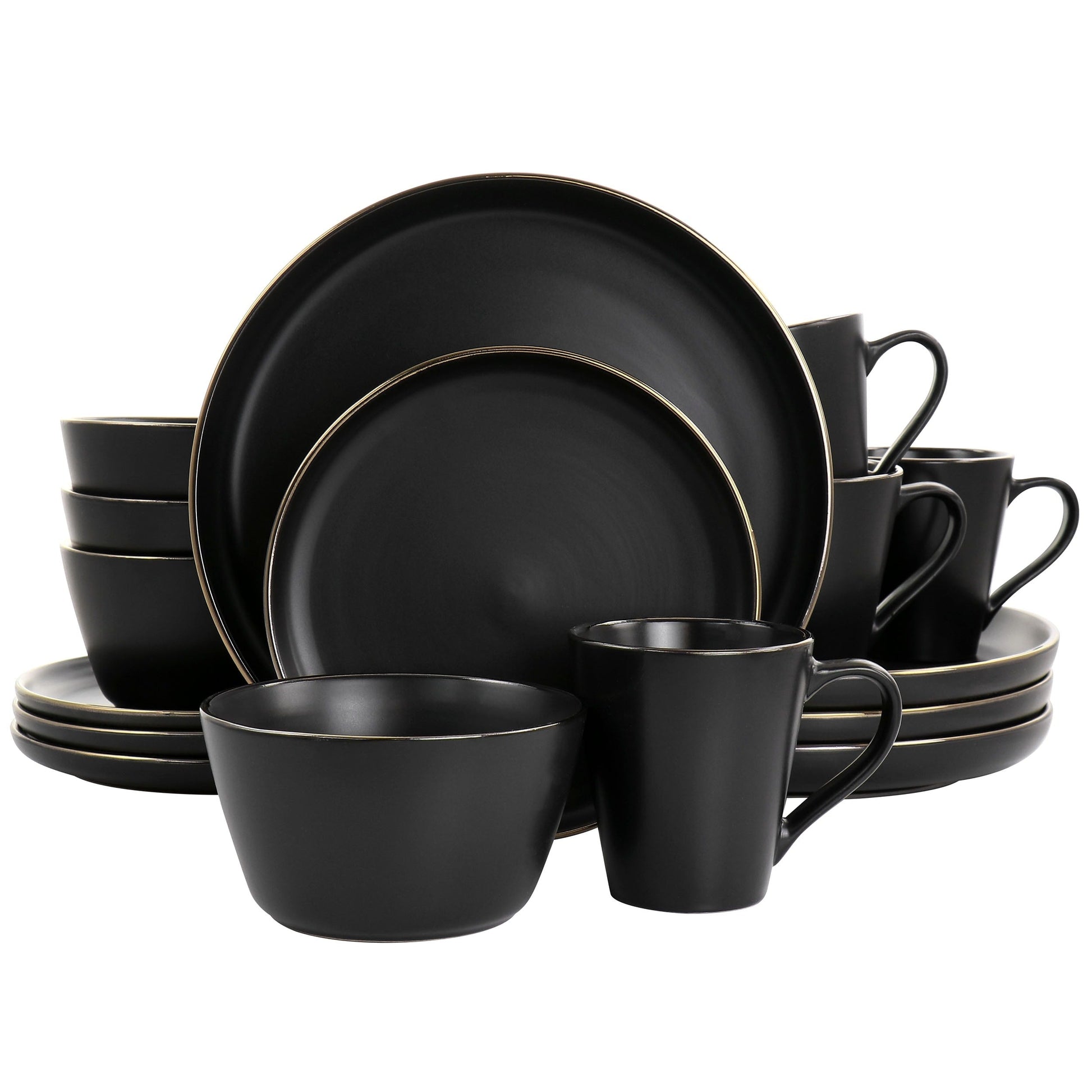 Stoneware Dinnerware 16 Piece Set in Black with...