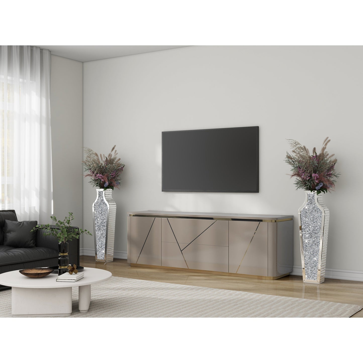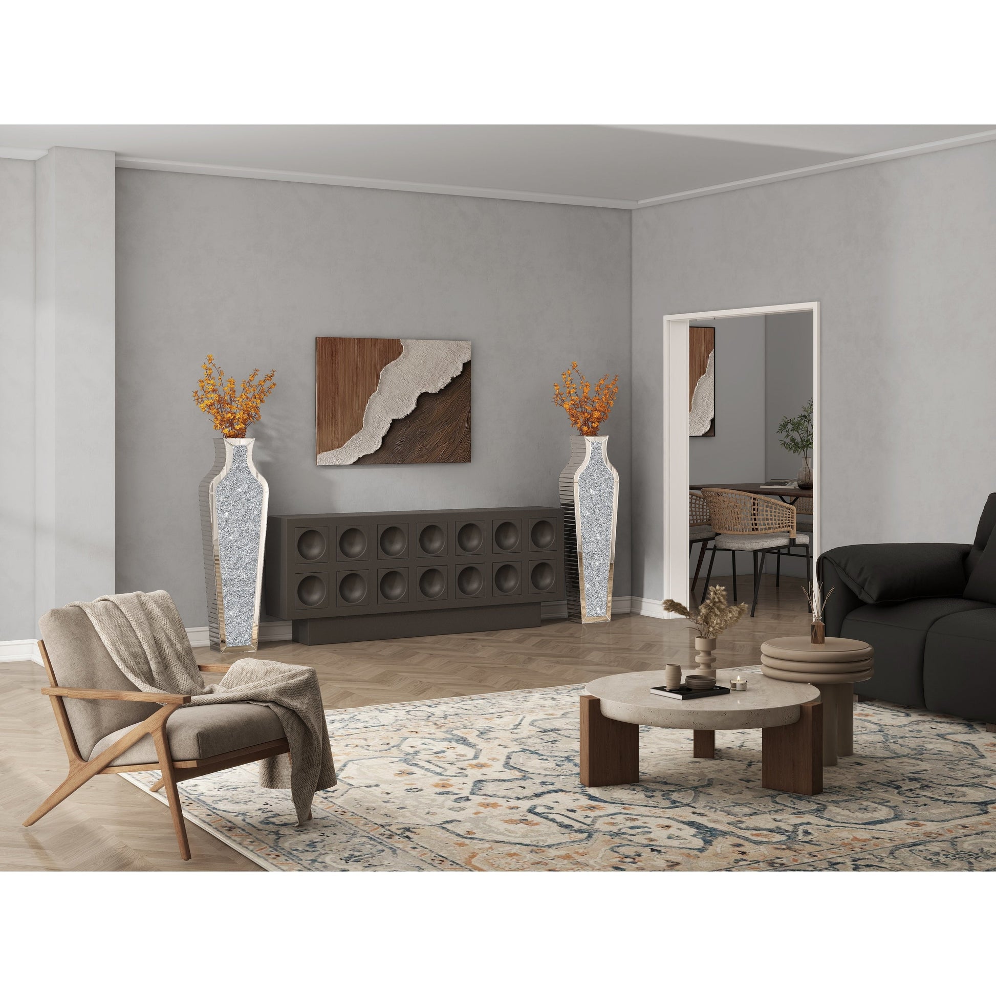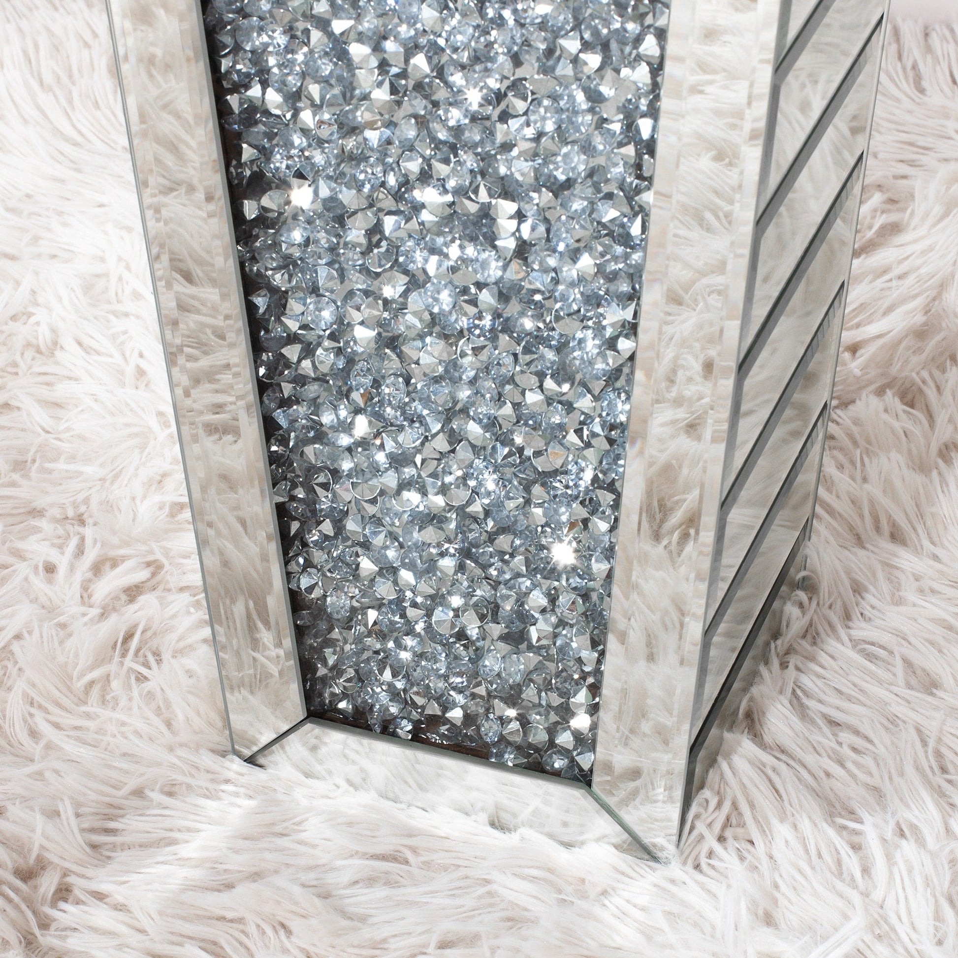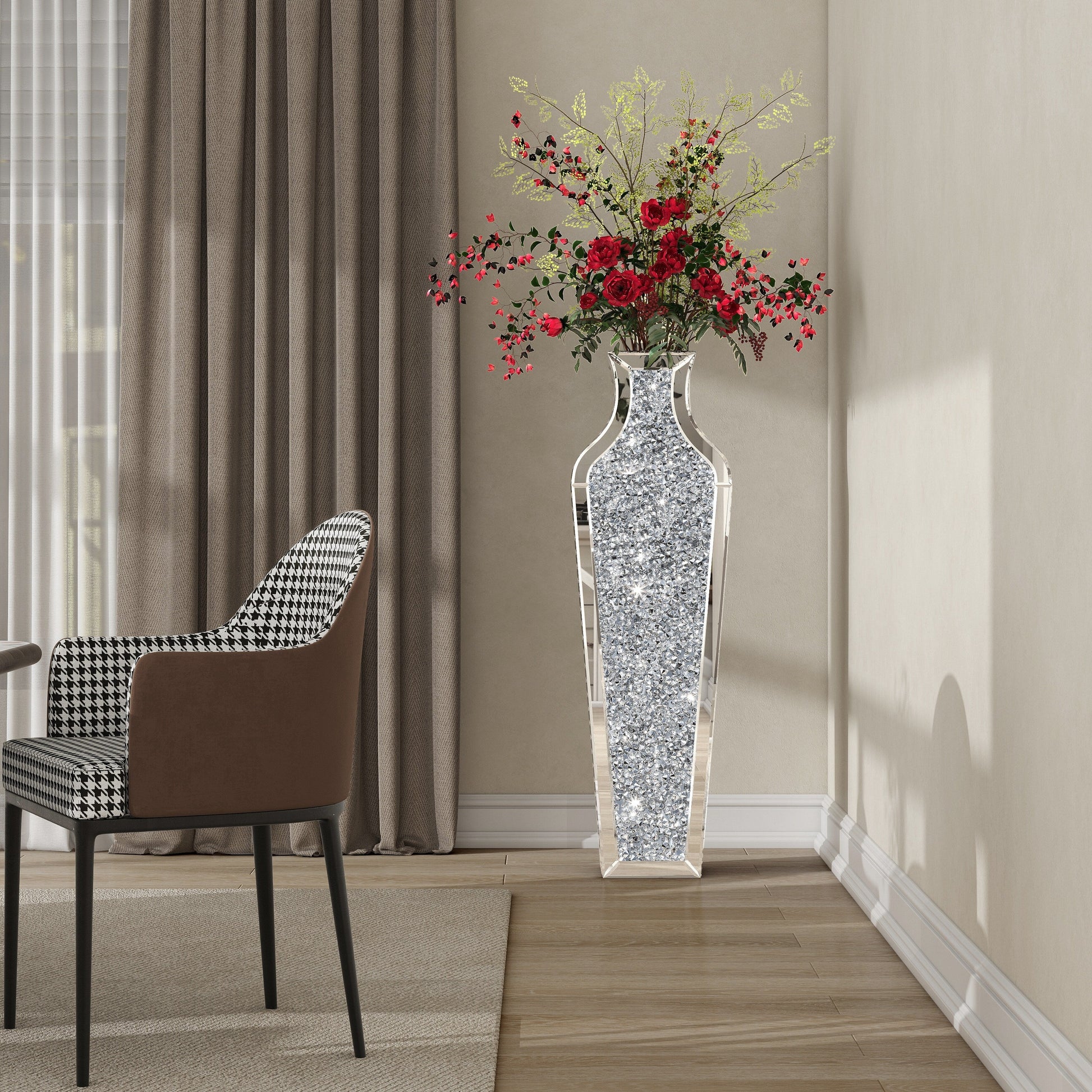 If you like to decorate your home, this floor vase will be your best choice, it can be well placed in any corner, especially at the entrance, next to the TV cabinet, in the middle of the sofa. Appreciate their design best against solid-colored backgrounds in elegant settings. They make great unique decor on mantle, console table or in any living space. Designed with mirror top and crushed diamond vase body. This floor vase decorative botanical and flowers to bring some bright and texture in your living space. Suitable for indoor use. Glam style. Vase has a 4.6 in mouth opening,26.8'/36'/43'  silver mirror vase.