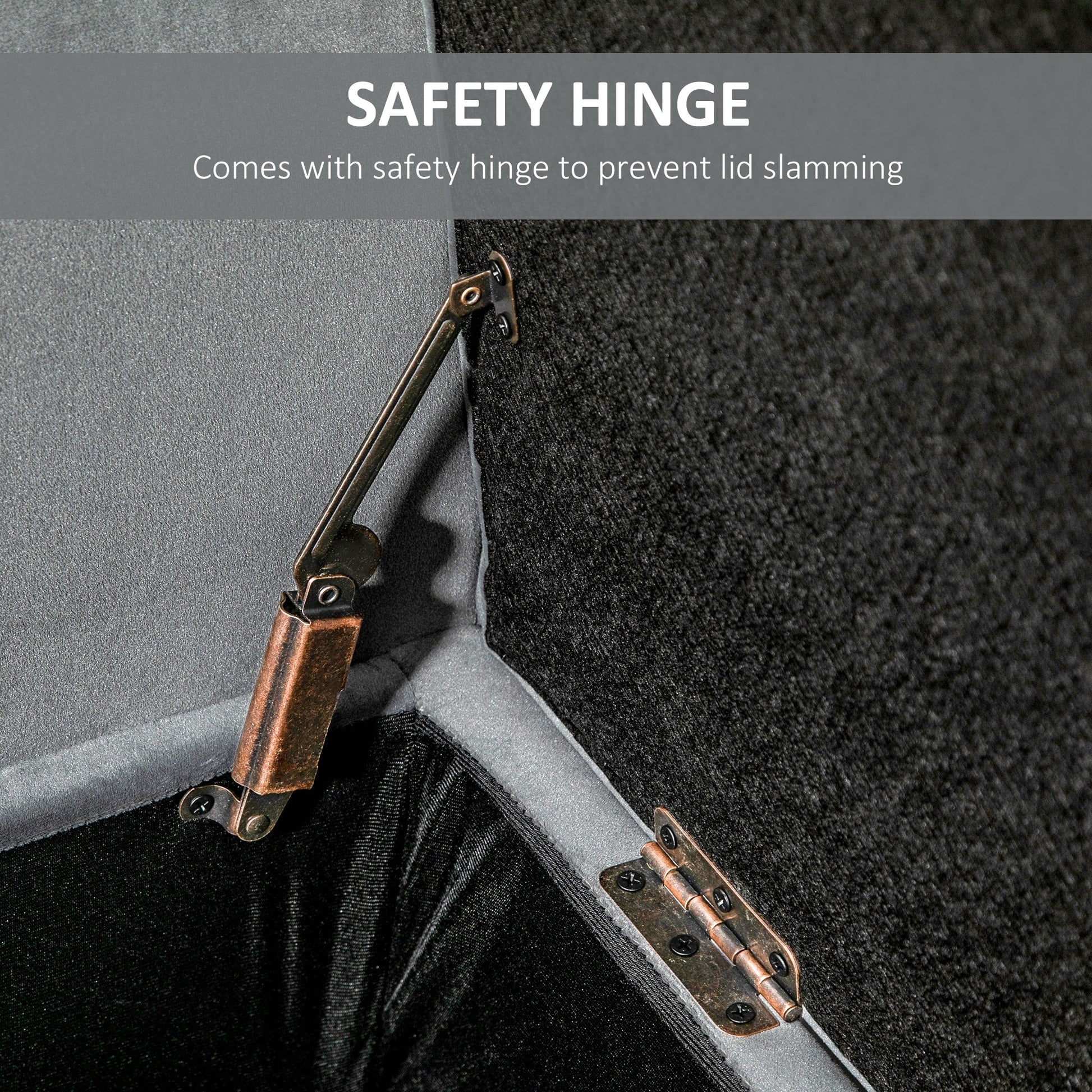 HOMCOM Button-Tufted Storage Ottoman Bench, Upholstered Bed Bench with Rolled Armrests for Bedroom, Living Room or Hallway