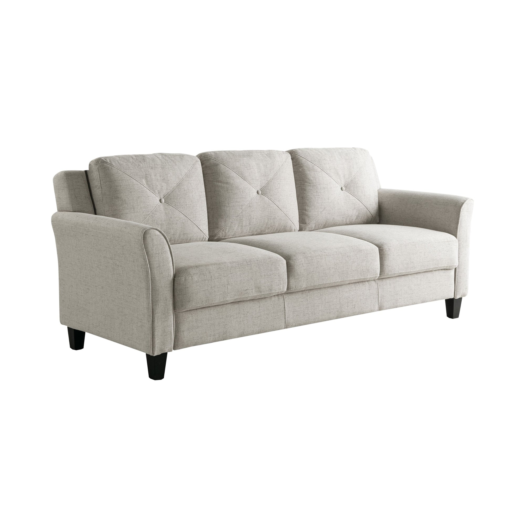 Experience the perfect blend of style, comfort, and convenience with the iLounge Harvard Microfiber Sofa. This three-seat sofa is crafted with high-density foam cushions and curved arms that snuggle your body for a cozy feel. The sofa's solid eucalyptus wood frame ensures durability and long-lasting enjoyment, while its plush poly microfiber upholstery provides lasting softness. The elegant tufted back cushions add an accented support to this masterpiece. Minimal assembly is required, and it can hold up to 450 lbs.