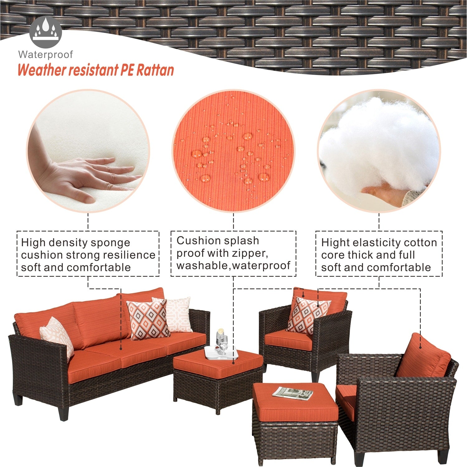 OVIOS 5-piece Patio Furniture Wicker Outdoor High-back Seating...