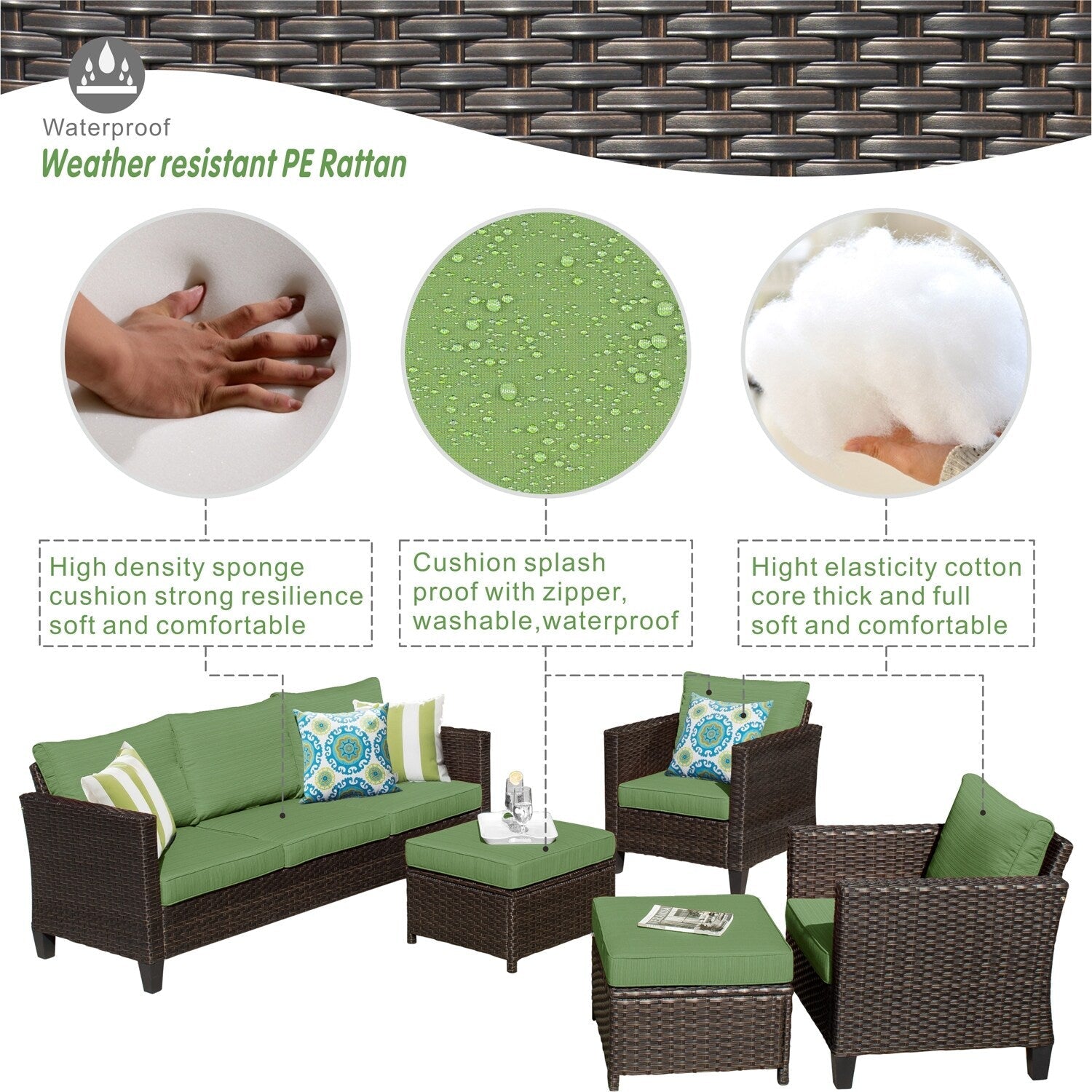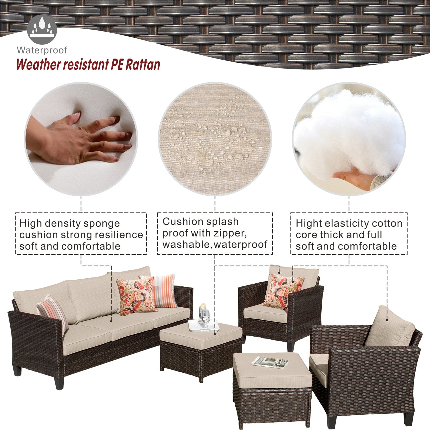 OVIOS 5-piece Patio Furniture Wicker Outdoor...