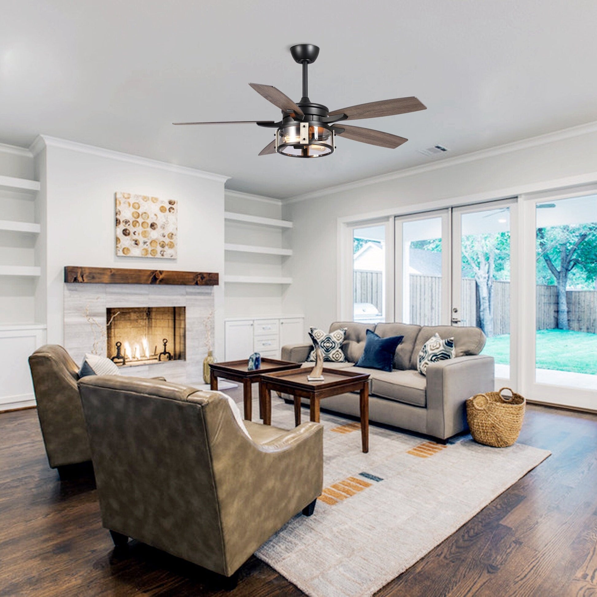 • Includes one 52-inch, 5-blade ceiling fan, remote, and instruction manual