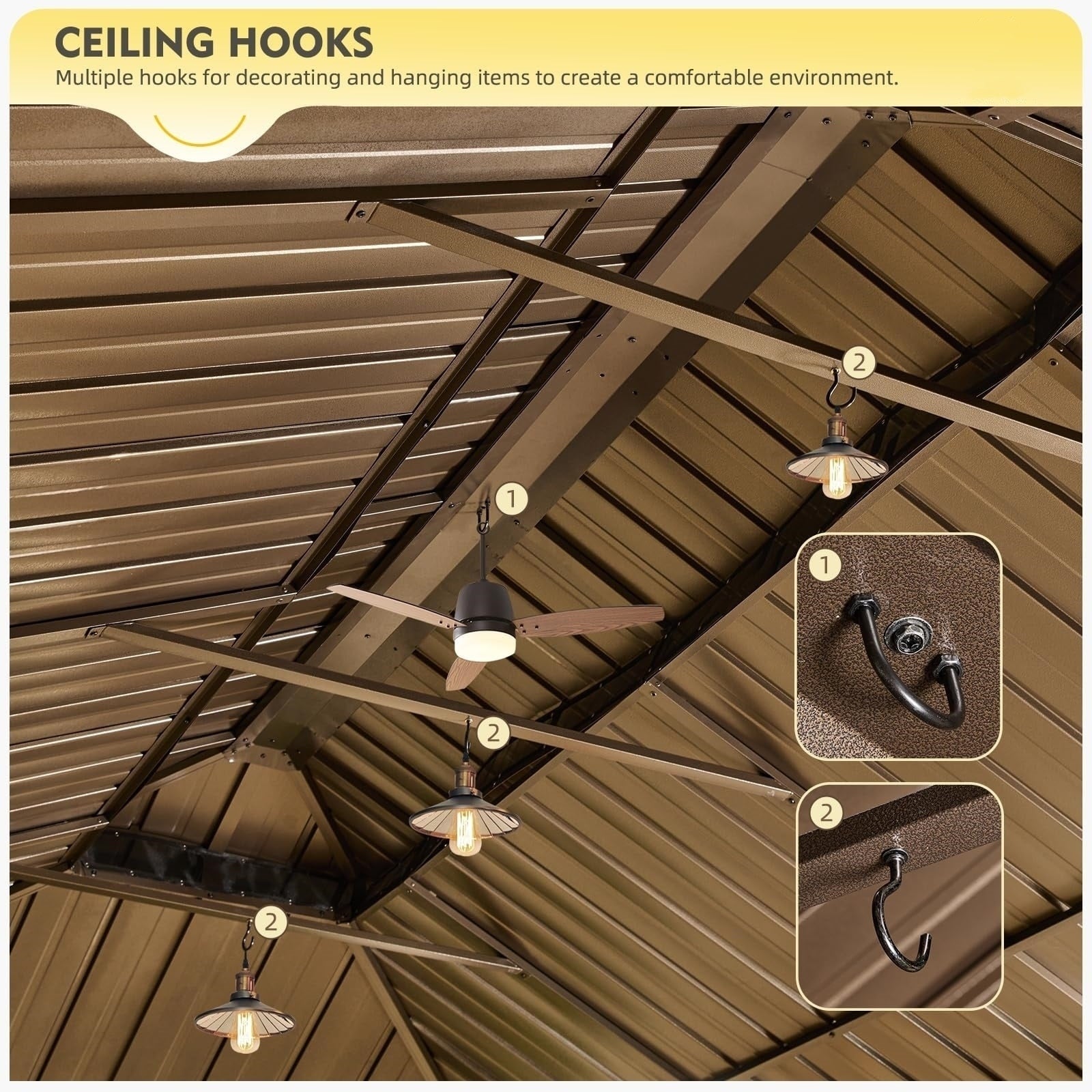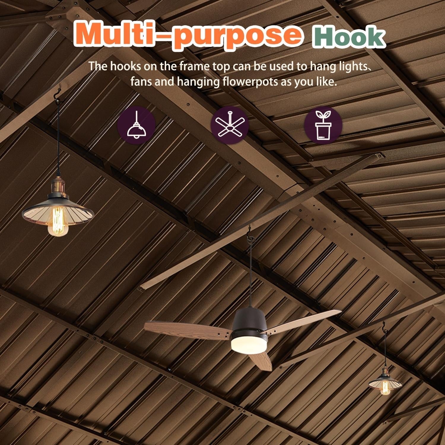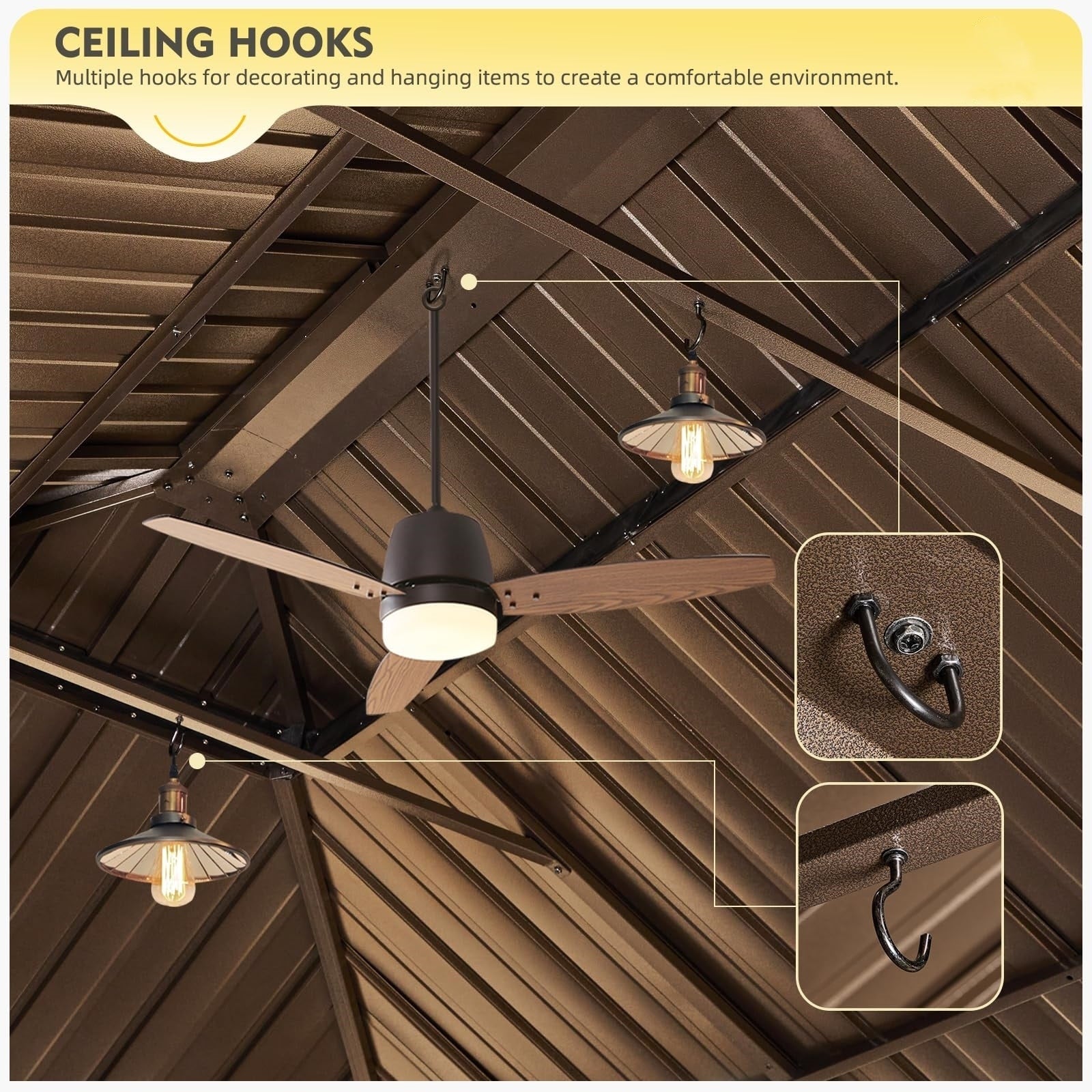 Multi-purpose hook design aims to meet your many needs. It allows you to hang fans on hot summer days, or add beautiful lights and decorations. This gazebo can be a playground for children, a place for couples to date, or a great space for families to gather. It will certainly bring you unexpected surprises.