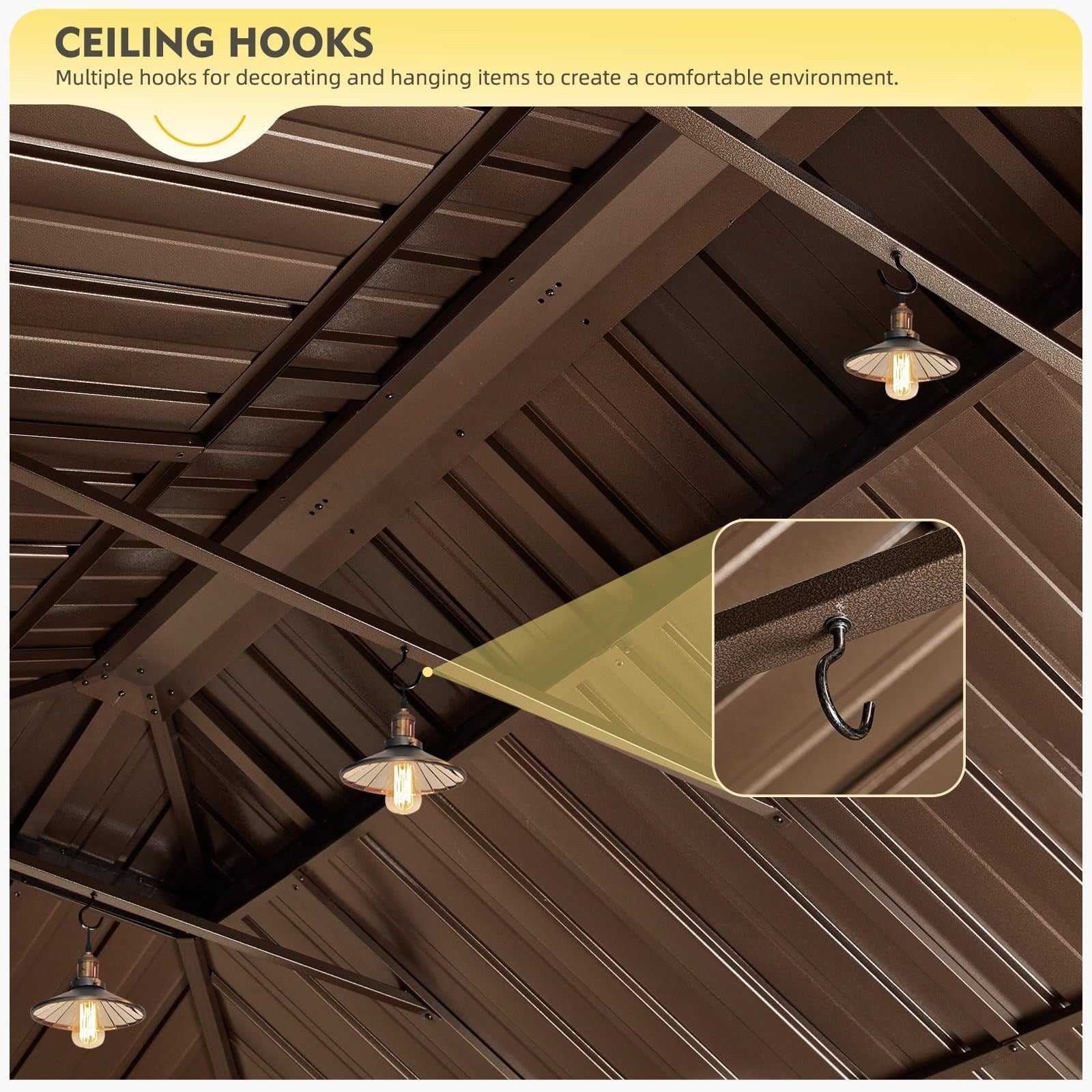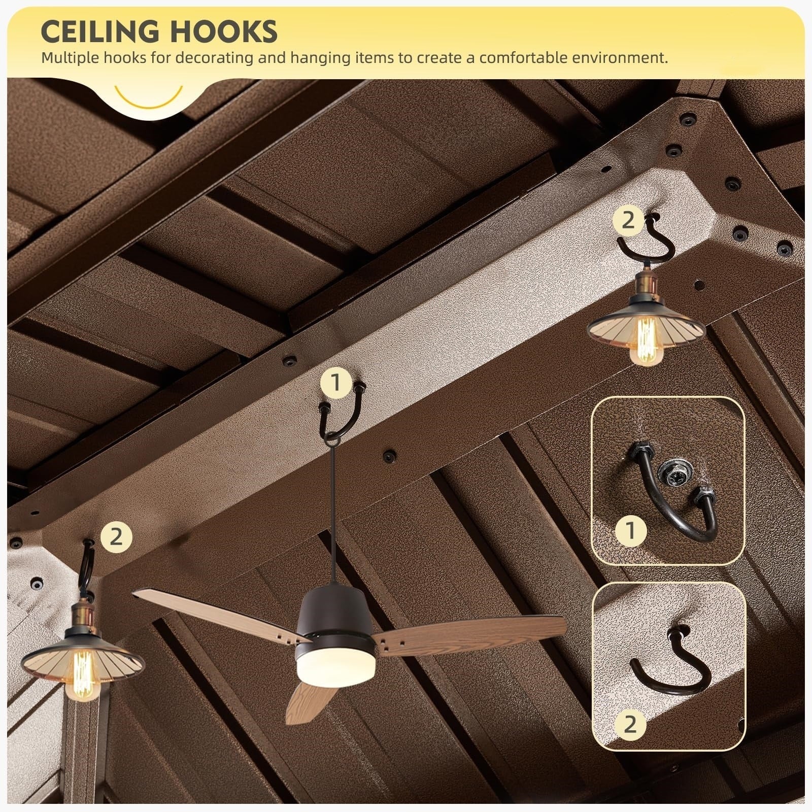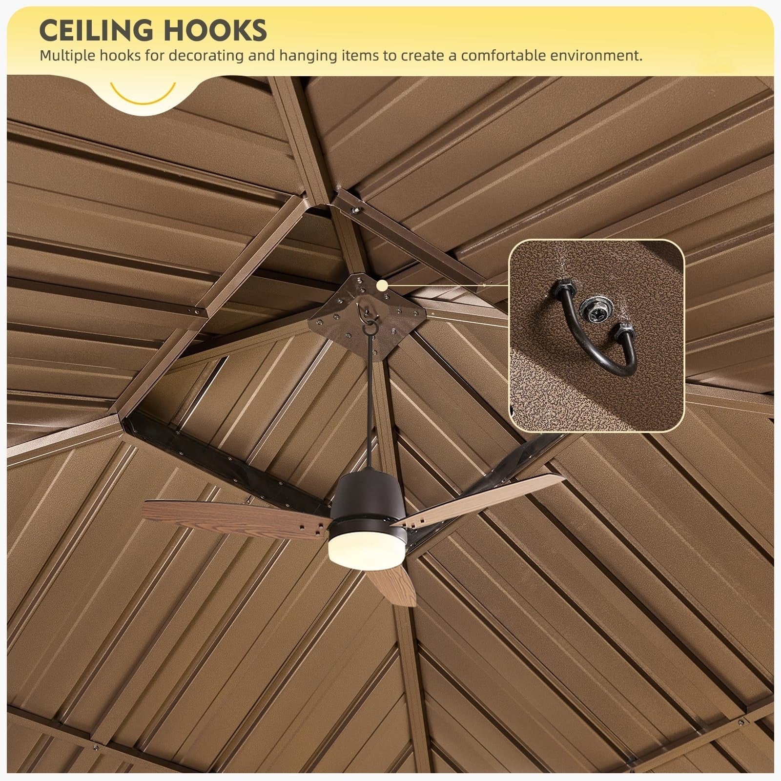 Multi-purpose hook design aims to meet your many needs. It allows you to hang fans on hot summer days, or add beautiful lights and decorations. This gazebo can be a playground for children, a place for couples to date, or a great space for families to gather. It will certainly bring you unexpected surprises.