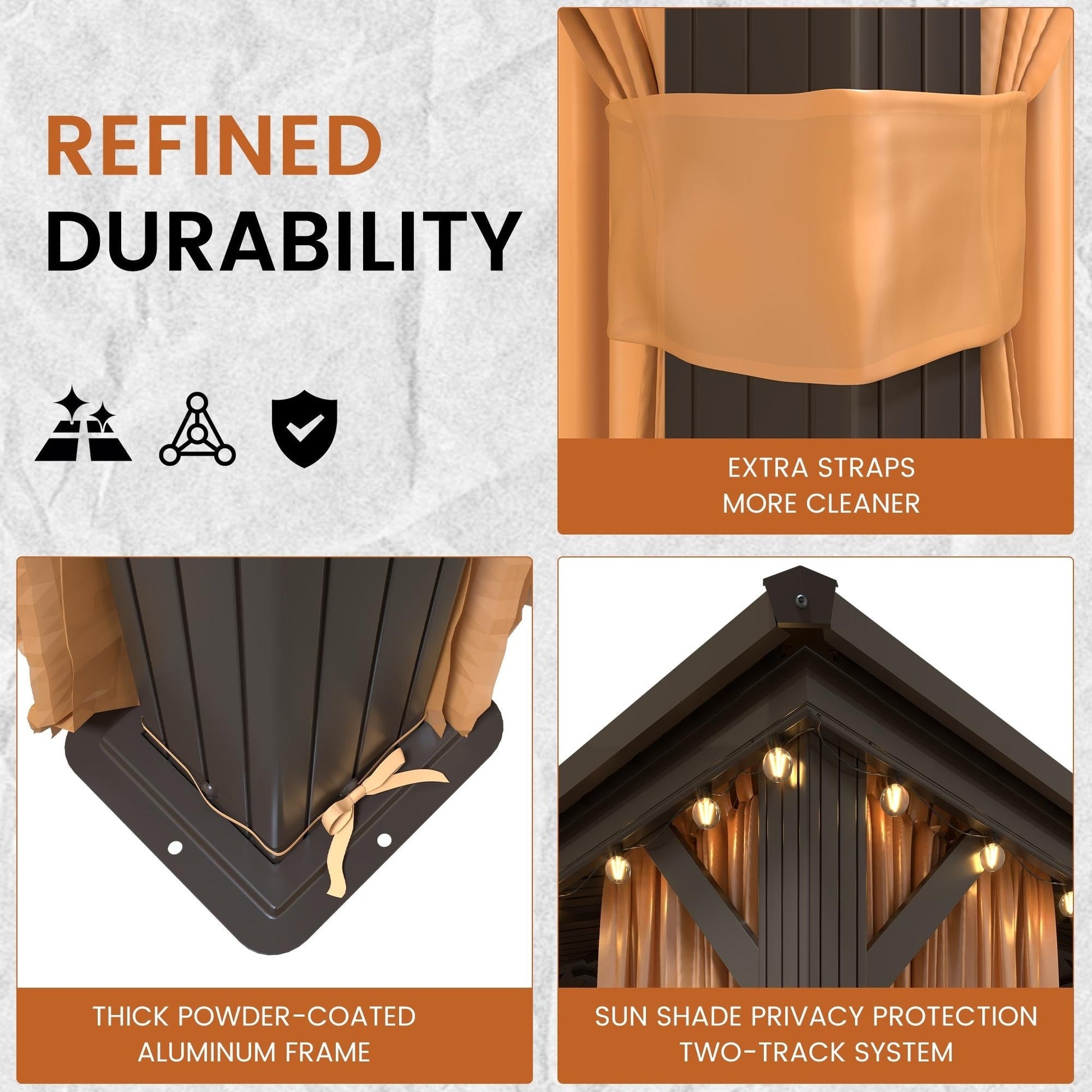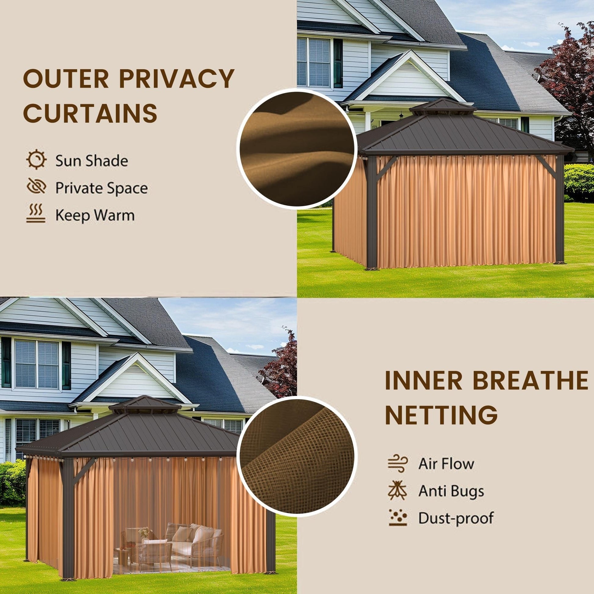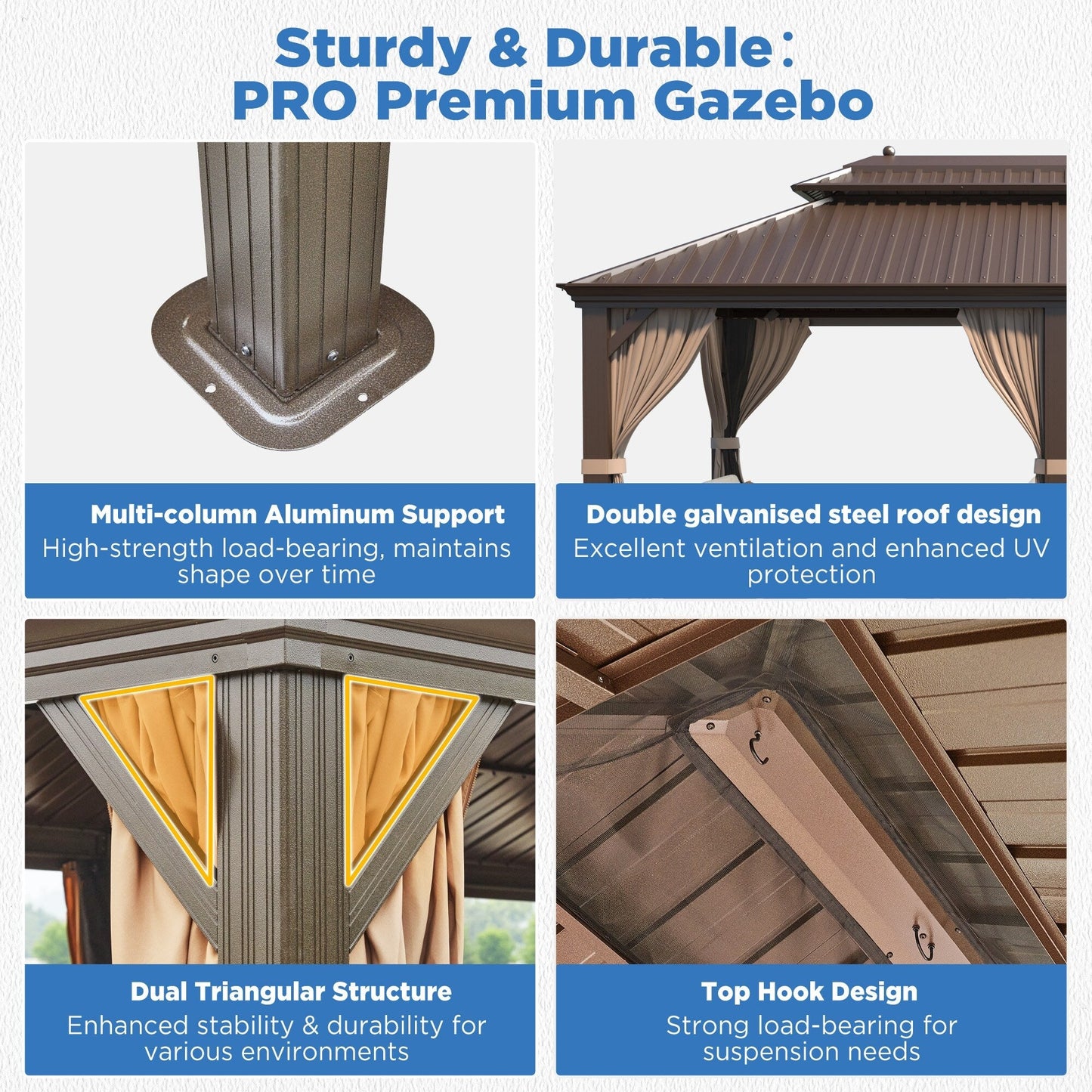Outdoor Hardtop Gazebo with Galvanized Steel Double Roof & Aluminum Frame, Outdoor pergola with Premium Curtains and Nettings