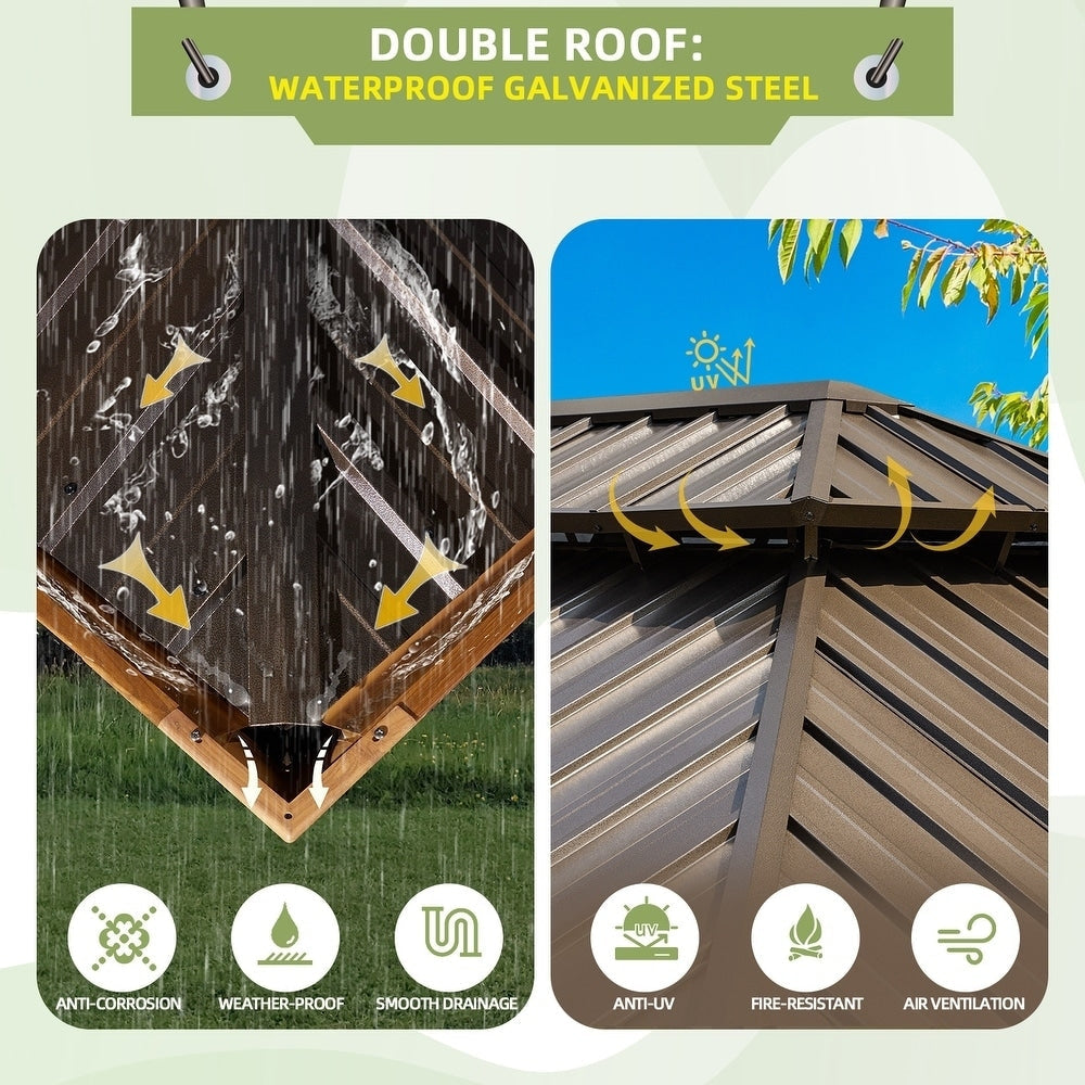 Outdoor Hardtop Gazebo with Galvanized Steel Double Roof...