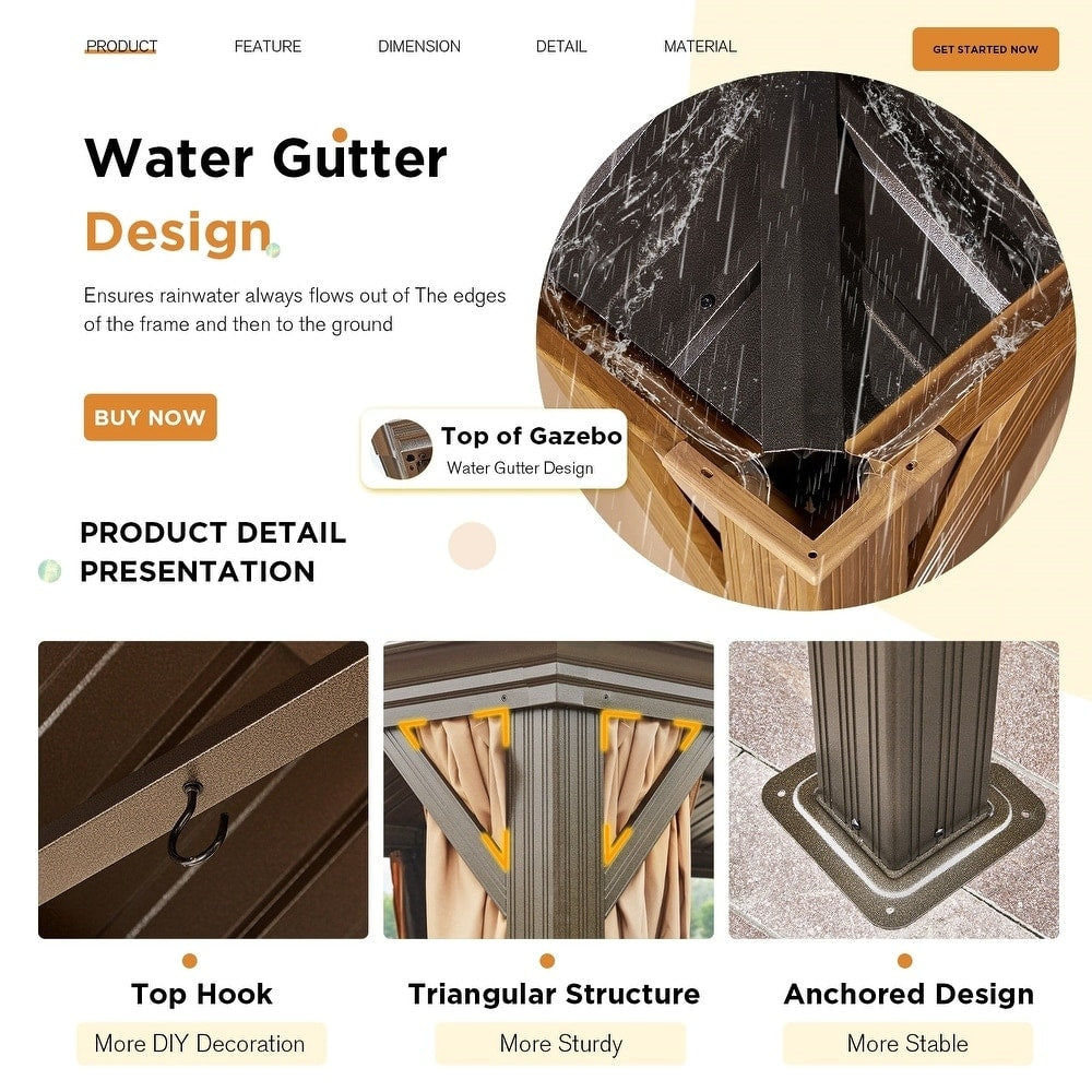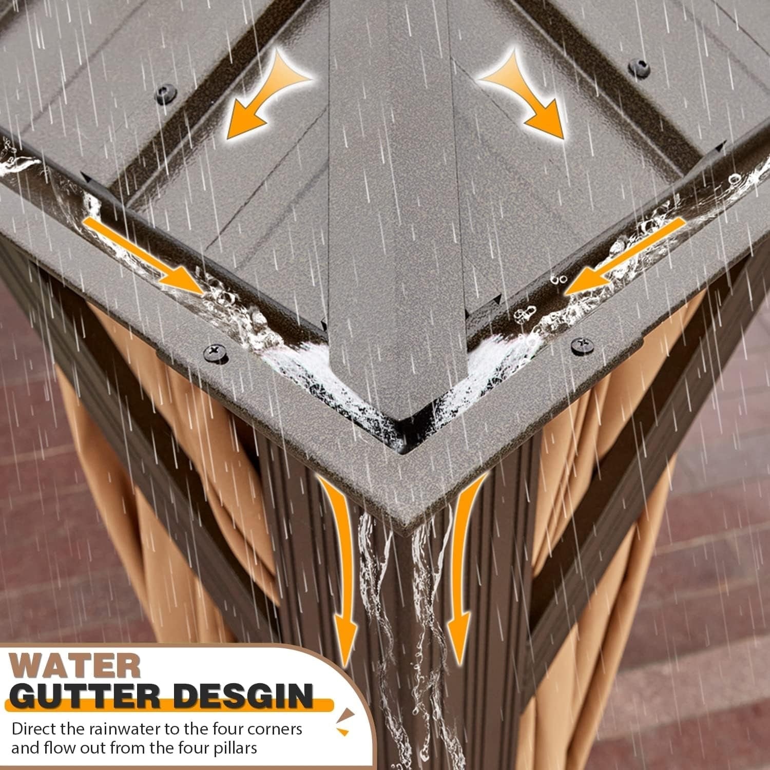 • For Compact Gazebos (Under 12' x 20'): Features angled eaves with a 4-corner runoff design — rainwater flows naturally along the sloped edges for smooth drainage.