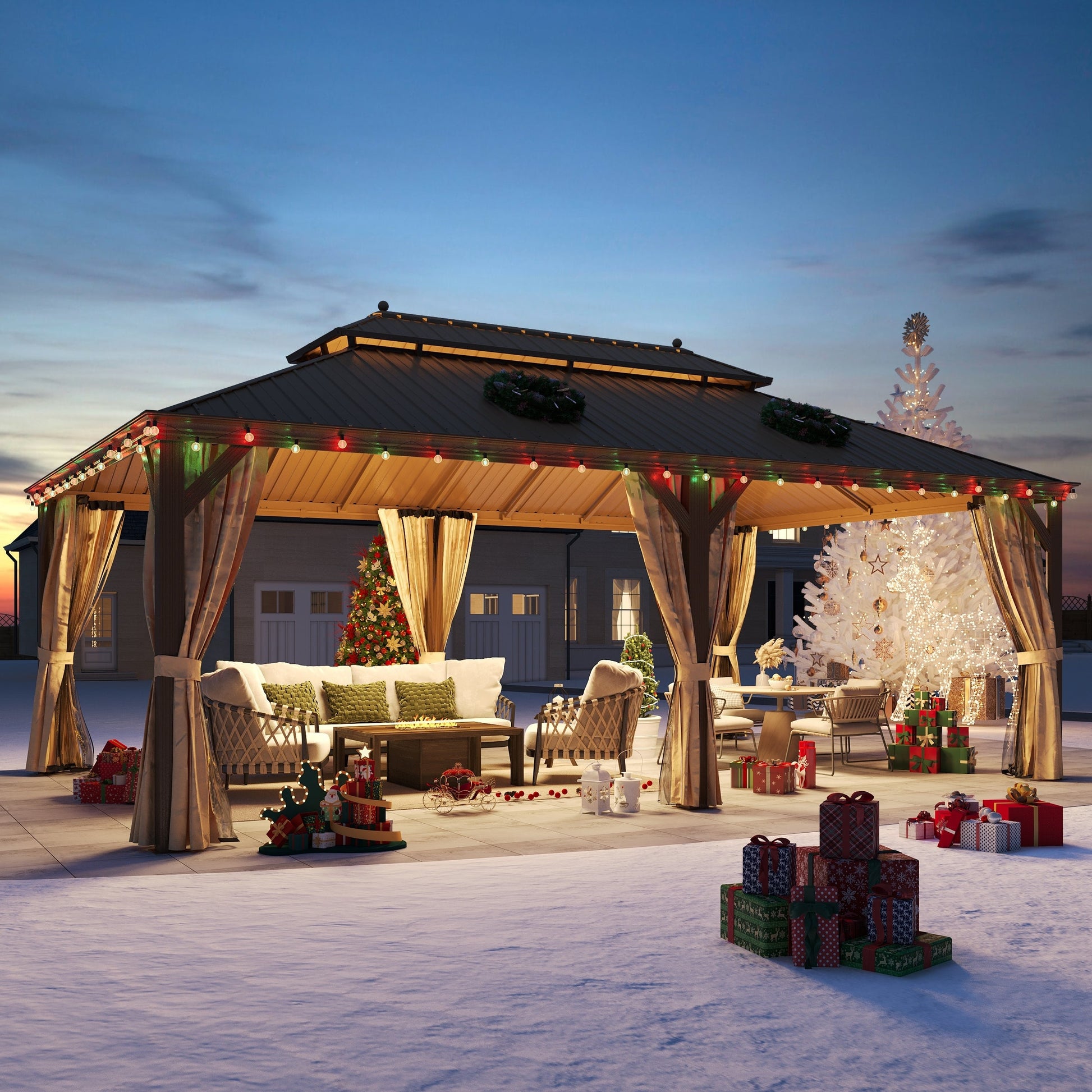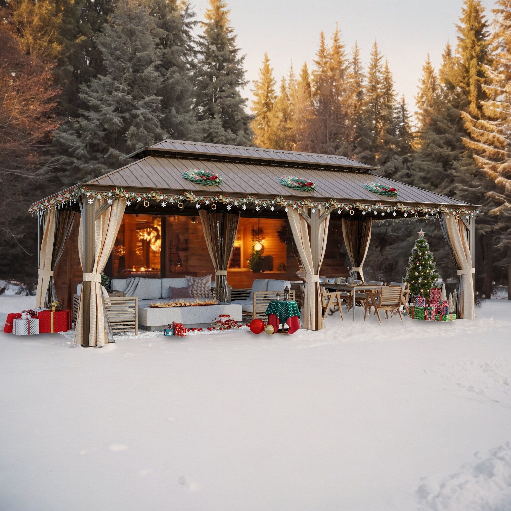 Outdoor Hardtop Gazebo with Galvanized Steel Double Roof & Aluminum Frame, Outdoor pergola with Premium Curtains and Nettings