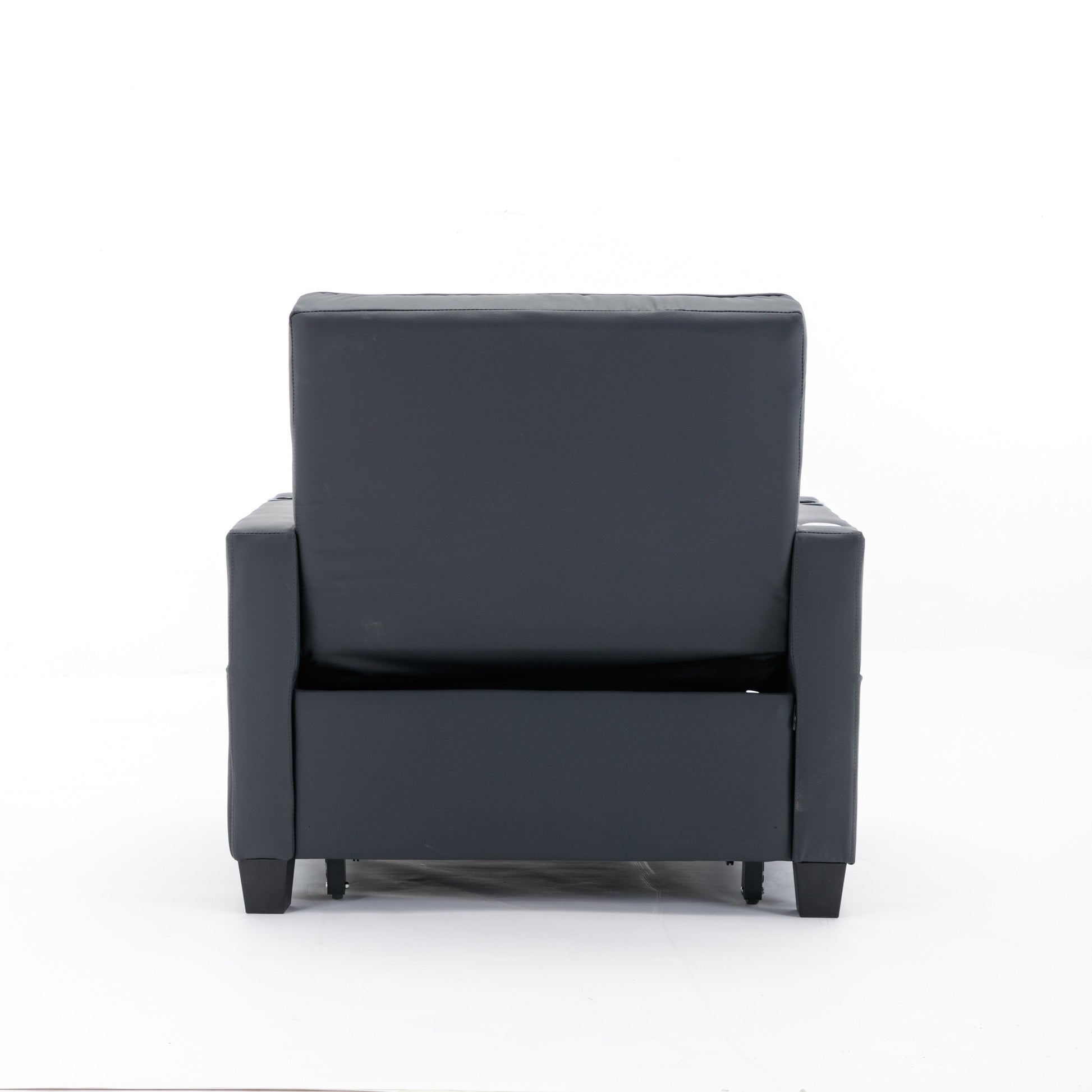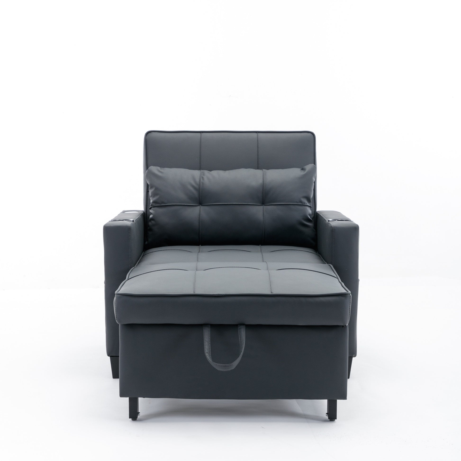 Black Faux Leather Convertible Sofa Bed with USB...