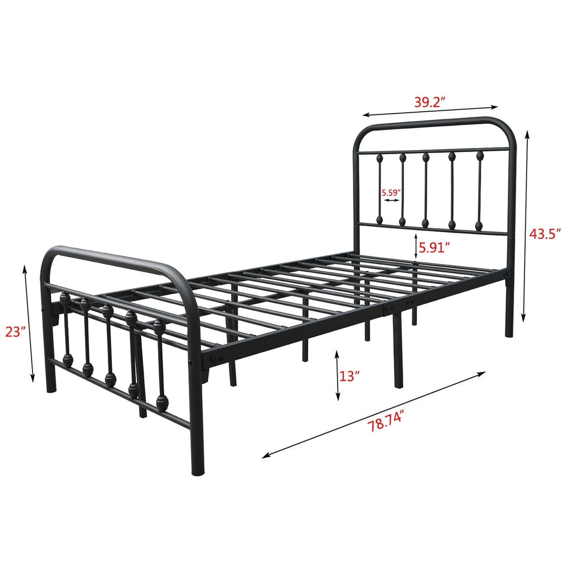 Upgrade your bedroom with the Alazyhome Simple Vintage Metal Platform Bed Frame. This vintage-style and simple-color bed frame easily blends with bold colors and accessories to give your room a refreshed look. Suitable for all ages, this bed frame eliminates the need for a box spring and is designed with durable metal slats that extend the life of your mattress, while the additional center leg provides ample support for a comfortable night's sleep. All necessary parts and tools are included in one box, allowing for easy assembly and disassembly. With 12 inches of storage space beneath the bed frame, it helps keep your room neat and tidy.