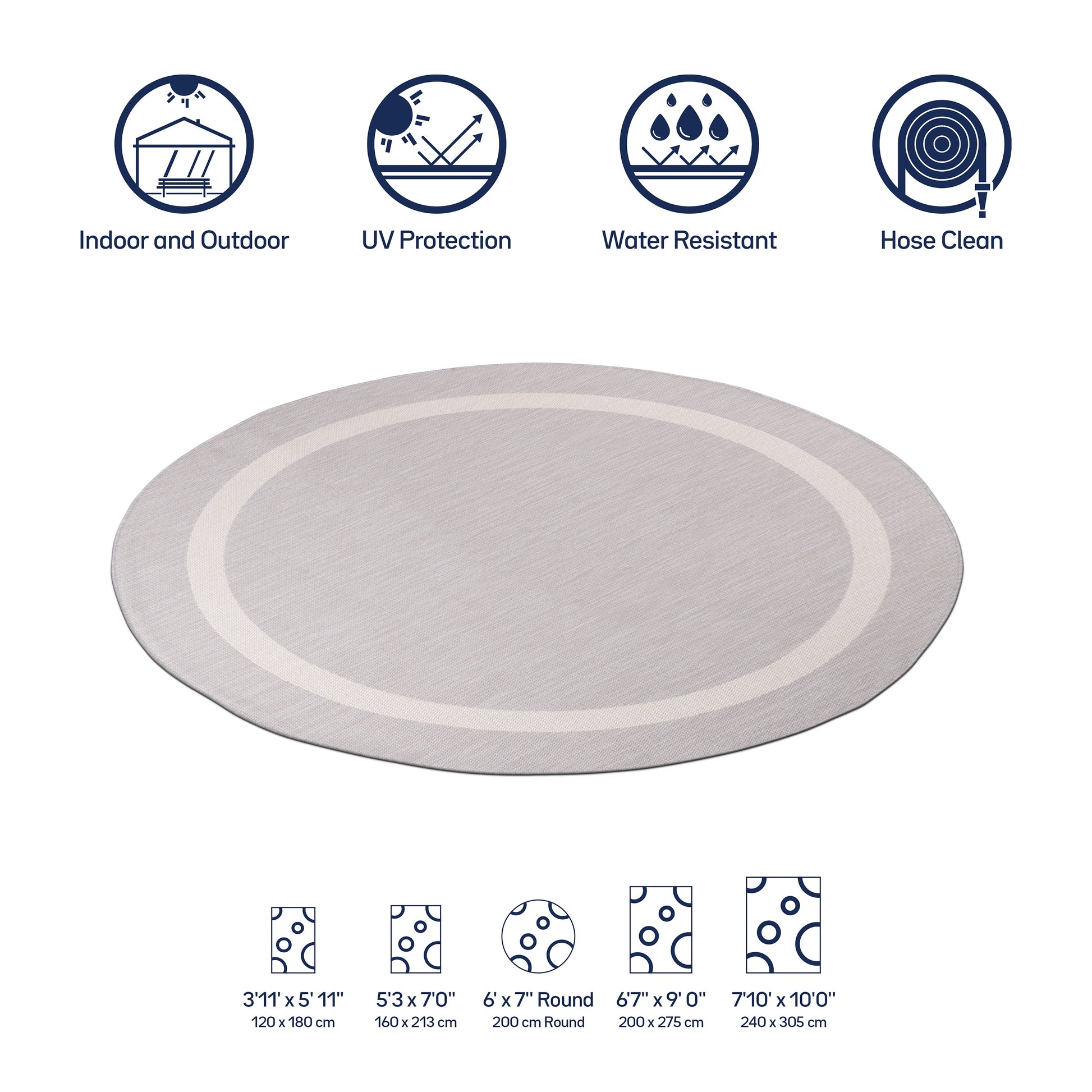 Beverly Rug Modern Bordered Indoor Outdoor Rug, Outside Carpet for Patio, Deck, Porch
