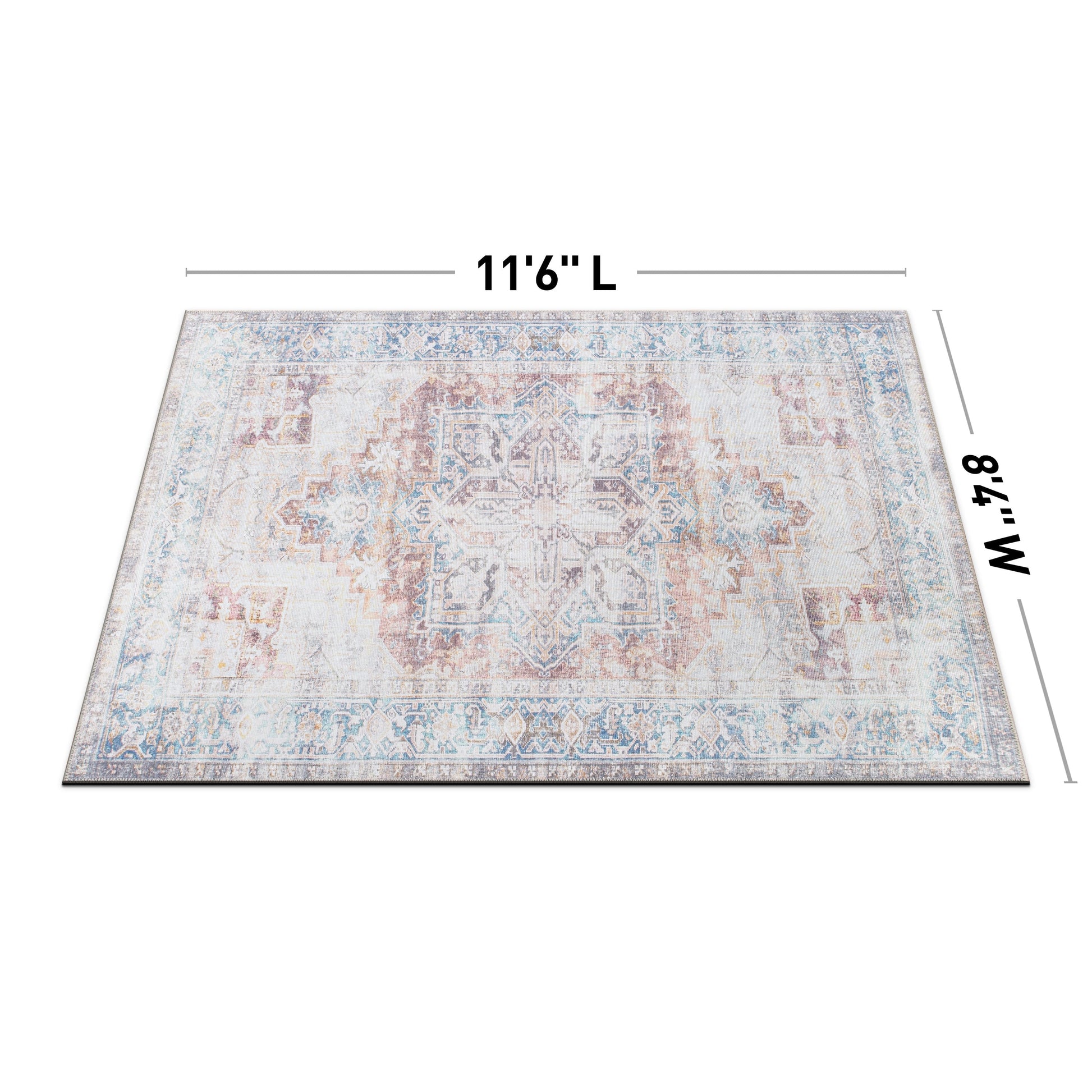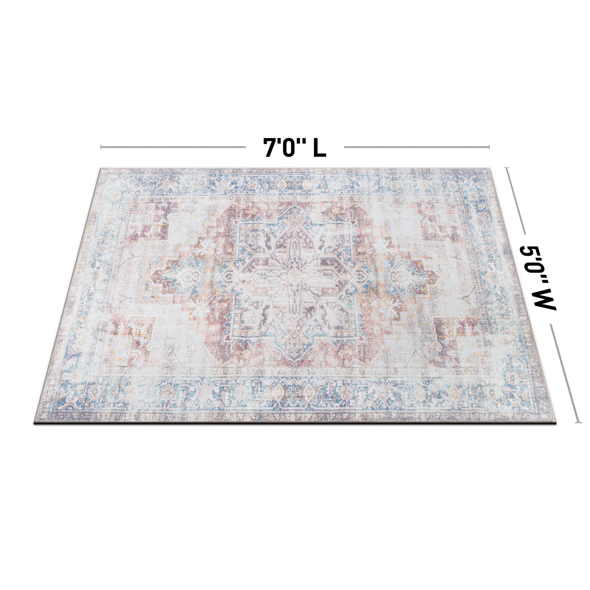 Introduce a touch of vintage charm and bohemian style to your living space with this machine washable area rug featuring a medallion design. The rug's bold colors and various size options make it a versatile addition to any room. Crafted from premium recycled materials that are OEKO-TEX certified for sustainability, this flat-woven rug is easy to maintain and environmentally friendly.