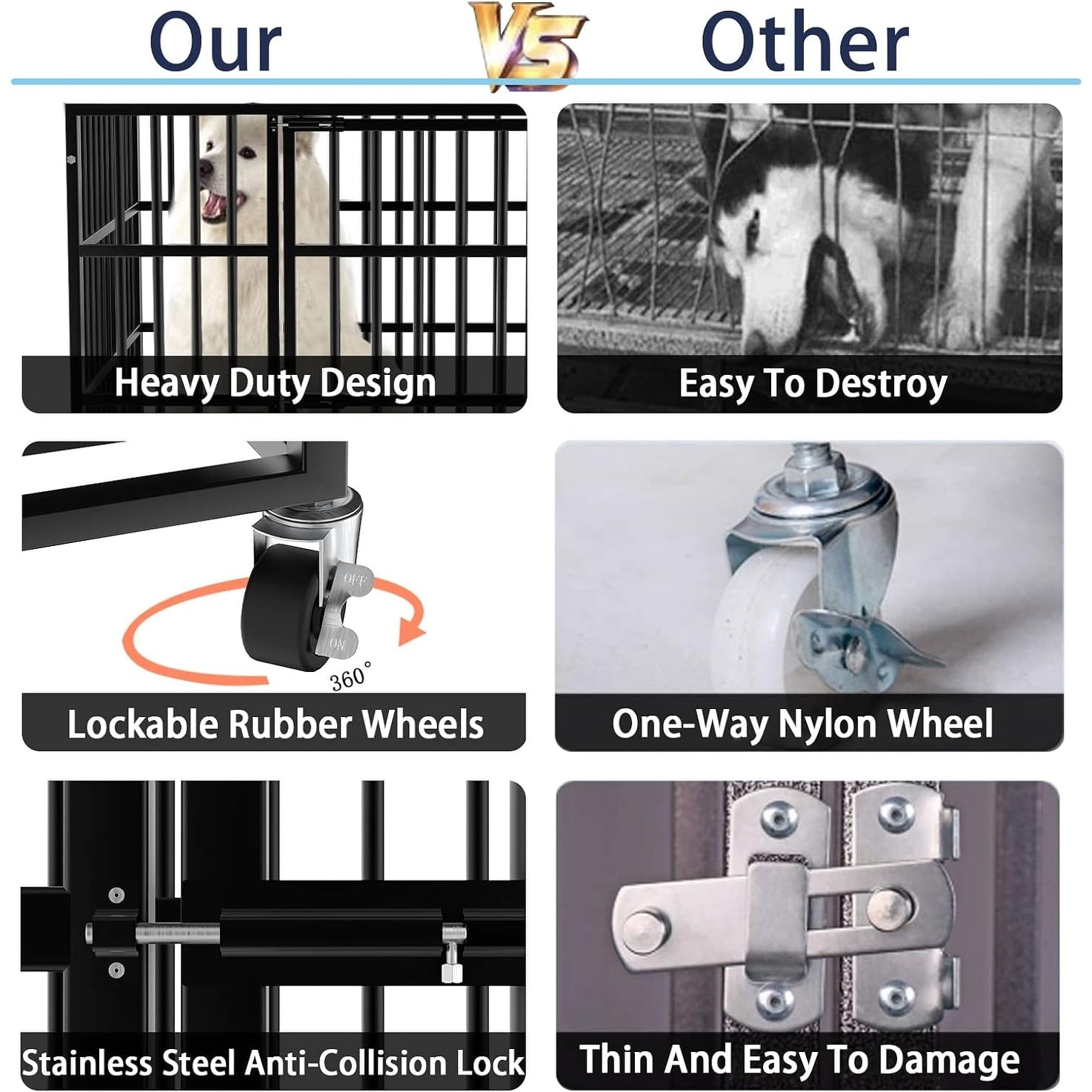 • 🐶【Great Heavy Duty Dog Crate For The Money】This dog cage is specially designed for German Shepherd, Golden retriever, Labrador and other large dogs.If you have any problems with your dog cage during the year, you can always contact us and we will be responsible for your lovely dog.