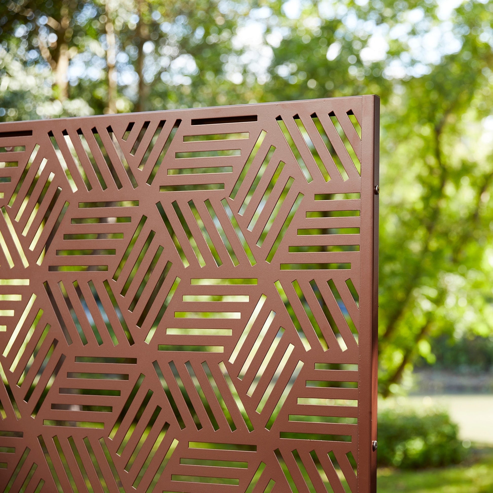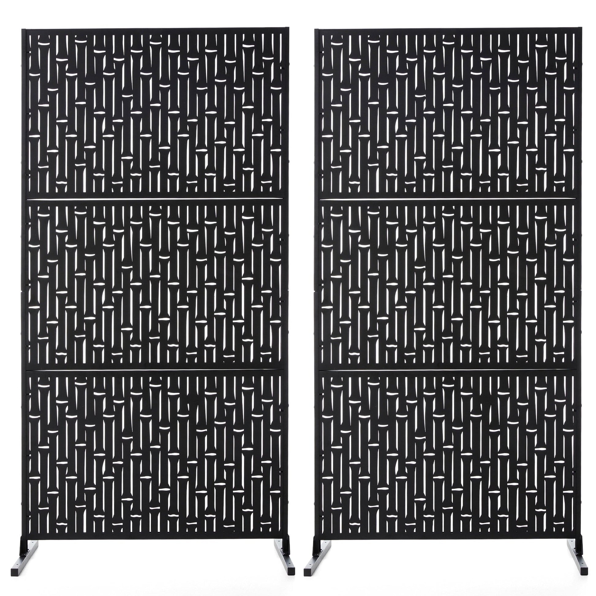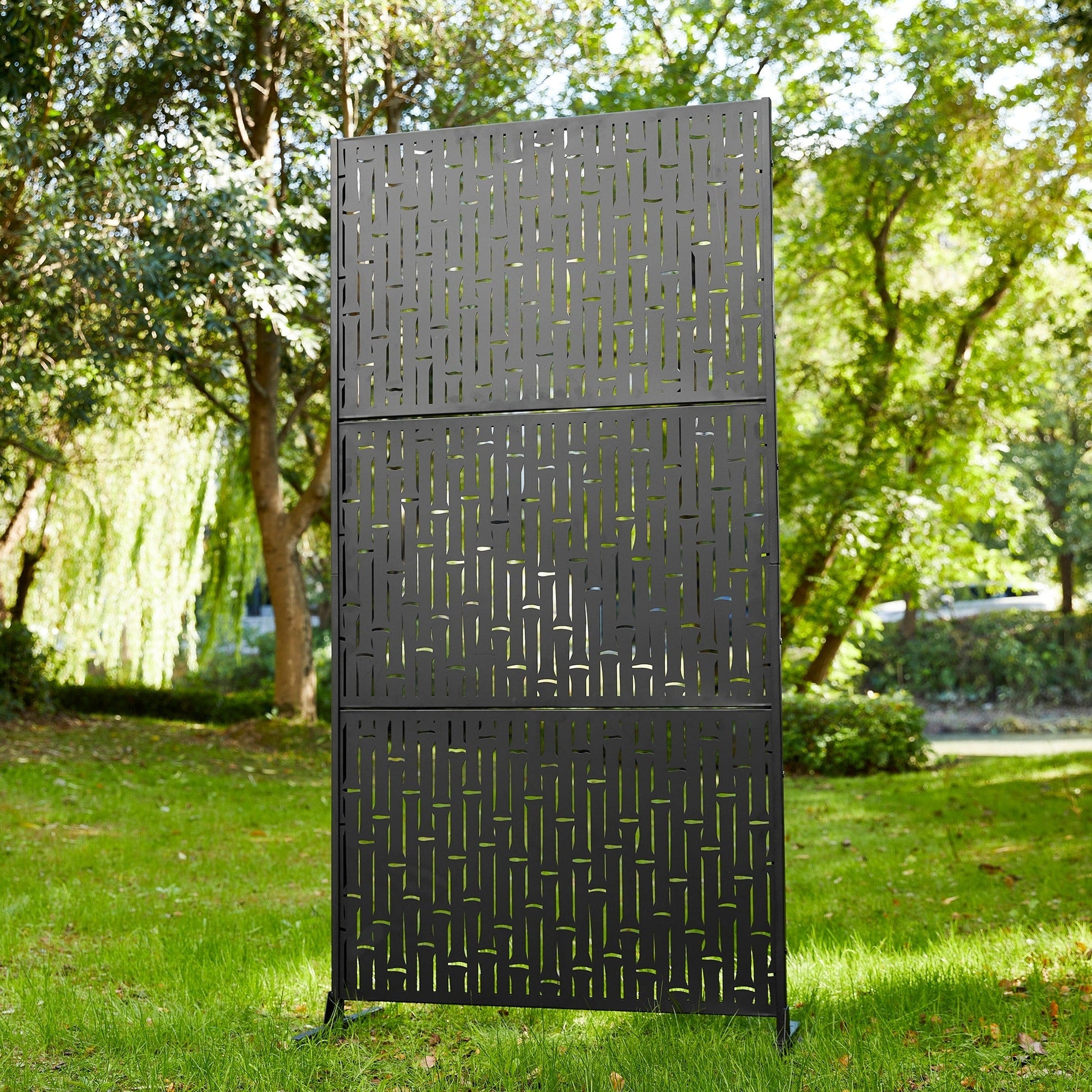 Glitzhome 6ft Galvanized Floral Patterned 3-Panel Privacy Screen...