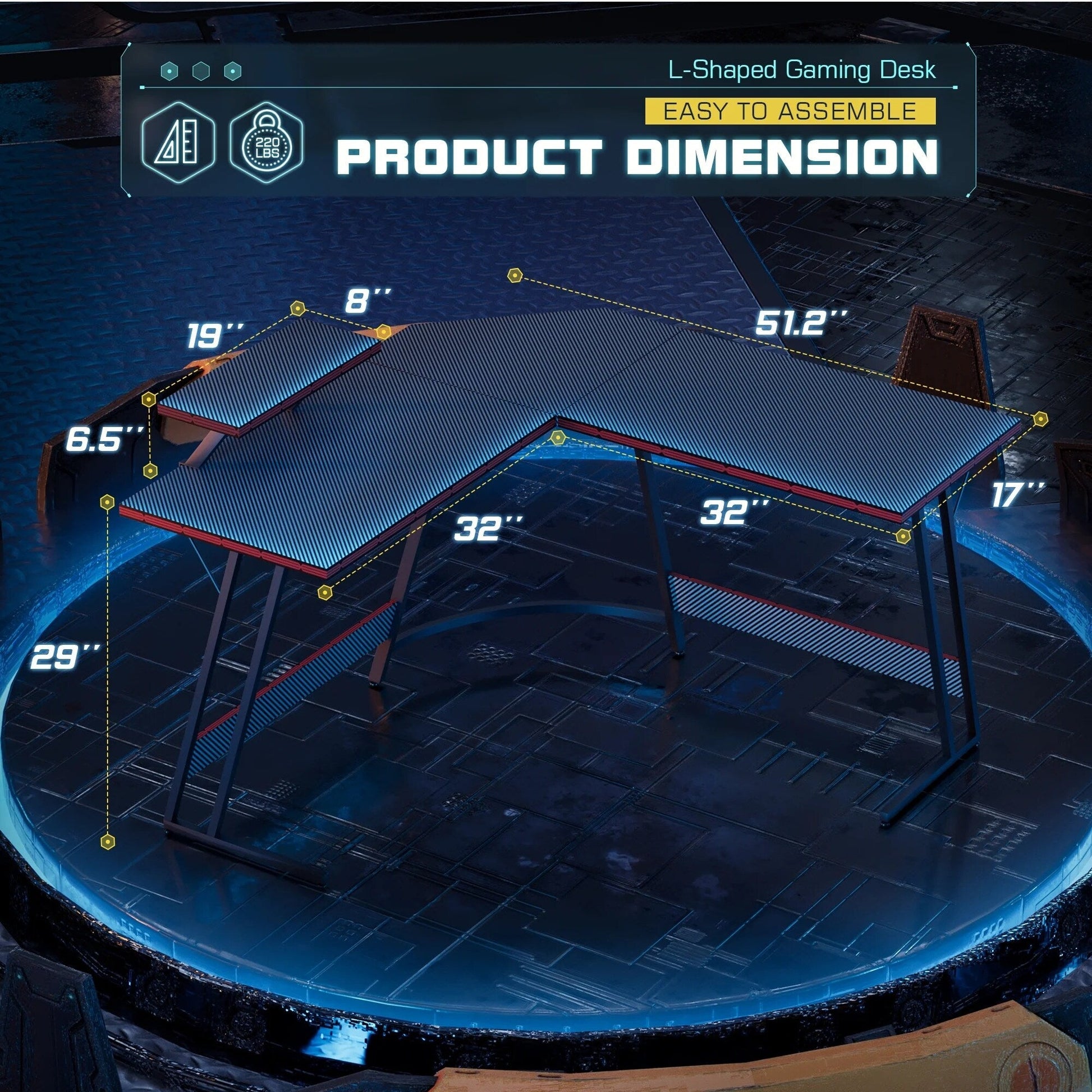 • Sleek Elegance: The gaming desk boasts a stylish design with a glossy carbon fiber surface that is both anti-skid and anti-scratch, enhancing its delicate appeal. The dark red pattern mezzanine and unique Z-shaped legs add a visual charm to the overall aesthetic.