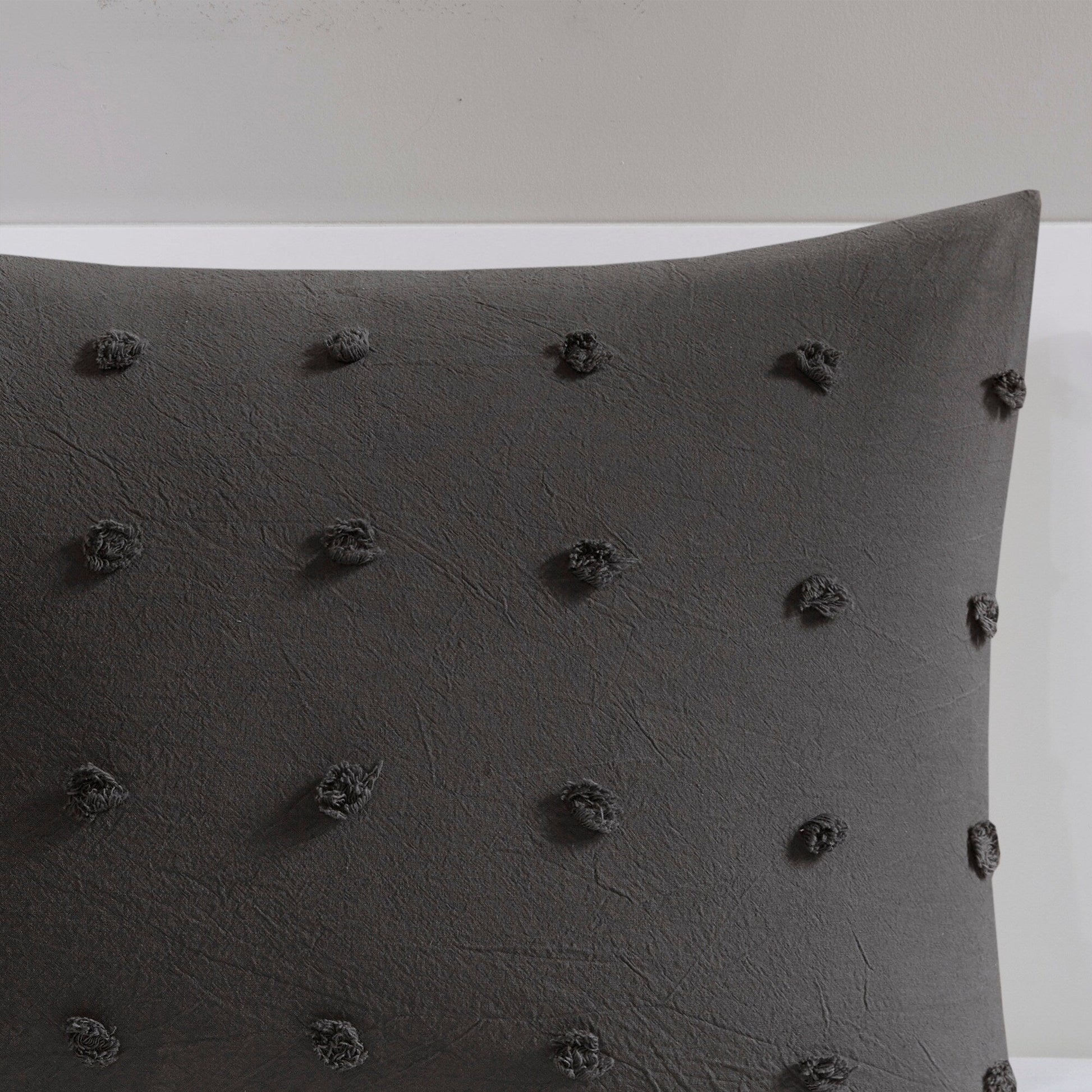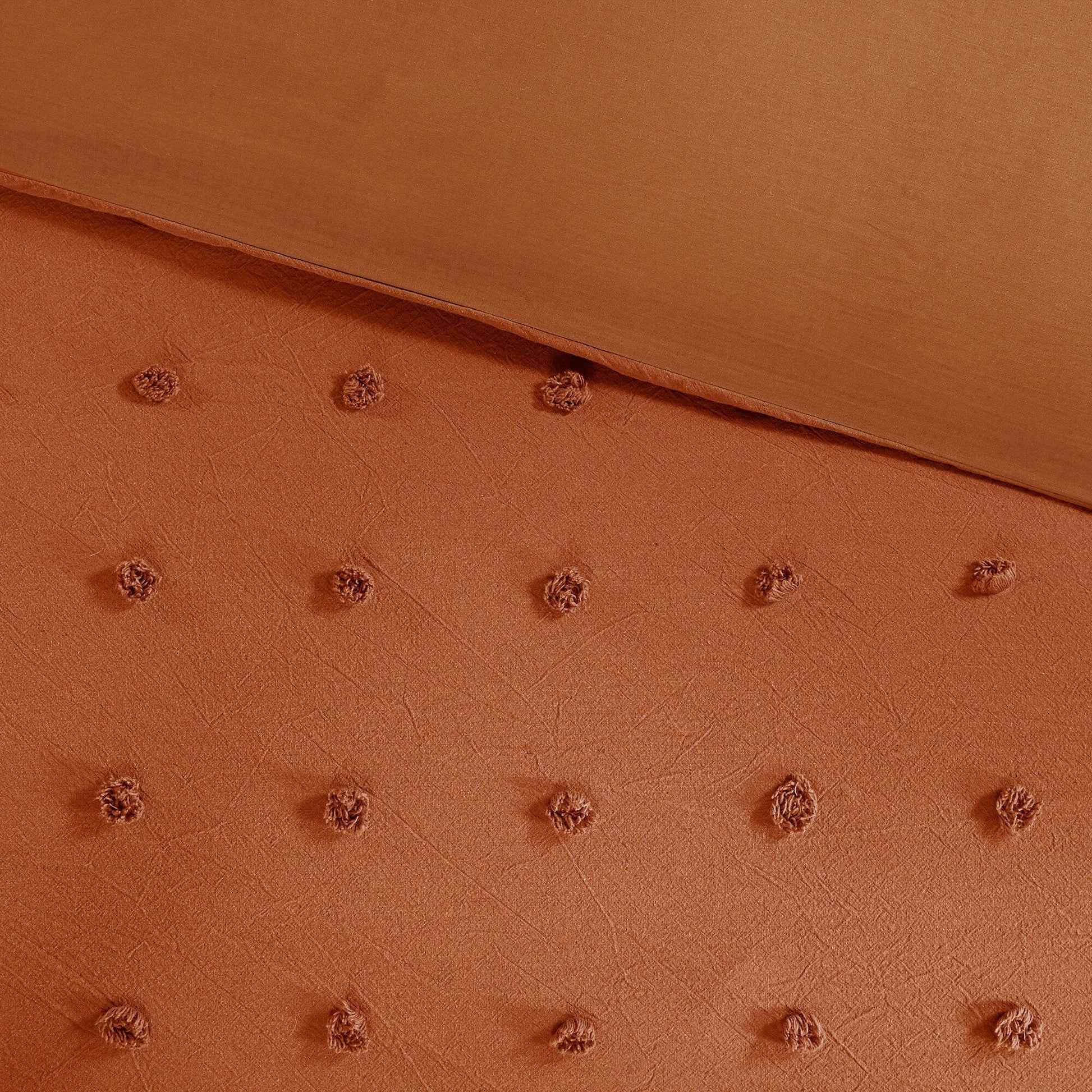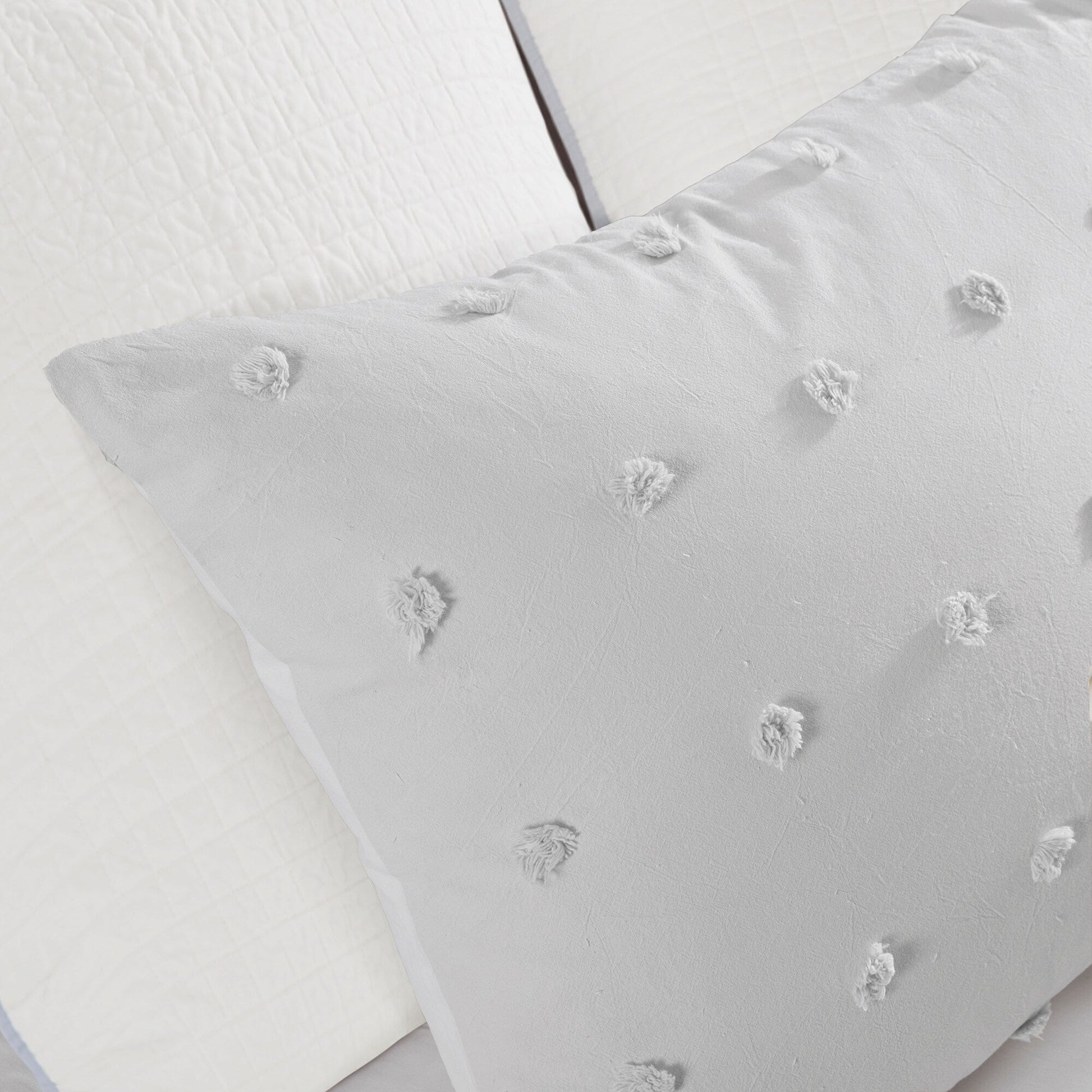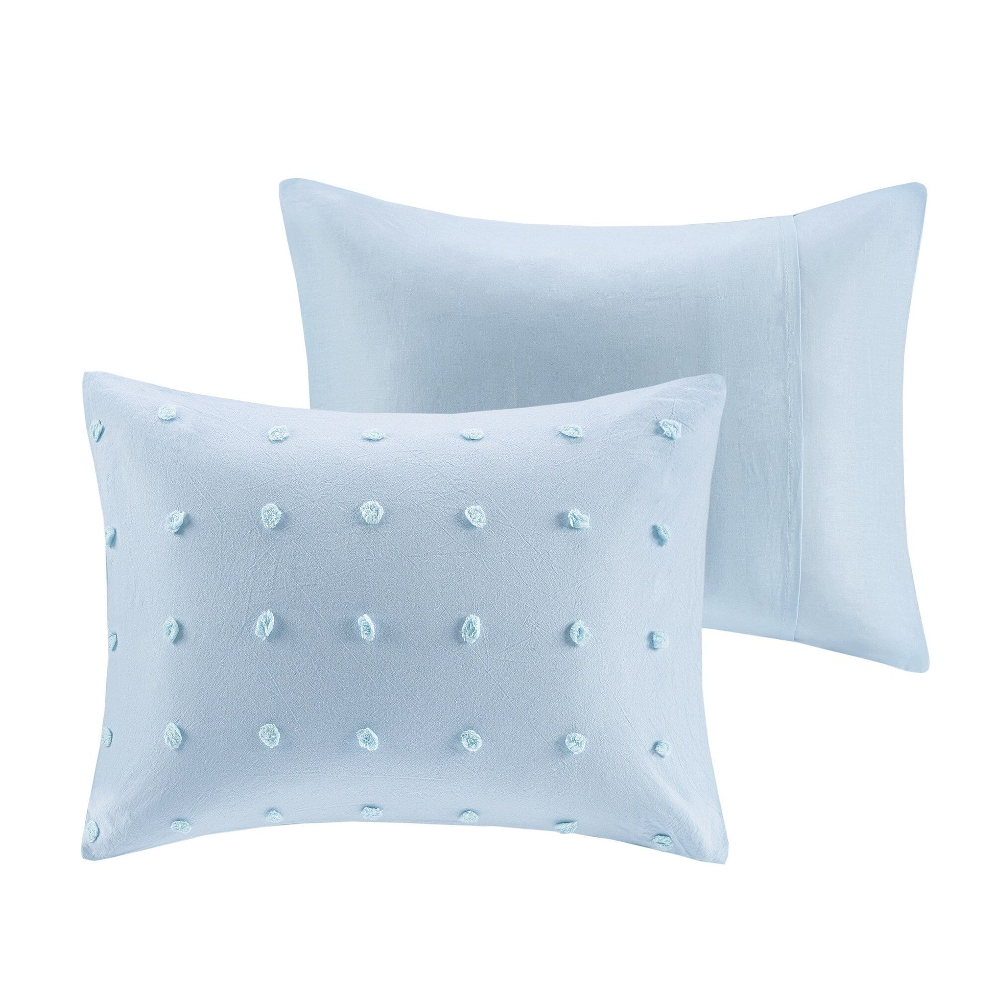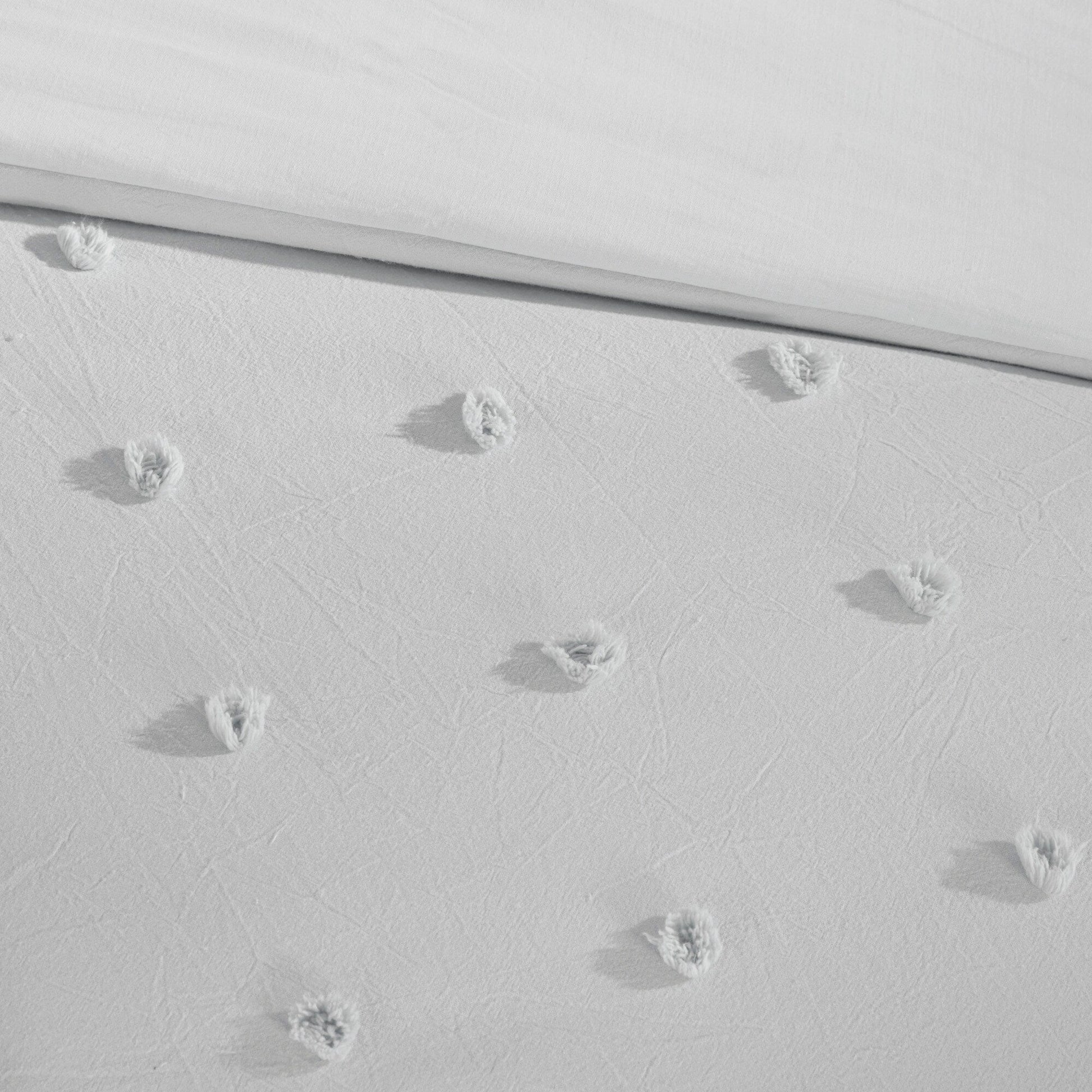 The Intelligent Design Maize Cotton Jacquard Duvet Cover Set features small tufted chenille dots that create a fresh shabby chic look. This duvet cover set brings a soft and charming update to your bedroom.