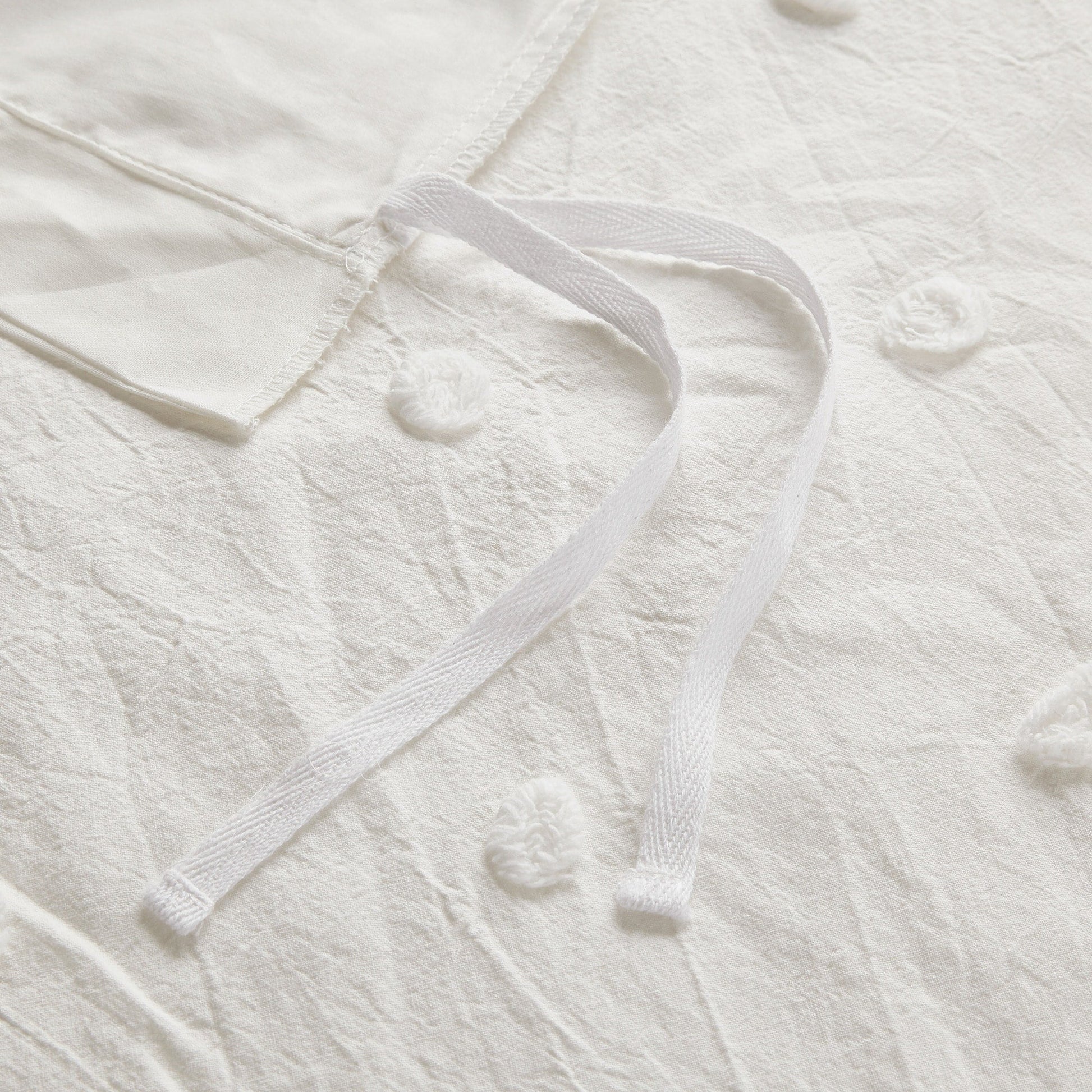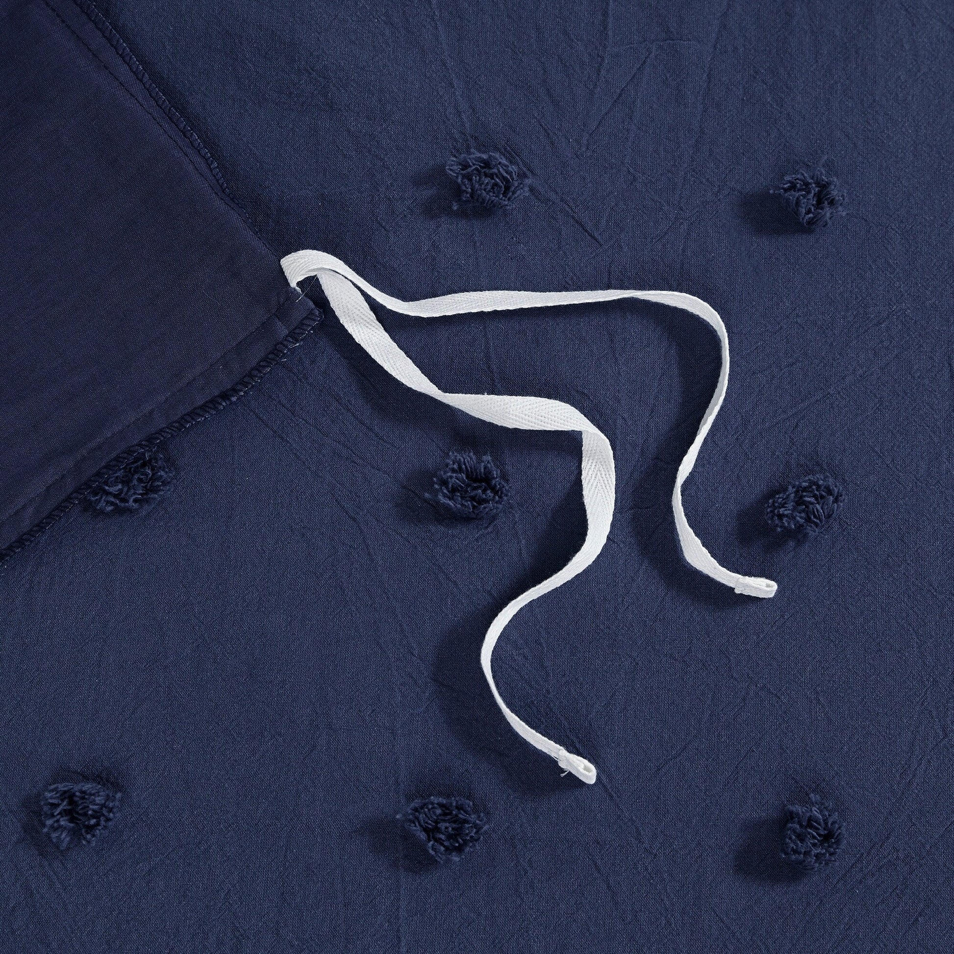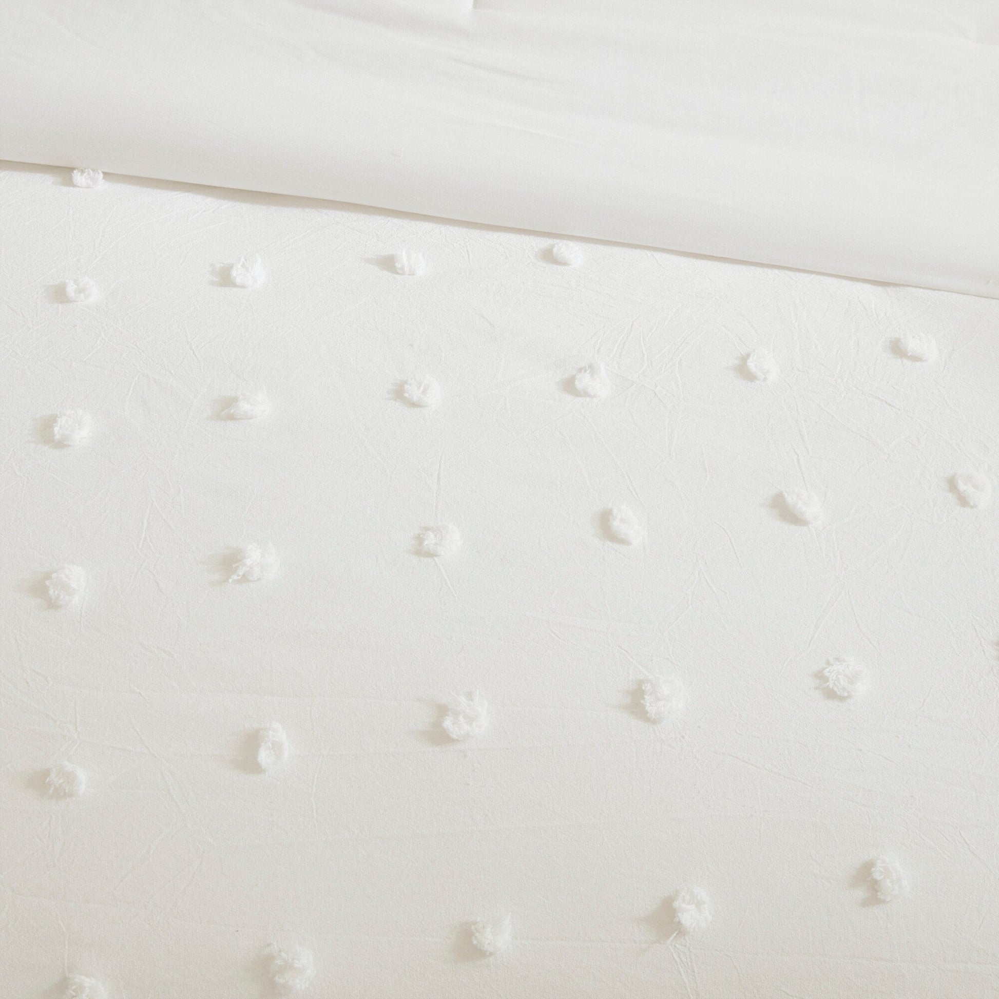 - Simple and cottage like all over woven cotton dots on top of bed