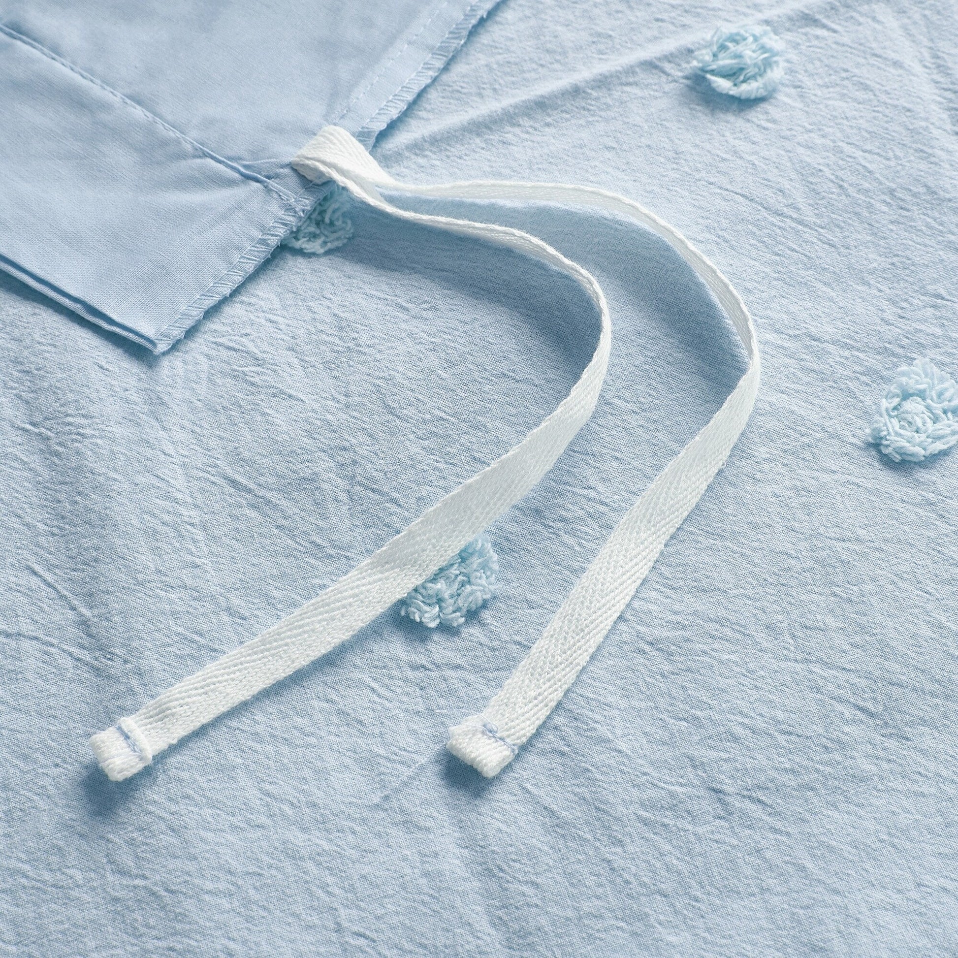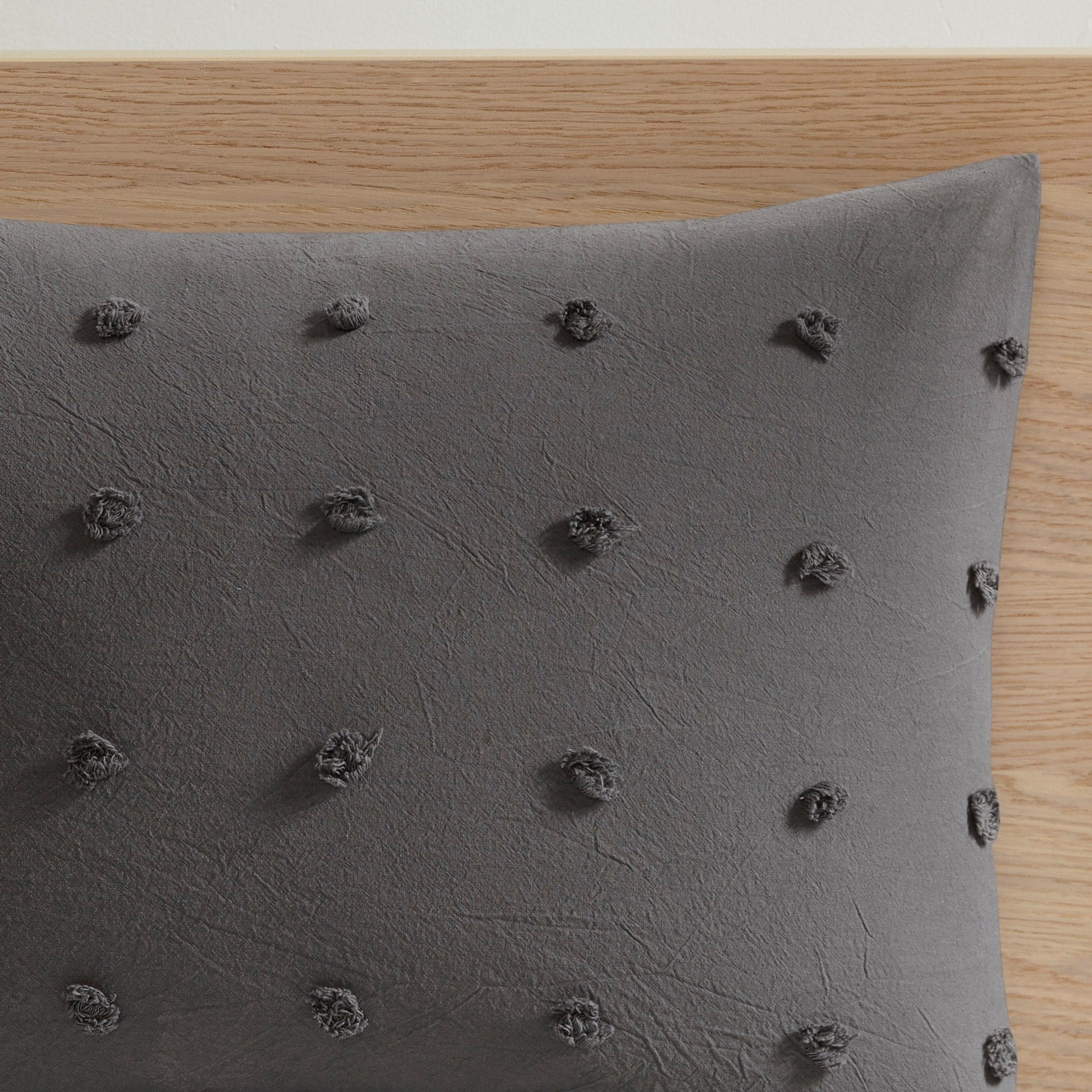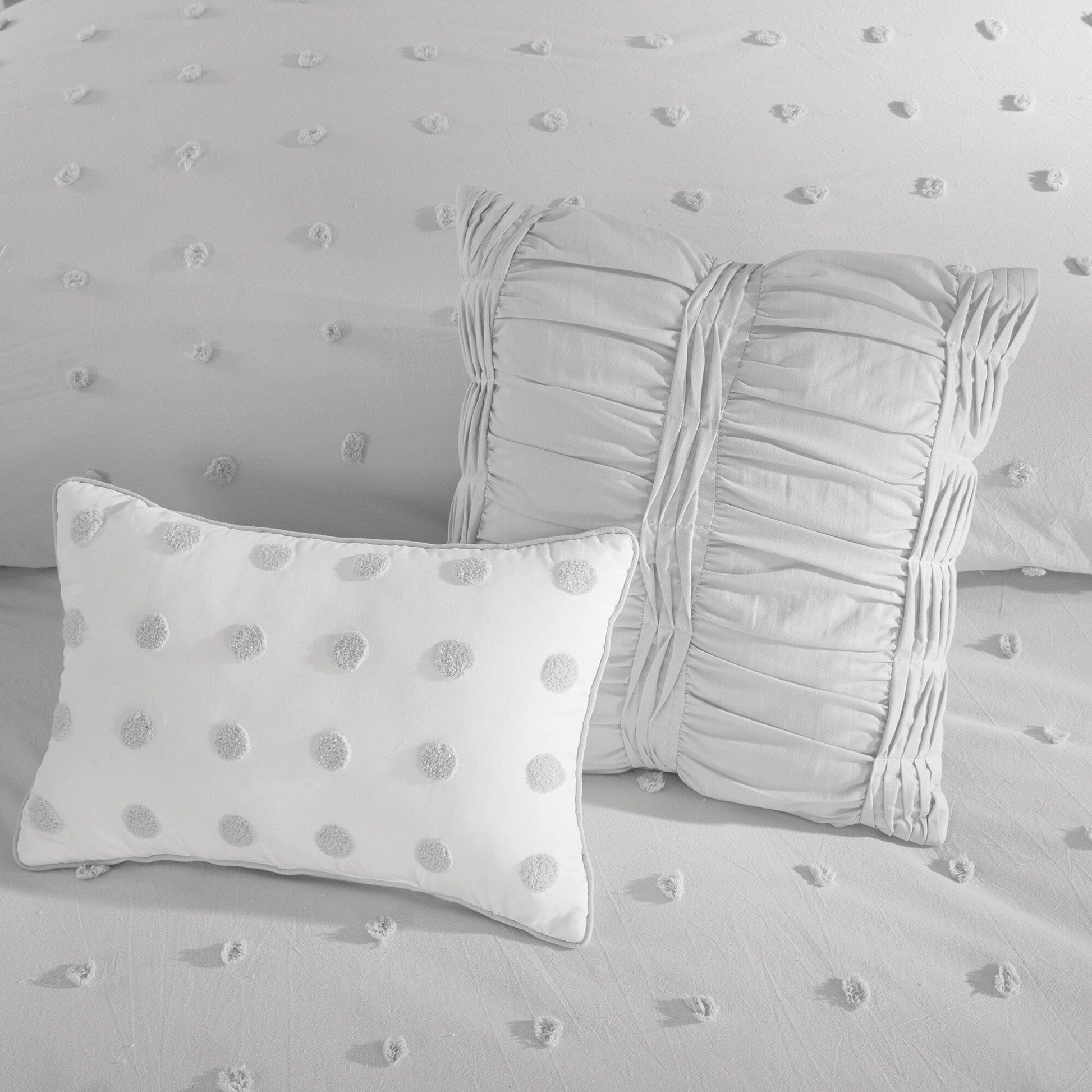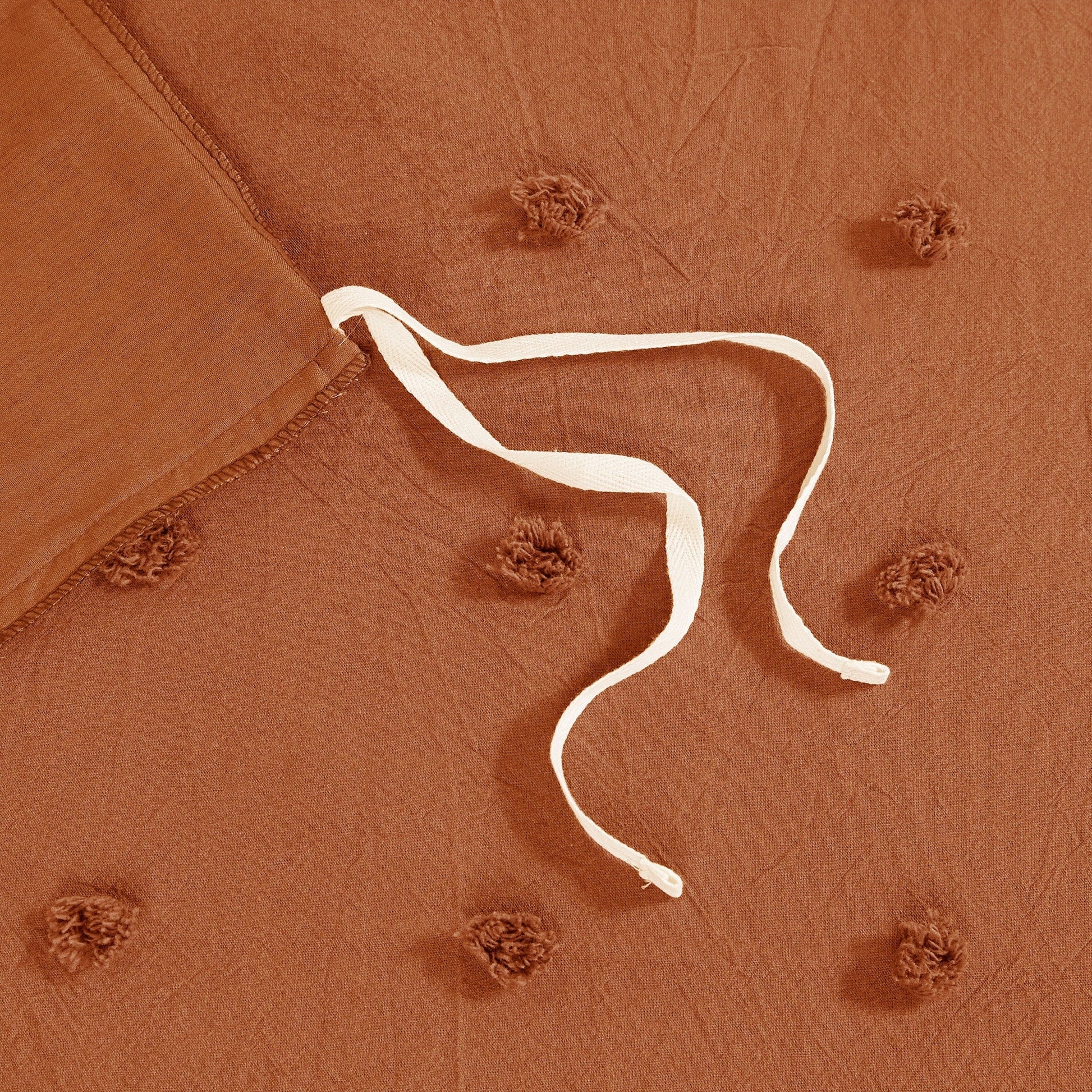 - Simple and cottage like all over woven cotton dots on top of bed