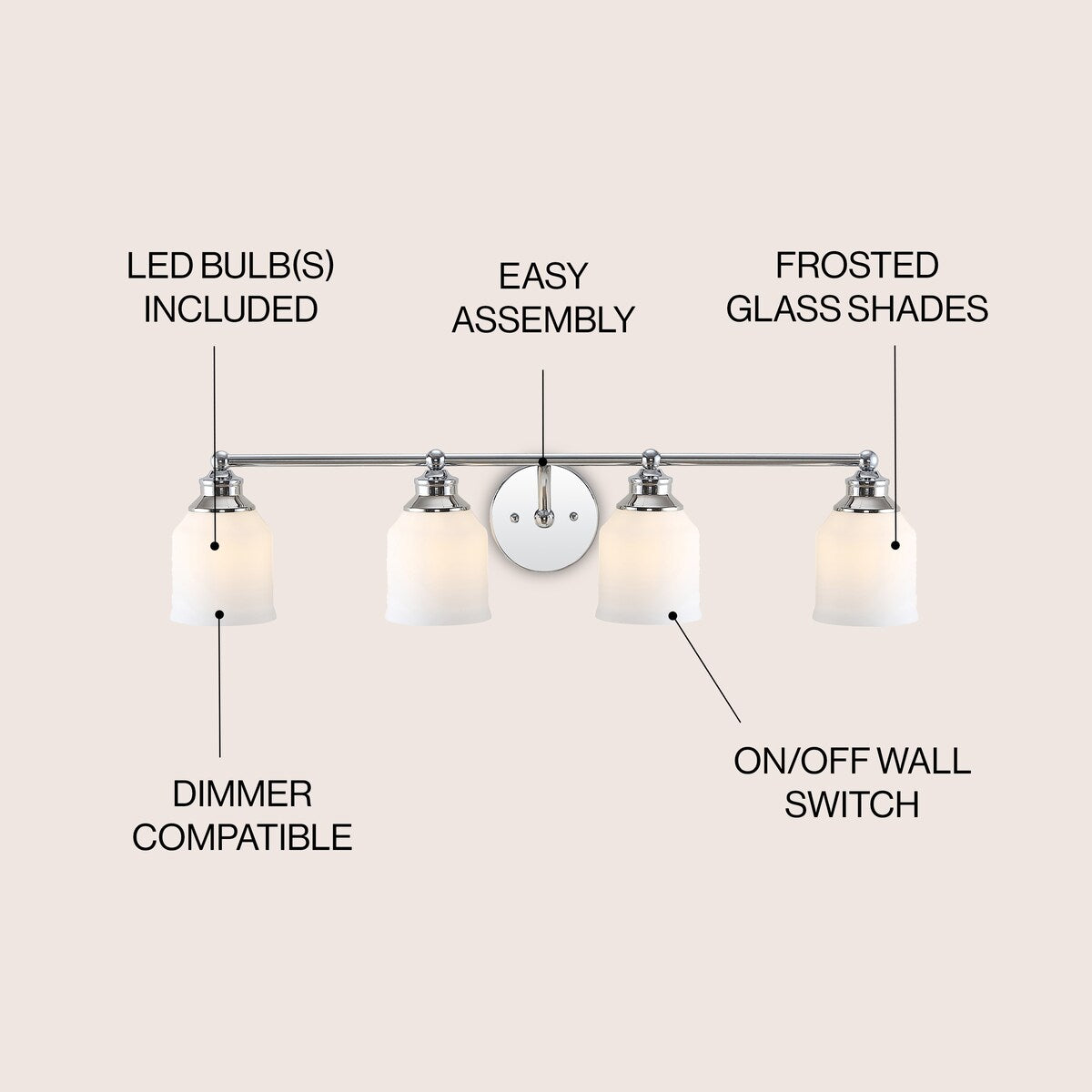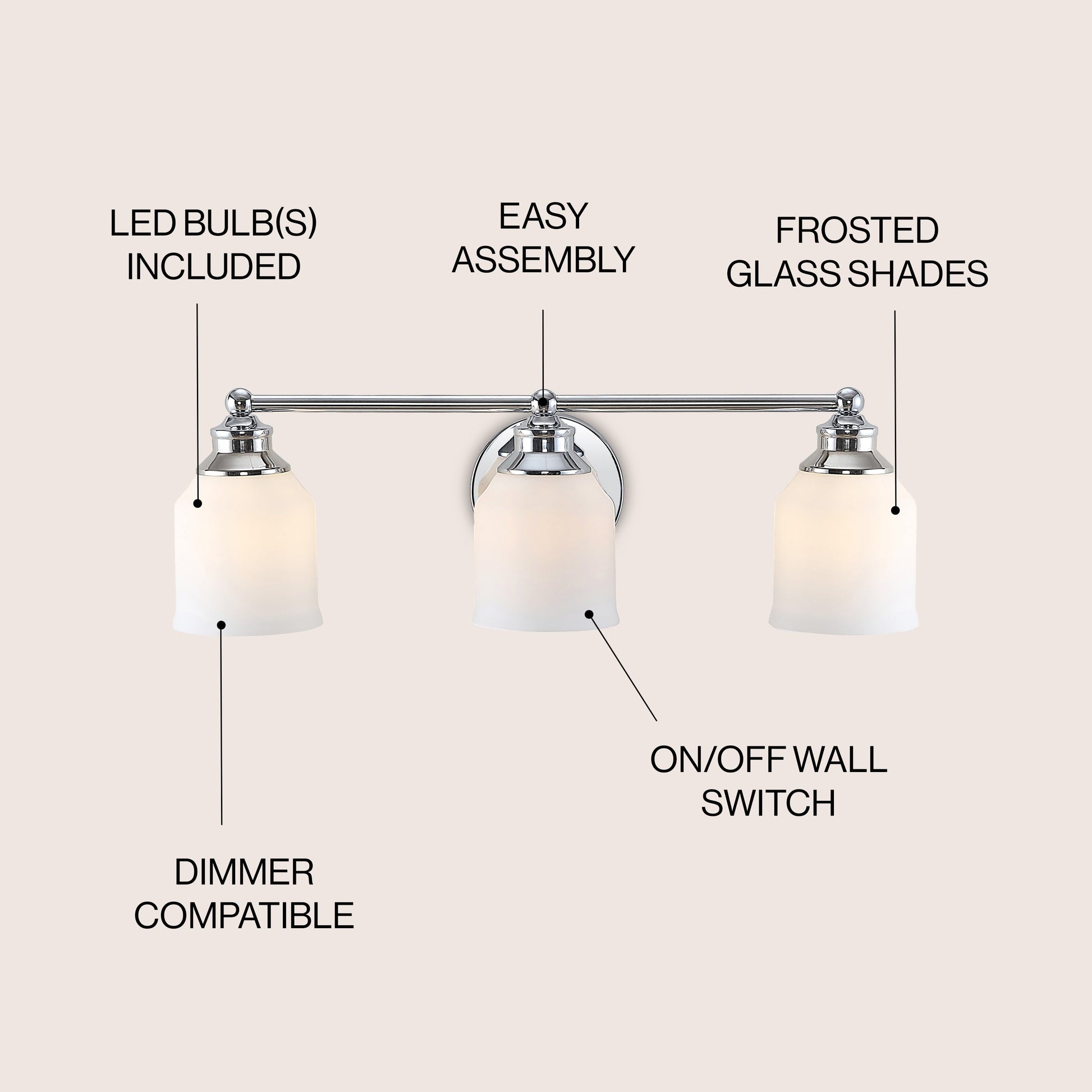 Elevate your urban apartment, cottage or farmhouse with our versatile take on a classic wall light. The included LED bulb casts a warm glow, providing plenty of light. The frosted glass bell shade and sparkling chrome finish add elegant vintage style to your bath vanity, or above a kitchen sink.