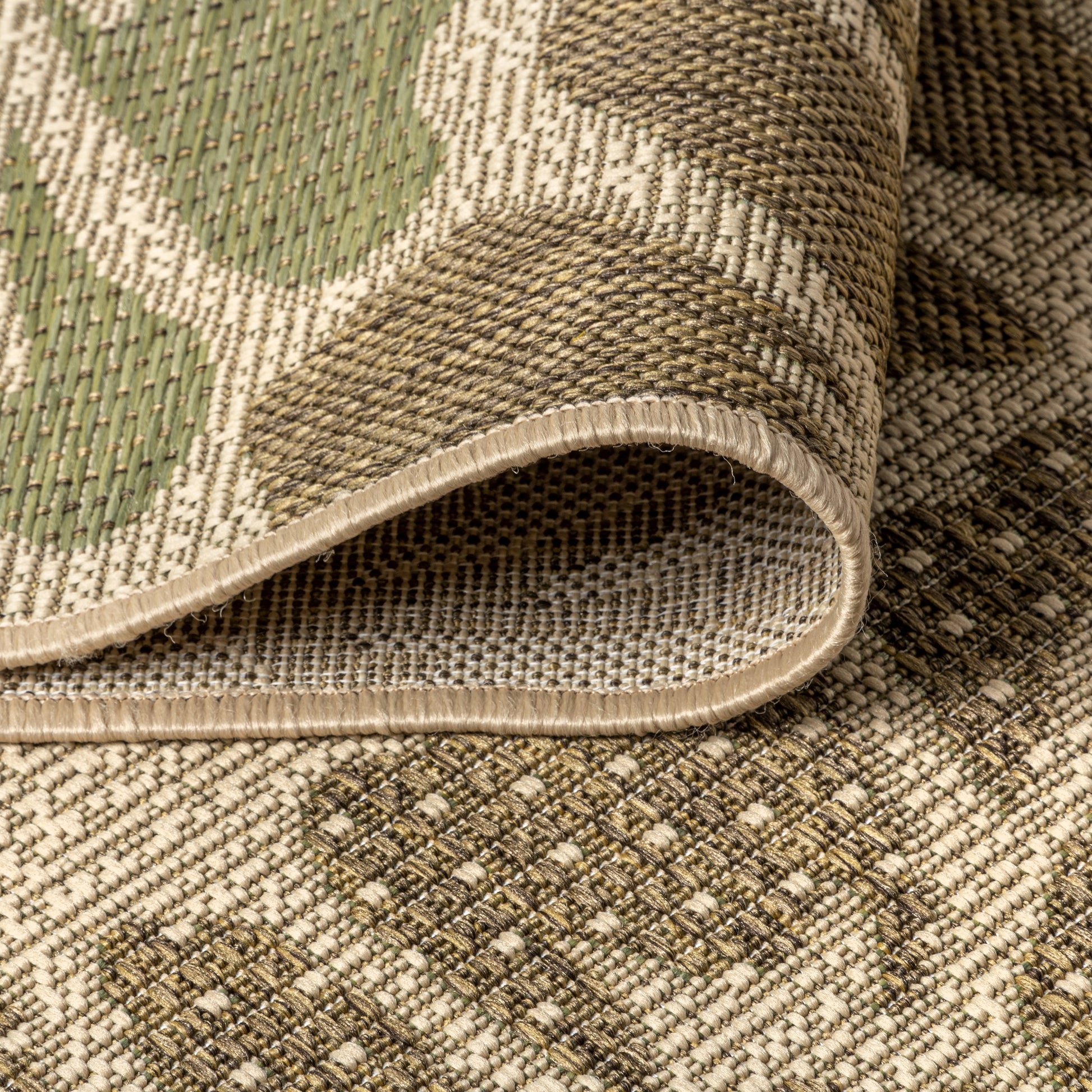 Elevate your indoor or outdoor space with our Marvao Modern Floral Textured Weave Area Rug. The sage green, brown, and beige color palette beautifully complements the large-scale geometric floral pattern, adding a graphic punch to any room or patio. Made with 100% polypropylene, this flatweave rug is water-resistant and durable enough for high-traffic areas indoors or out.