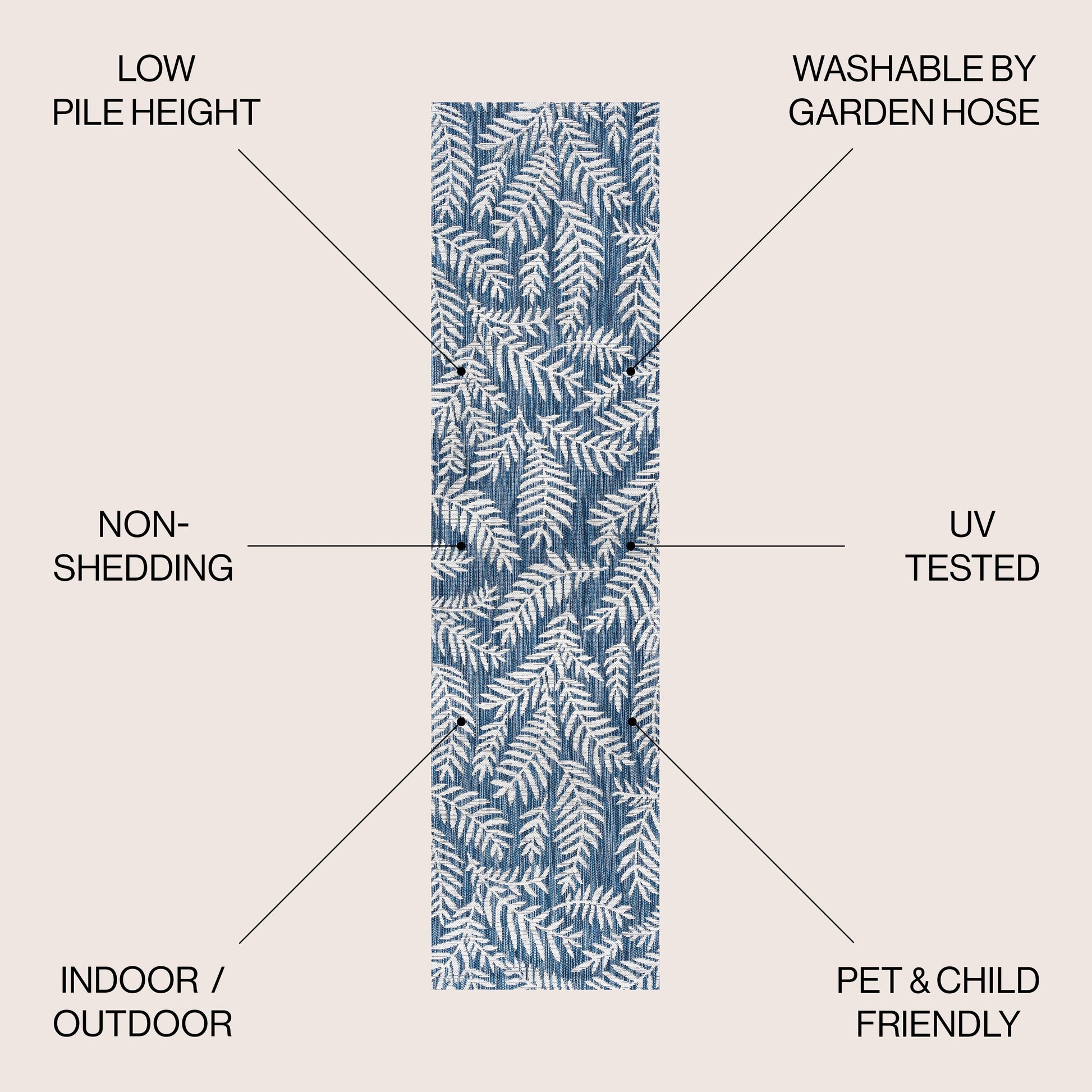 Bring a touch of the tropics to your indoor or outdoor space with the Galon Palm Frond Area Rug by JONATHAN Y. The allover palm frond pattern features scattered palm branches in contrasting colors, creating a busy yet stylish design. Ideal for your tropical patio, entryway, kitchen, hallway, living room or bedroom, this rug's flatweave construction is made of 100% durable and easy-care polypropylene. Kid-proof and pet-friendly, simply sweep or hose it down with mild soap and water. Available in multiple sizes and colors, this rug is power-loomed in Turkey and has a thickness of 0.19 inches.