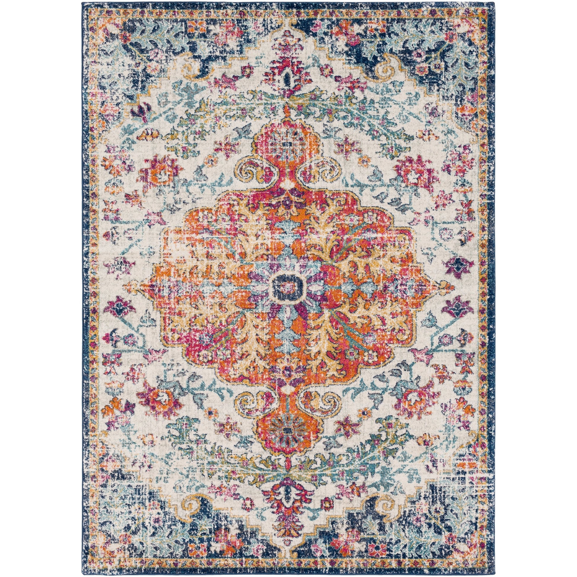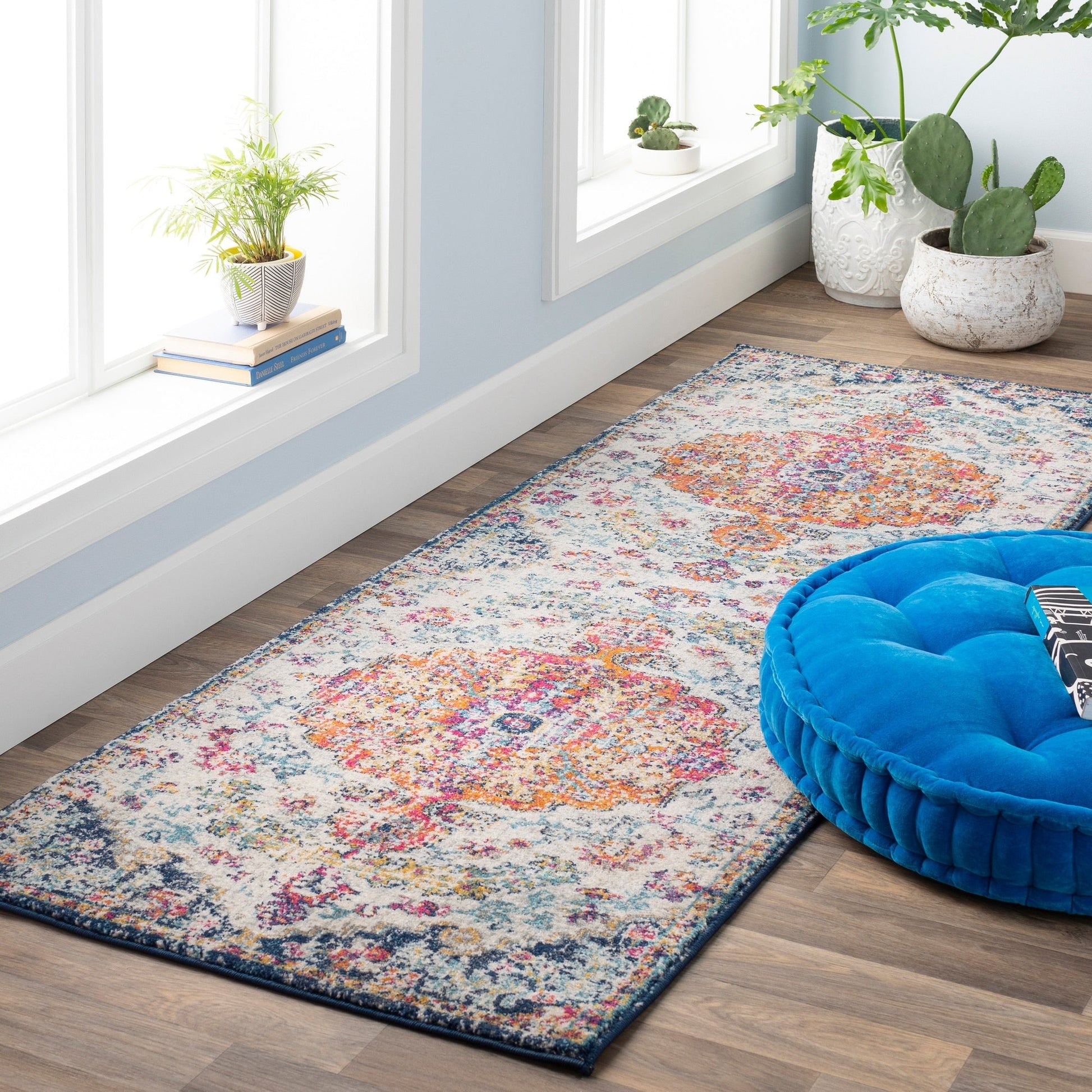 Liven up your vintage space with the Caressa Vintage Boho Area Rug. This machine-woven rug is made of durable polypropylene and features a distressed medallion pattern that adds a touch of bohemian flair to any room. Choose from 12 unique color schemes and a variety of sizes to complement your decor. With a low 0.38-inch pile height, this latex-free rug is stain-resistant and perfect for high-traffic areas, making it both kid and pet-friendly.